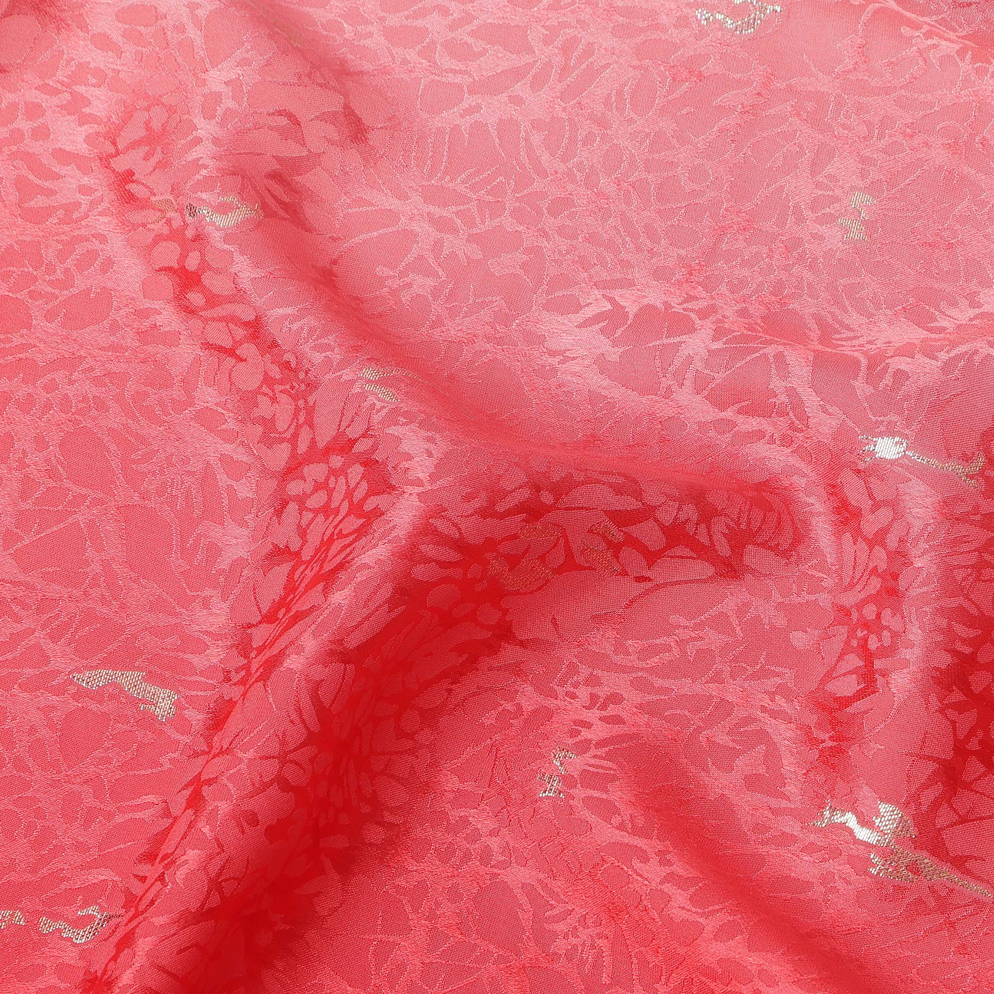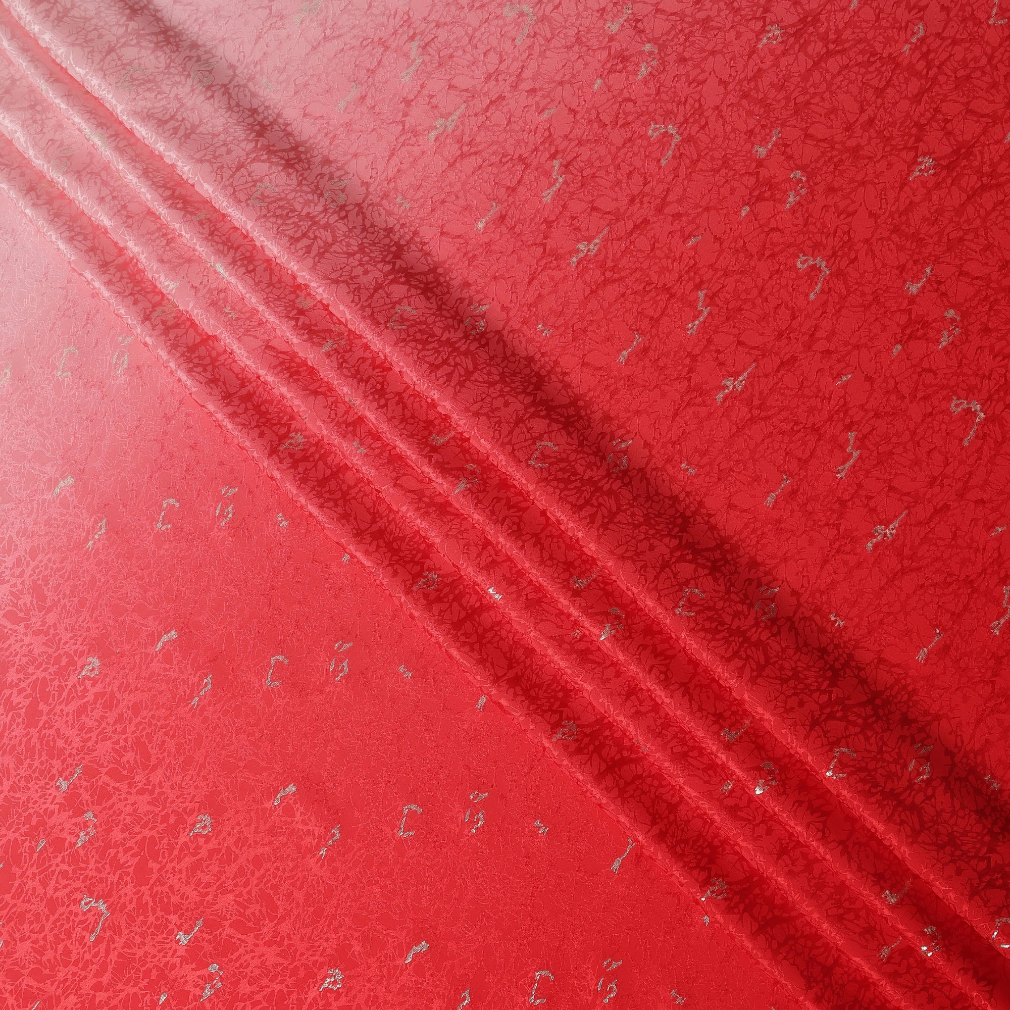 Premium Red Ombre with Silver Textured Motif Pure Silk Satin Fabric with lustrous sheen