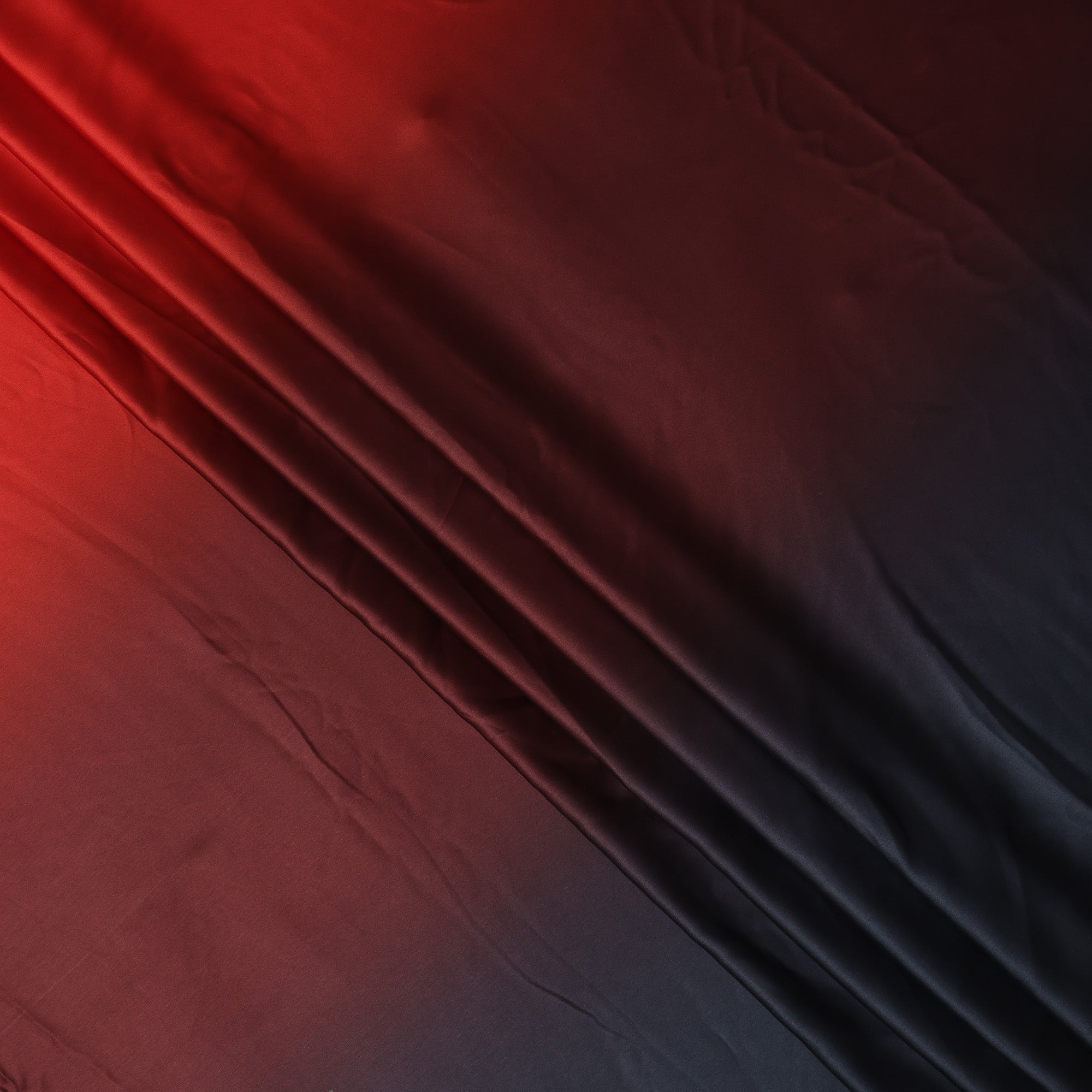 Make a bold style statement with this Red to Black Ombre Synthetic Satin, meticulously crafted in India for elegance and impact. The seamless gradient transitions from a fiery, vibrant red to a deep, dramatic black, creating a powerful visual contrast perfect for statement garments and décor. The satin weave imparts a lustrous sheen and an ultra-smooth, silky texture, adding a luxurious touch to every creation. At 110 cms wide, this fabric is ideal for sarees, dresses, skirts, scarves, and chic interior accents. Lightweight yet durable, it drapes beautifully and moves gracefully, capturing both light and attention. This ombre satin is perfect for festive wear, evening attire, performance costumes, or contemporary design projects. To preserve its color vibrancy and glossy finish, gentle hand wash or dry clean is recommended.