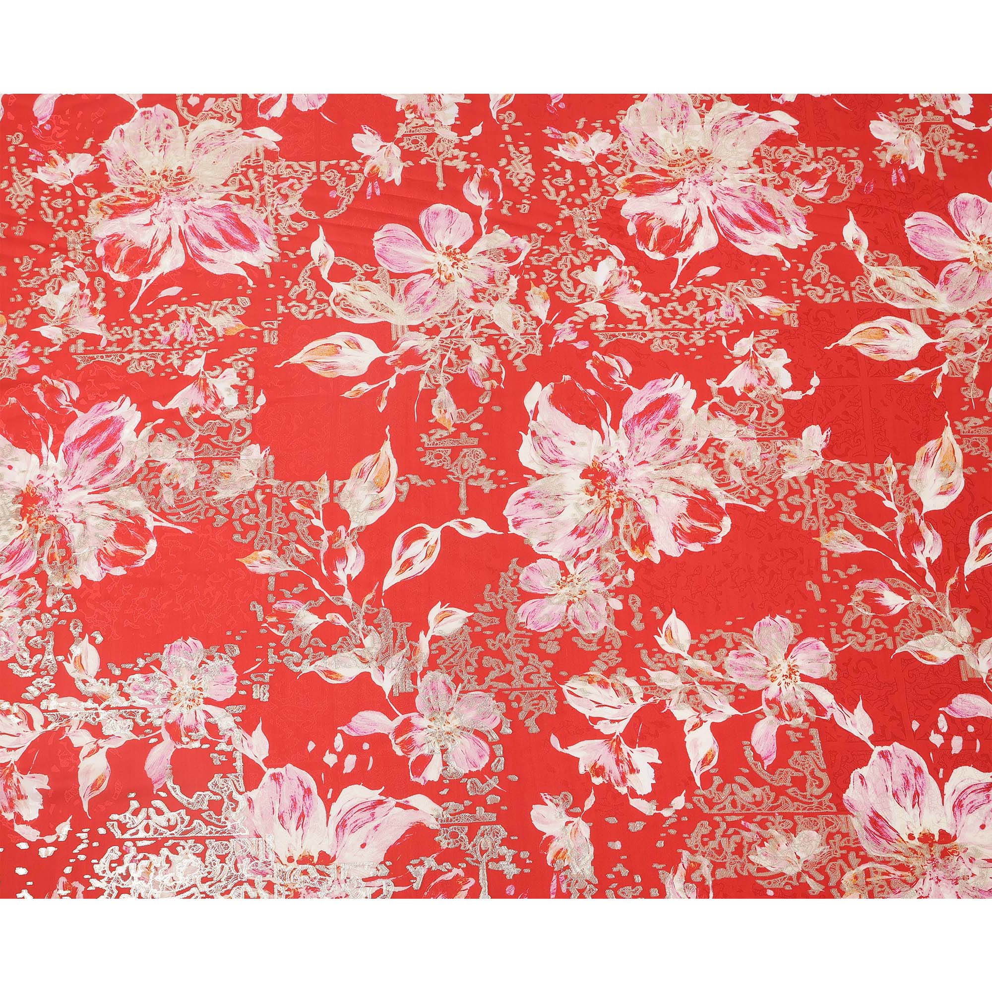 Premium Red with Pink and White Floral Print Pure Silk Satin Fabric with glossy sheen