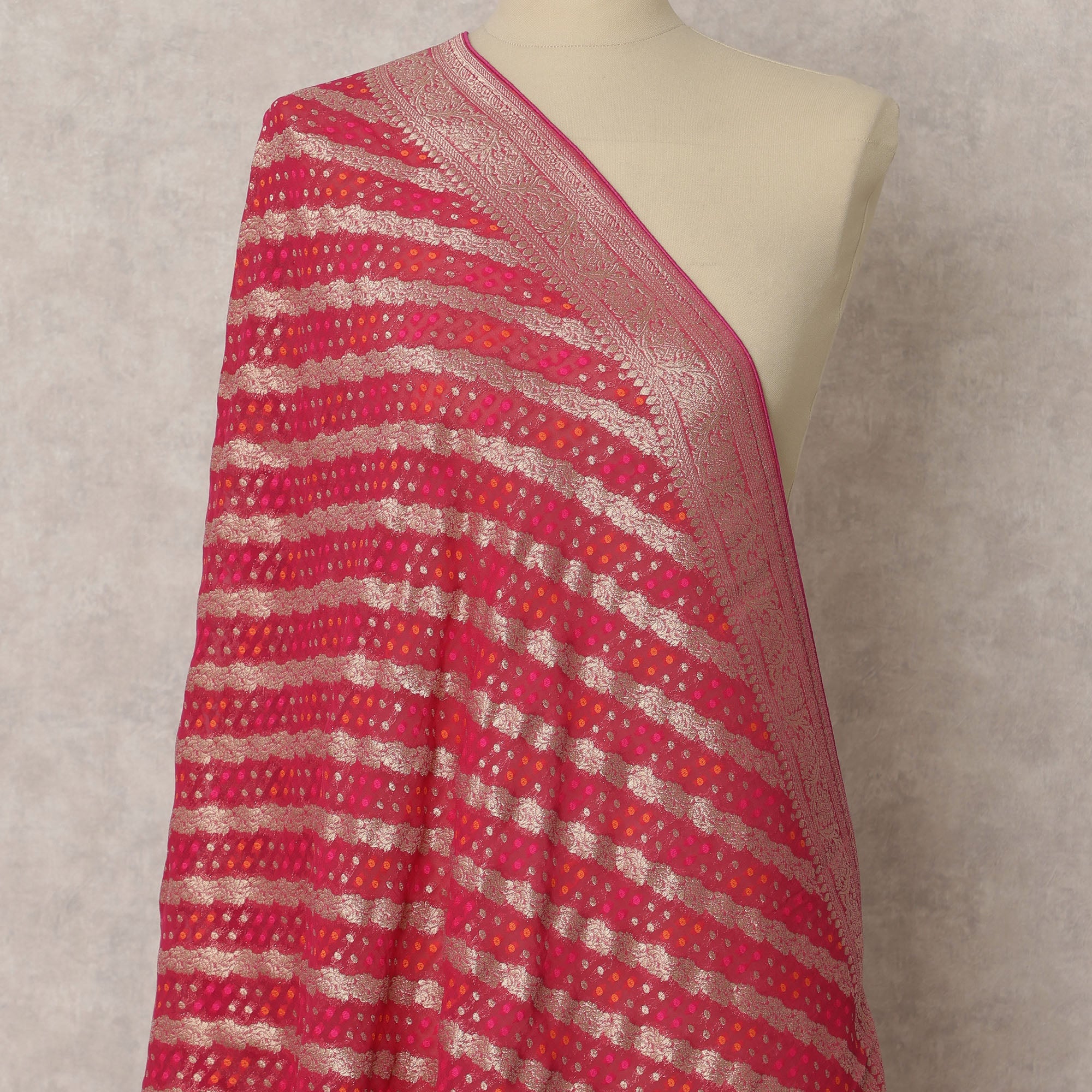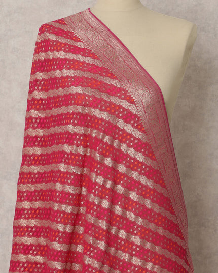 • Sale -5% Rich Red & Gold Striped Synthetic Organza Dupatta, Festive Sheer Stole, 250X85 CMS, India-D22361