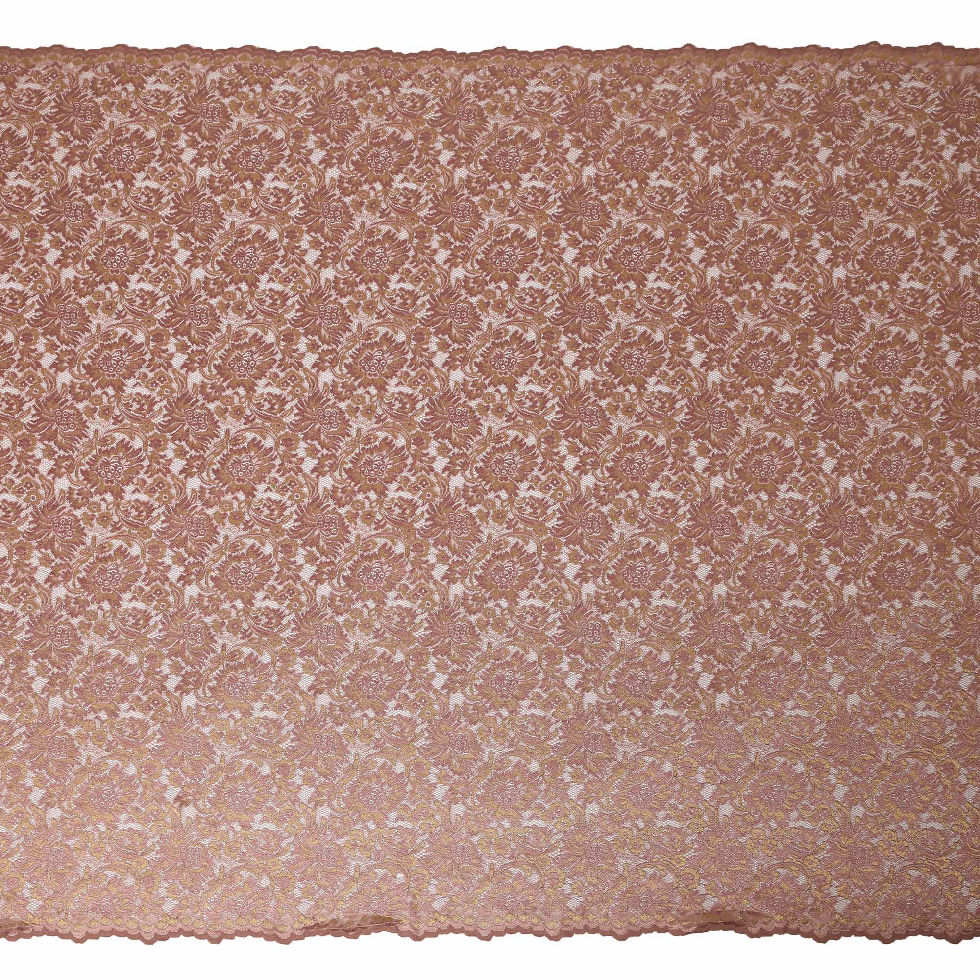 Rose Gold Floral Metallic Embroidered Synthetic Lace Fabric Elegant Design 110 Cms Made in South Korea-D27465