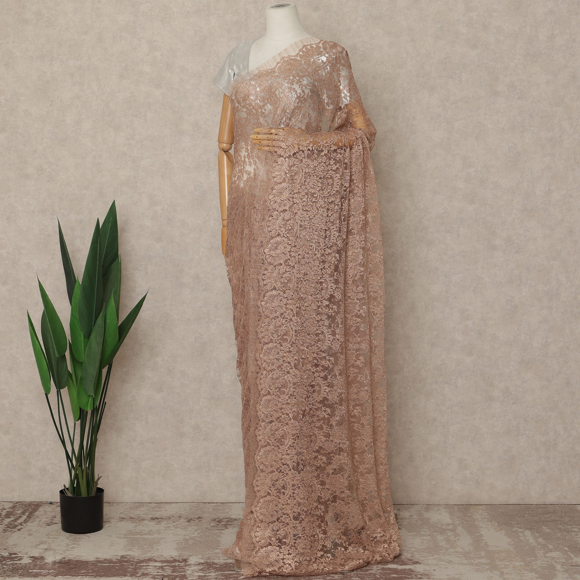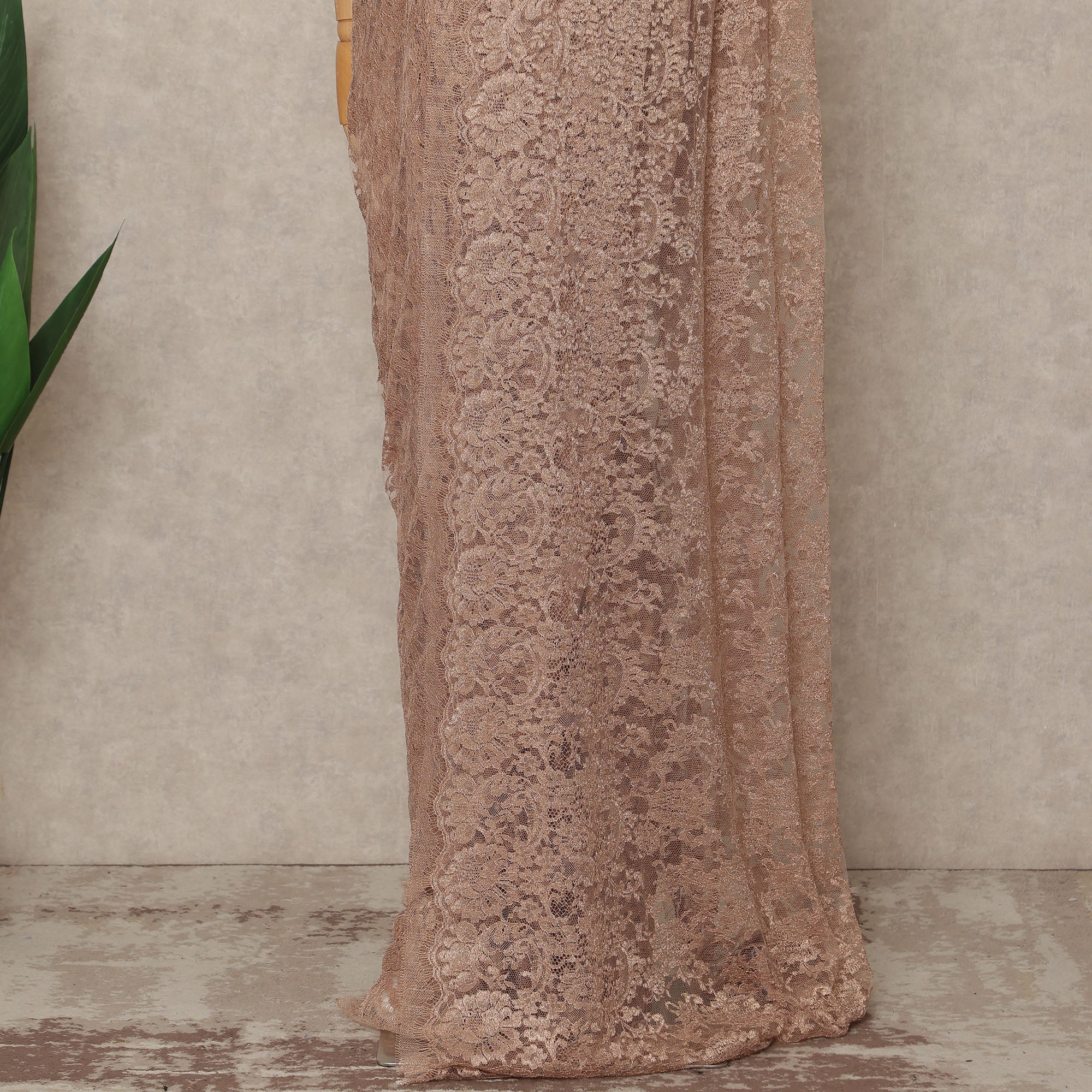 Rose Gold Premium French Metallic Chantilly Saree Lace Fabric 5.5 Meters x 110 Cms Width Elegant Floral Net Material From France Unstitched Blouse Not Included-D28141