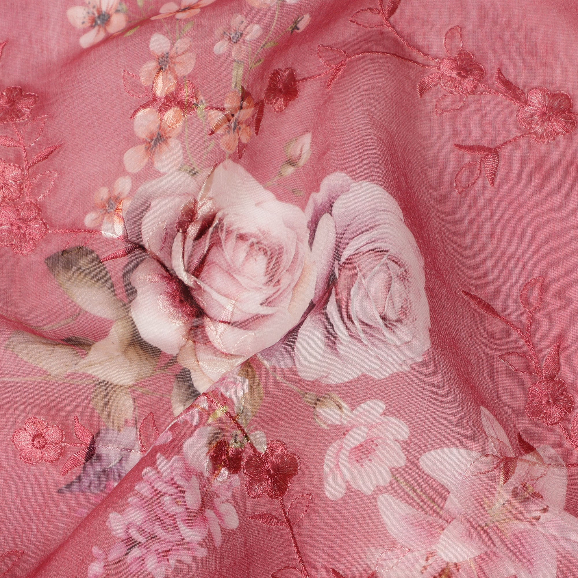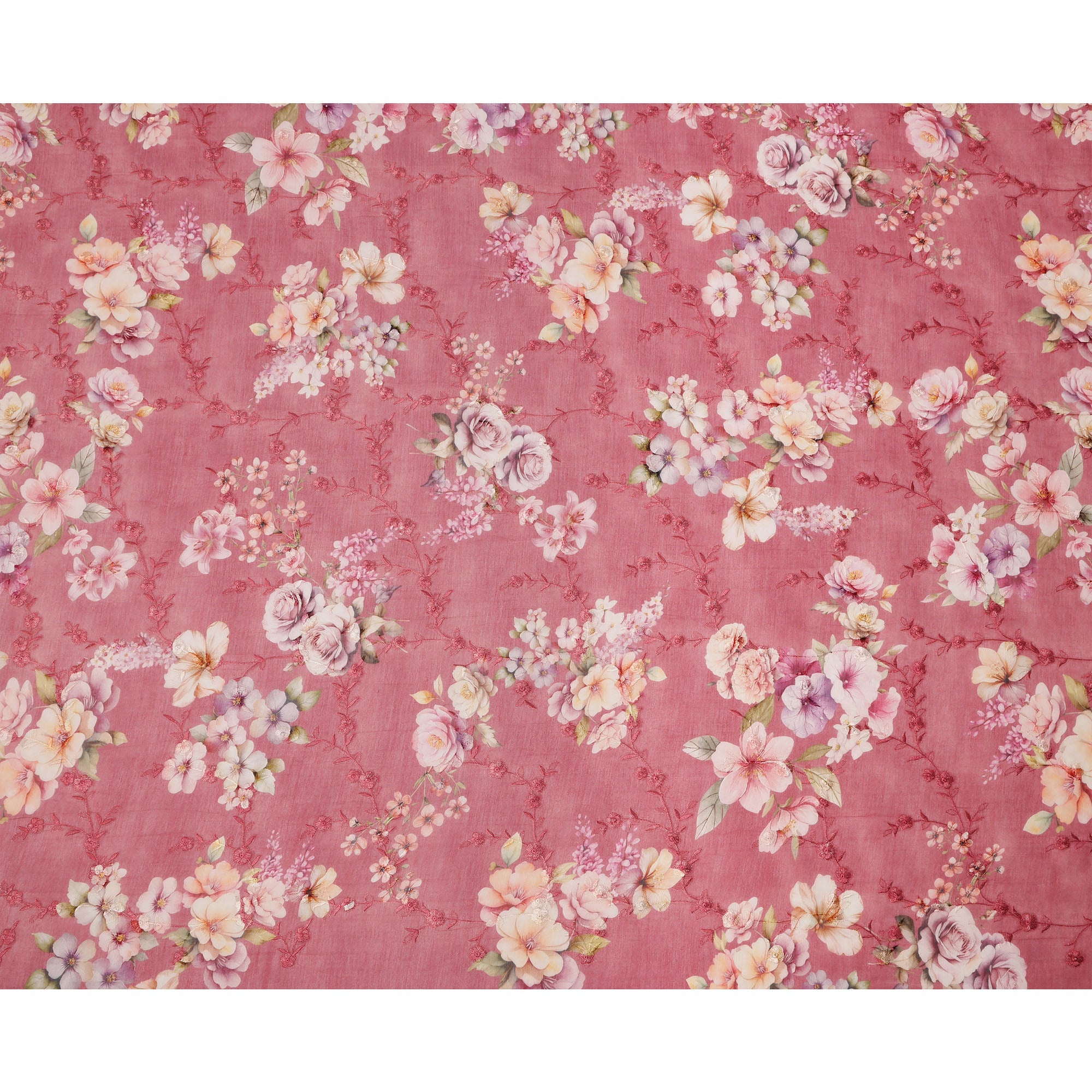 Rose Pink Floral Printed Viscose Cotton Fabric, 110 Cms Width, India-D24819