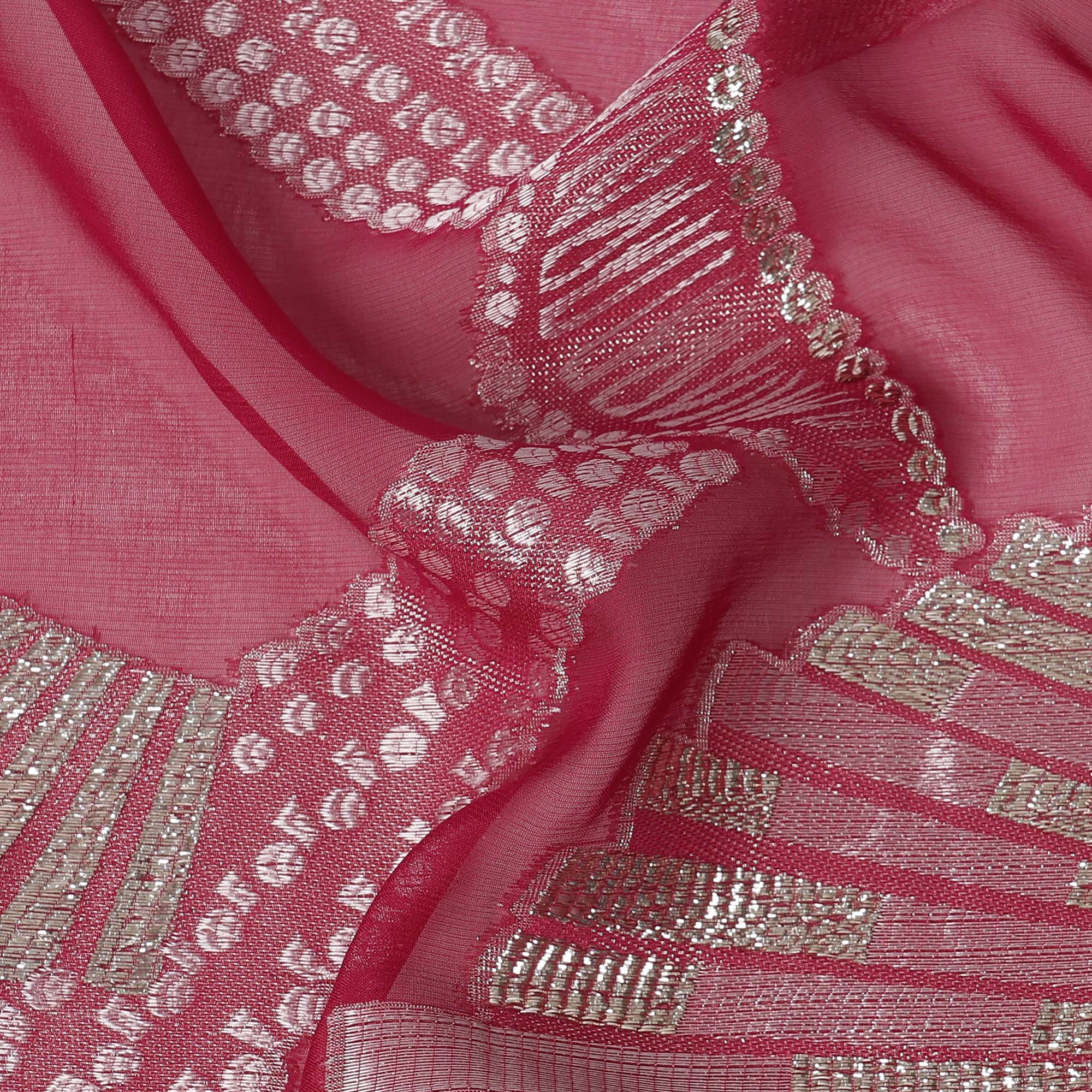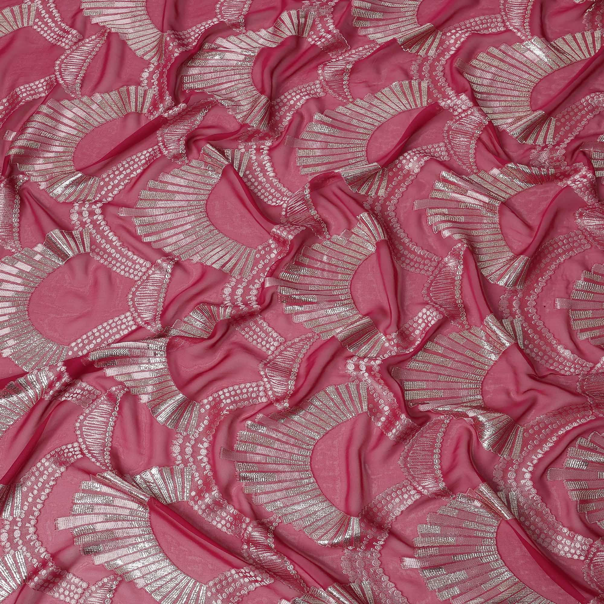 Rose Pink Geometric Patterned Silk Chiffon Fabric with Metallic Lurex, 140 Cms Width, Made in South Korea-D26345