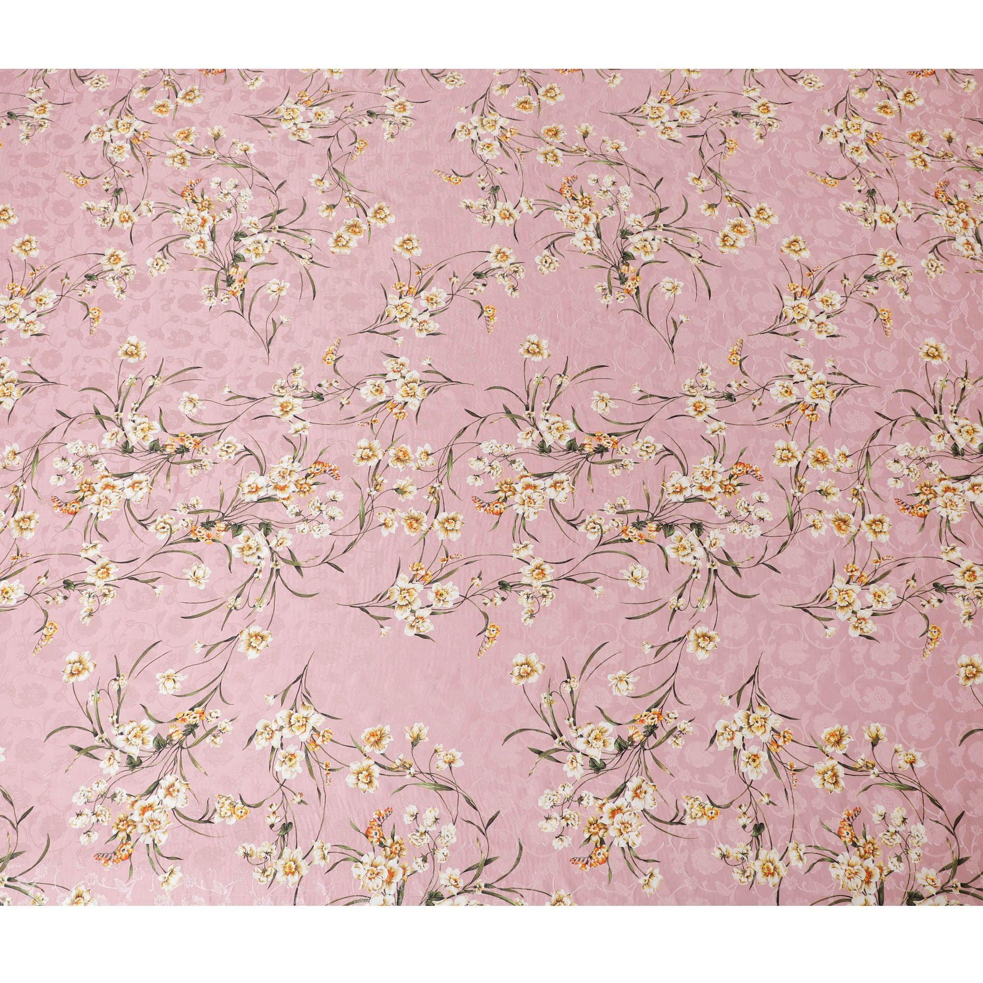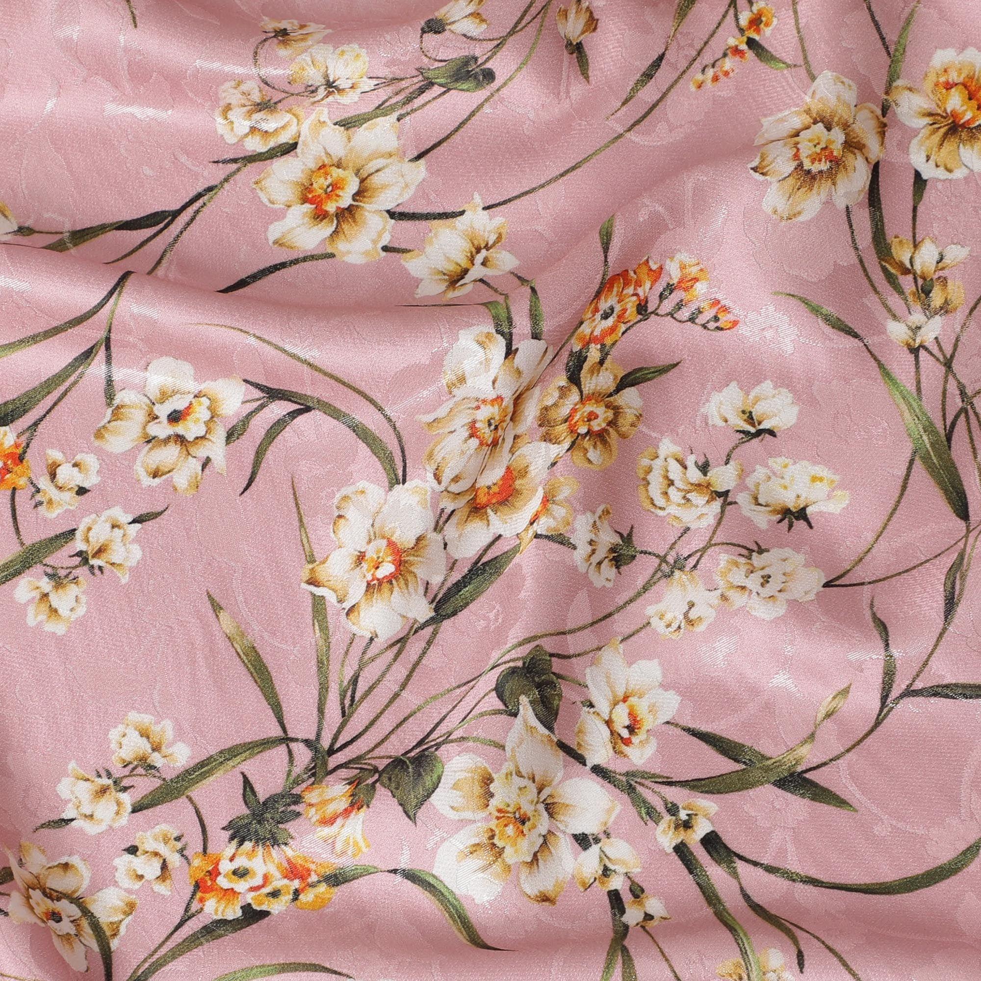 Rose pink Premium pure silk crepe fabric with same tone jacquard having multicolor print in floral design-D15729
