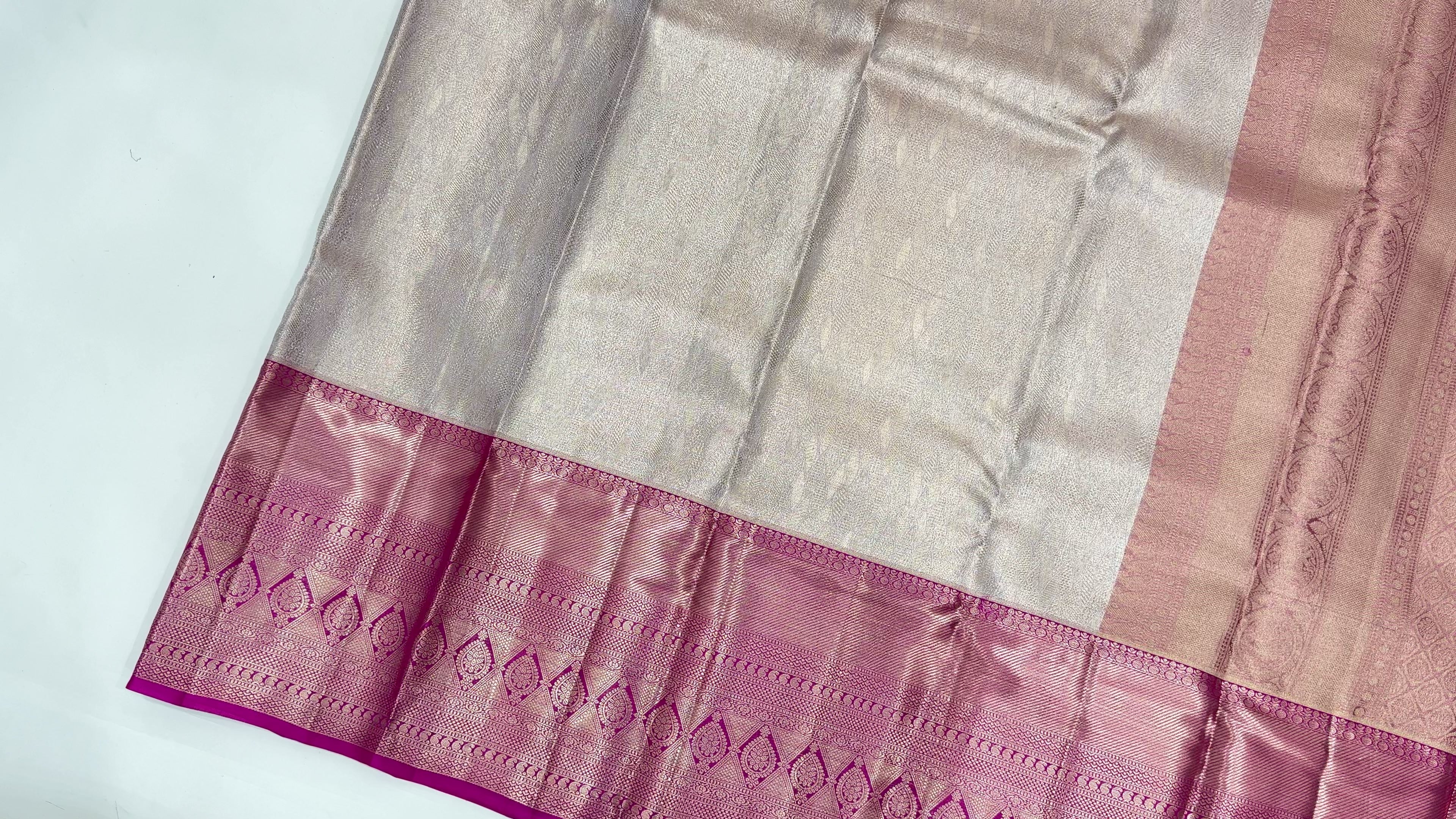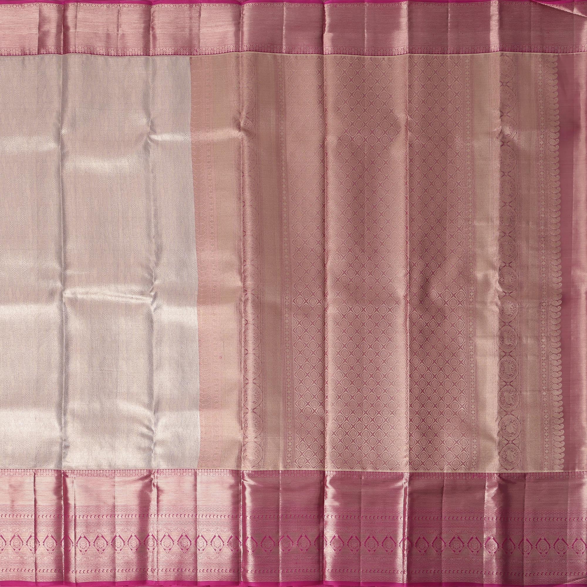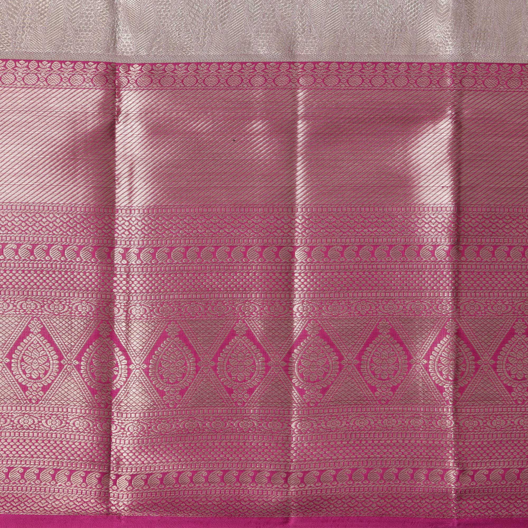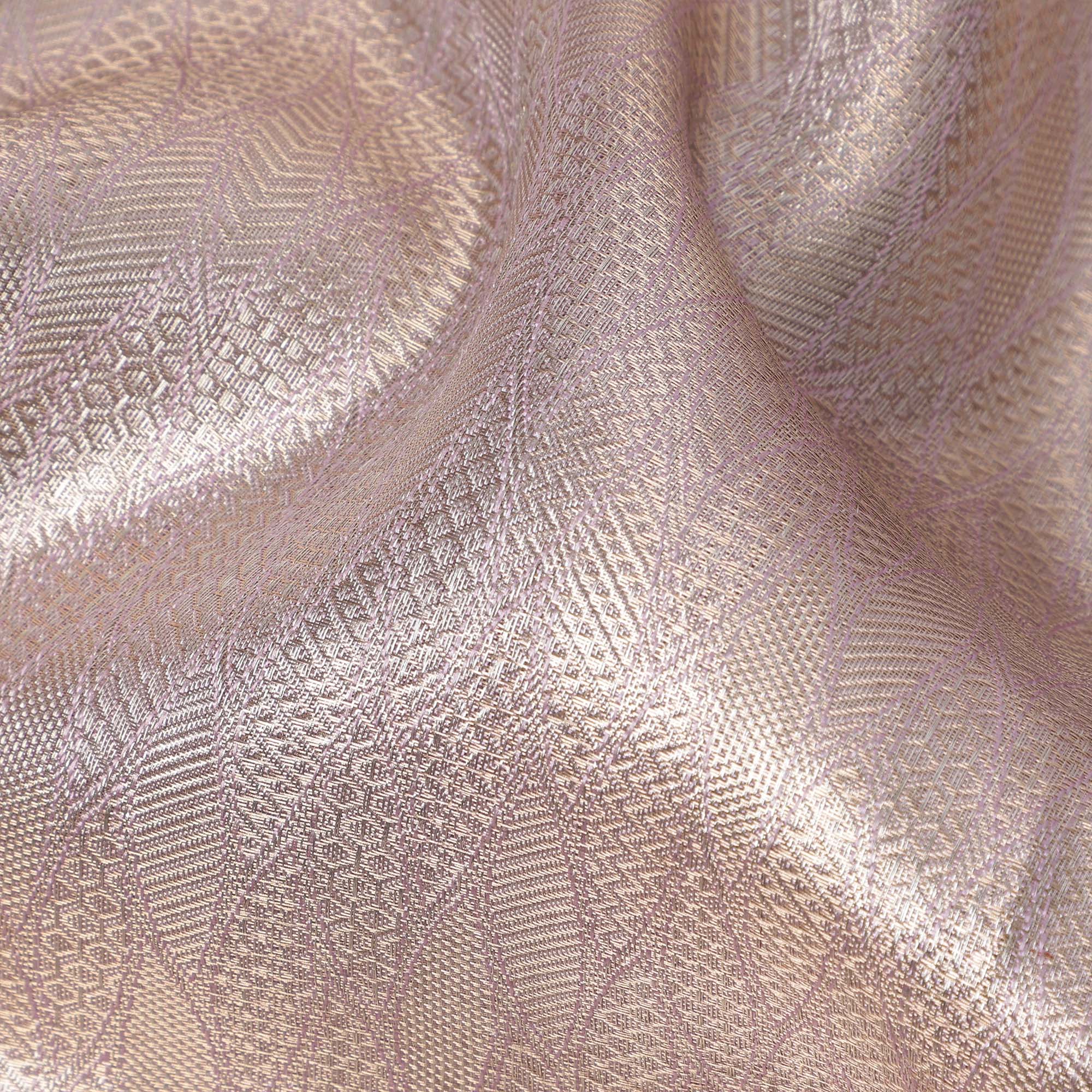 Rose Pink Pure Tissue Silk Kanjeevaram Saree with Geometric Zari Border and Dual Tone Weave, 5.5 Meters with Blouse Piece, Handwoven from India-D22723