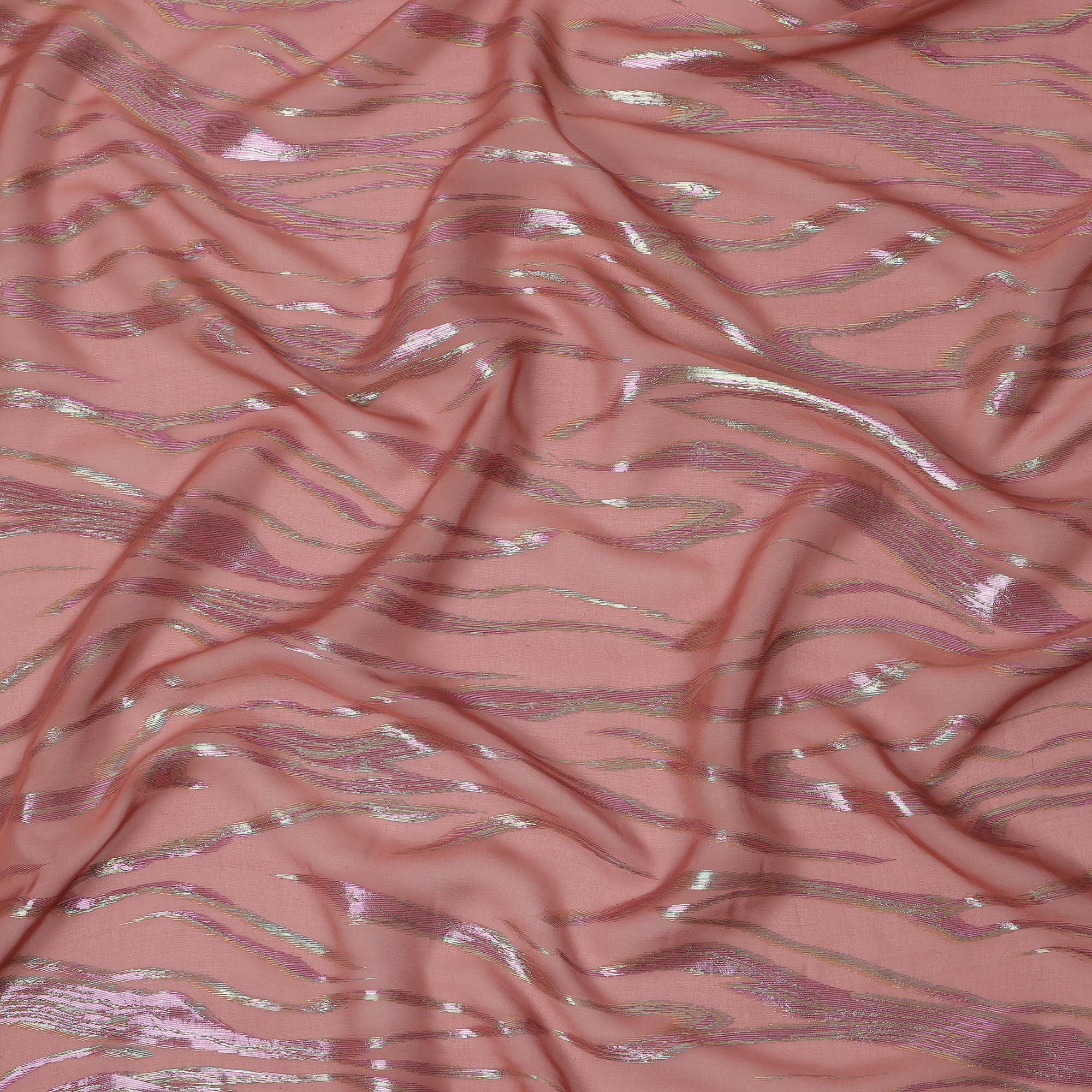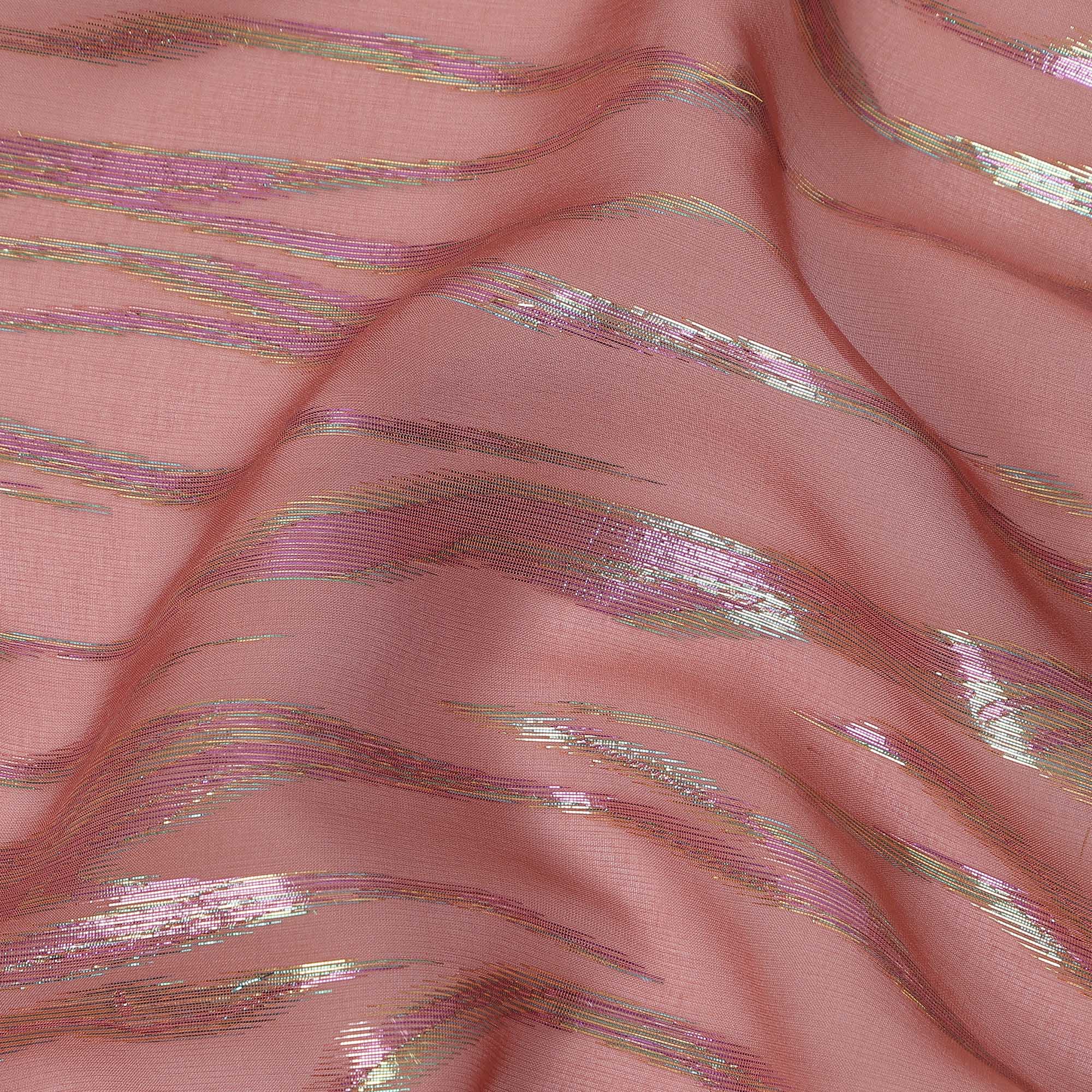 Rose Pink Wave Pattern Silk Chiffon Fabric with Metallic Lurex, 110 Cms, South Korea-D25493
