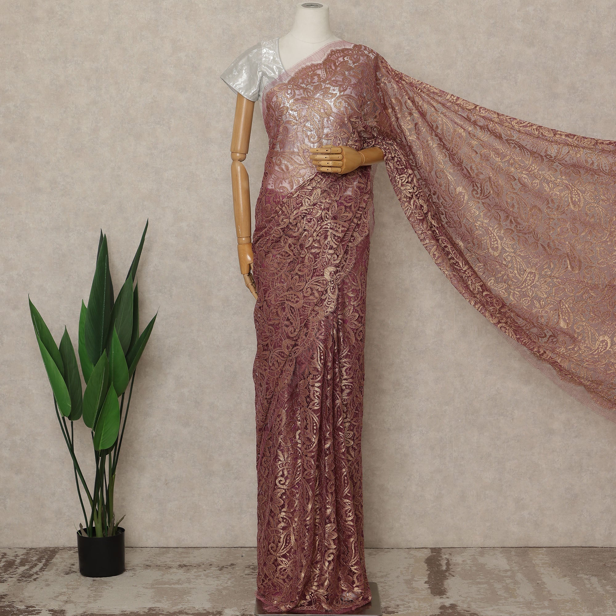 Rose Red Premium French Metallic Chantilly Saree Lace, 5.5 Mtrs Length, 110 Cms Width, Crafted in France -Blouse Not Included-D26724