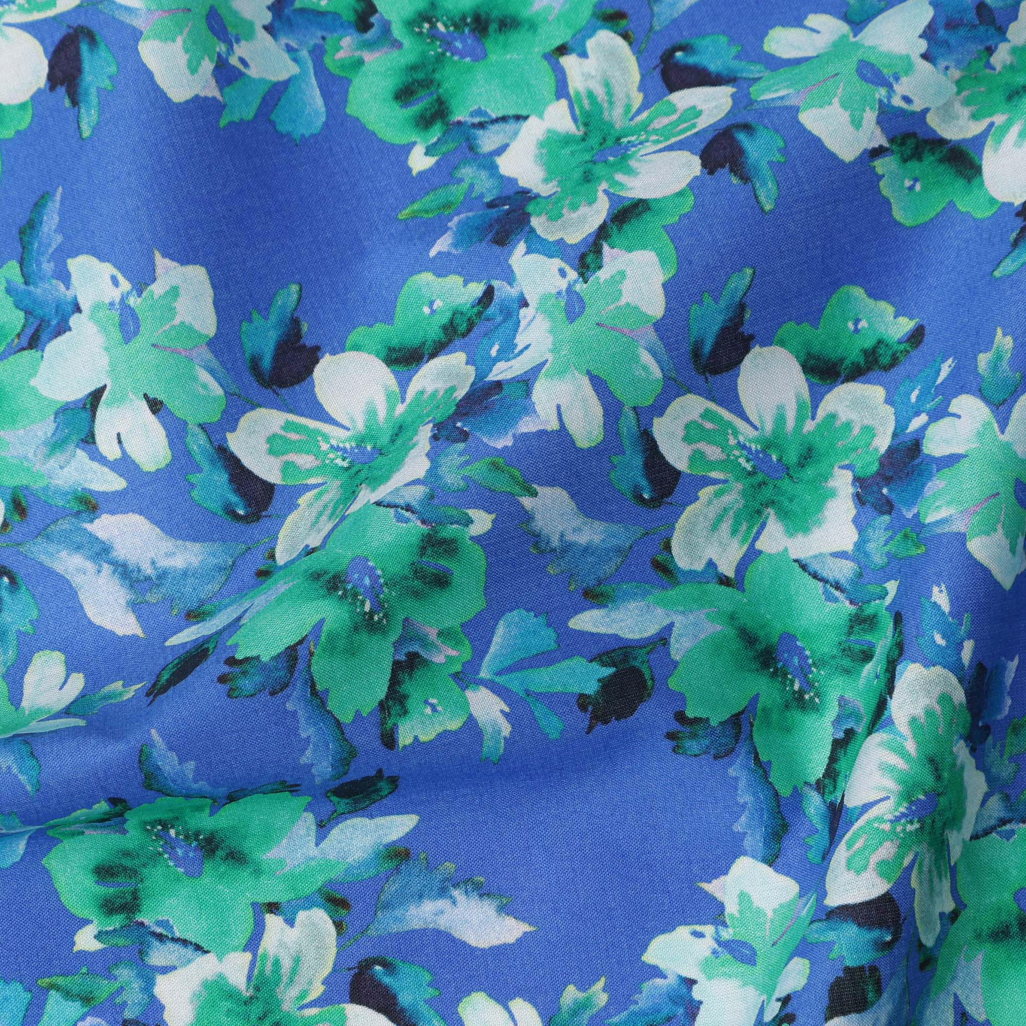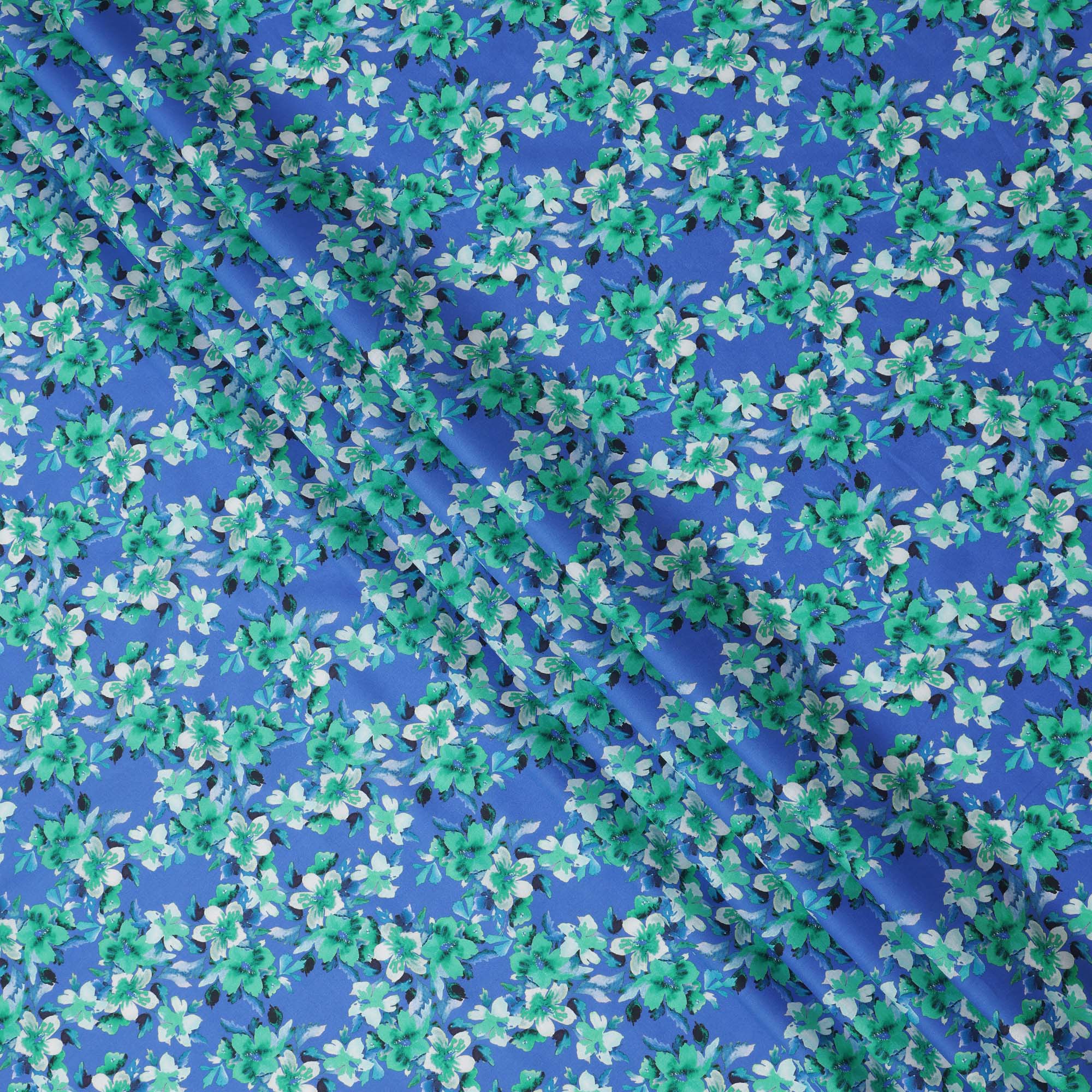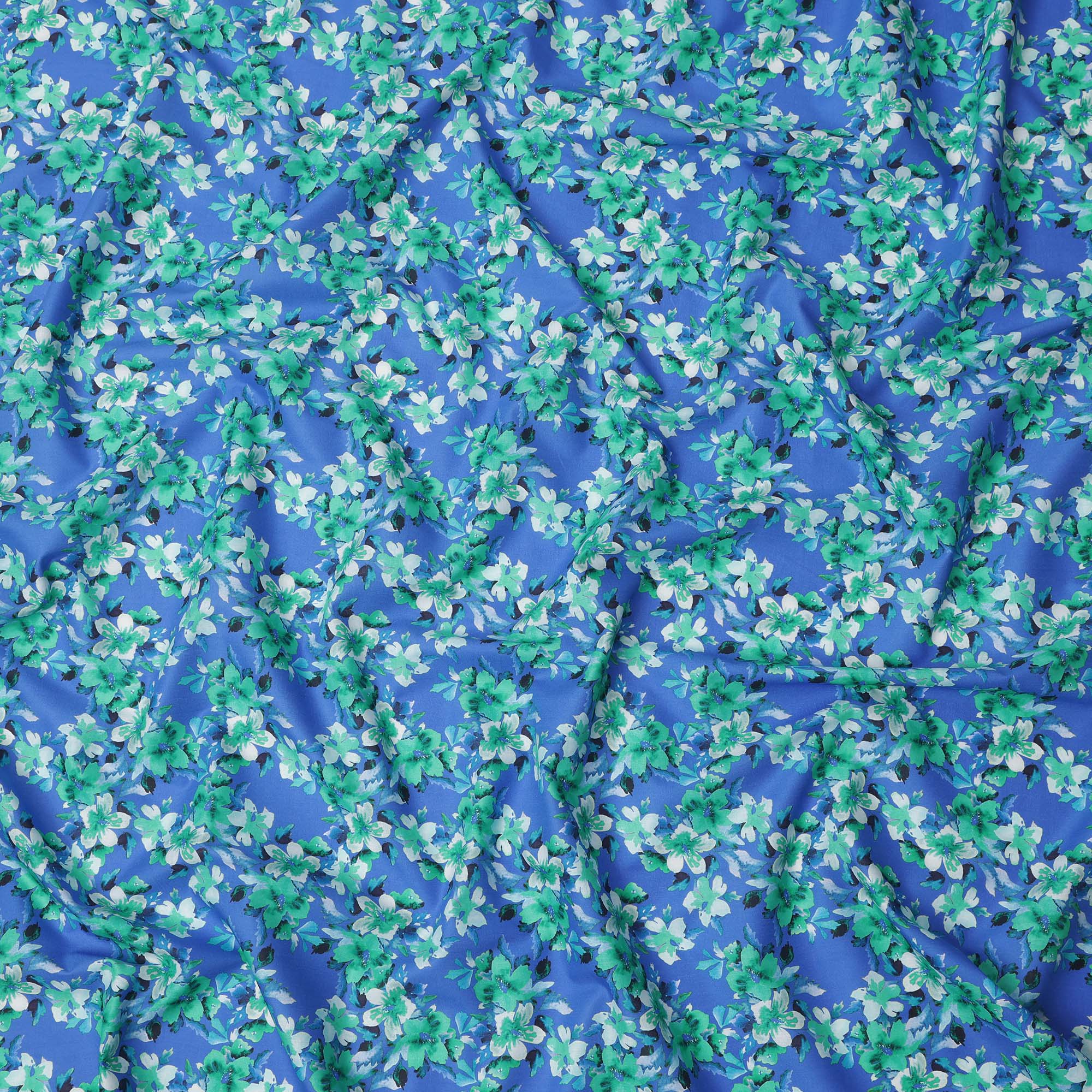 Royal Blue Base Green and White Blossom Printed Cotton Lawn Fabric with Dense Floral Pattern, 110 Cms Width, Made in India-D24273