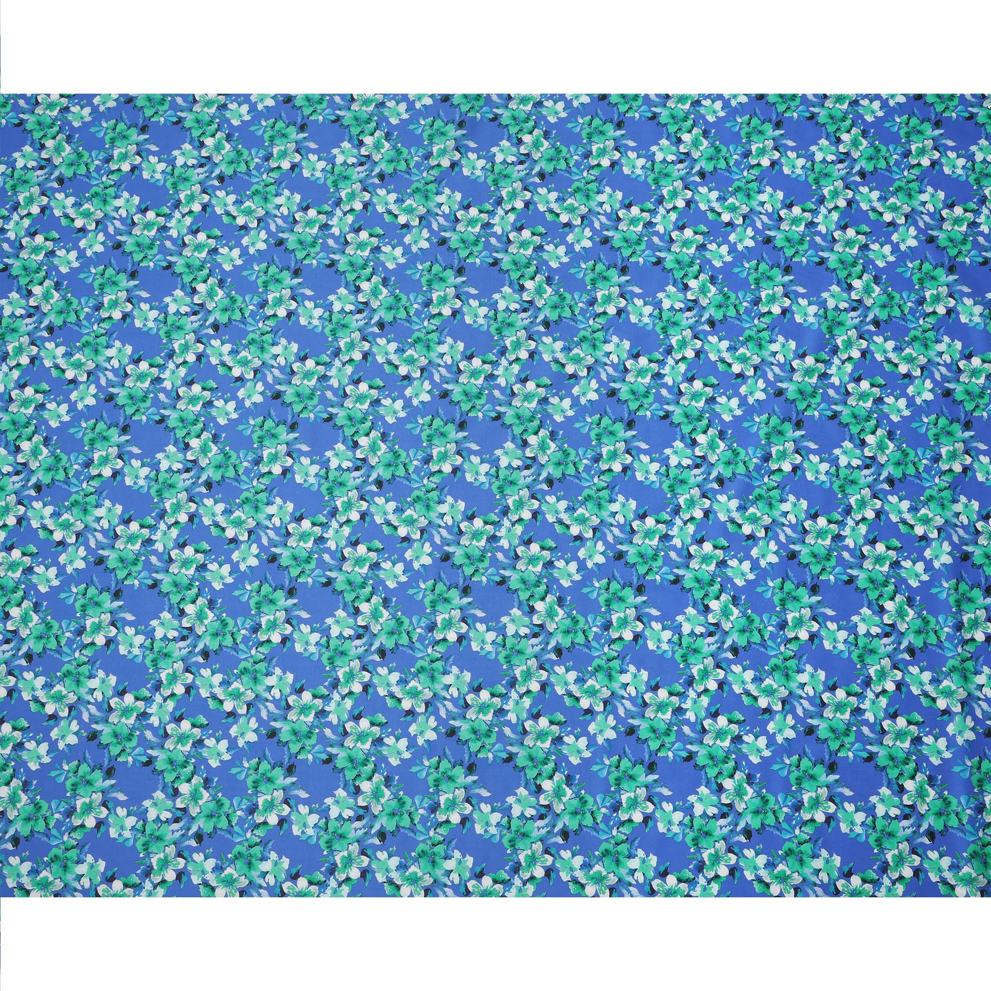 Vibrant and refreshing, this royal blue cotton lawn fabric showcases an energetic floral print bursting with green and white blossoms, perfect for brightening up your wardrobe with seasonal flair. The lush pattern of overlapping blooms evokes a garden in full bloom, while the soft, breathable texture of cotton lawn ensures all-day comfort and effortless drape. Ideal for creating flowy dresses, stylish kurtas, breezy tops, and statement scarves, this fabric offers a bold canvas with timeless elegance. Its 110 cms width allows flexible cutting and design choices. Whether you're designing for daily wear or a breezy getaway outfit, this printed fabric will lend your creations vibrancy with finesse. Shop online and bring home this Indian-made delight infused with bold color and superior craftsmanship.
