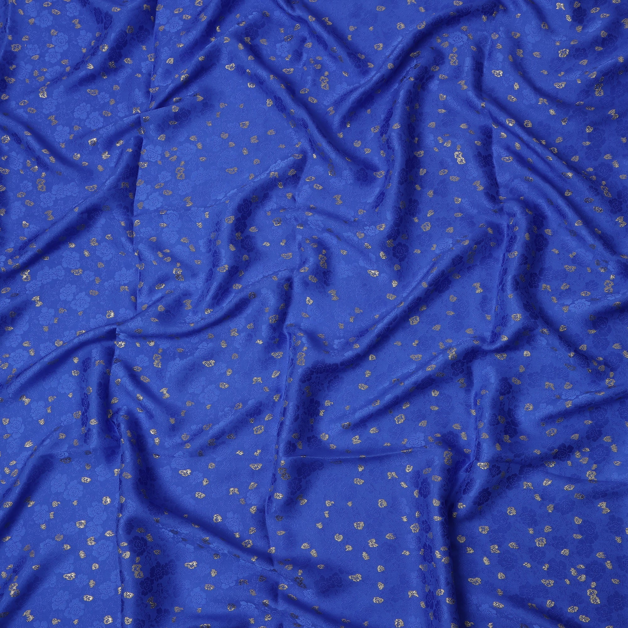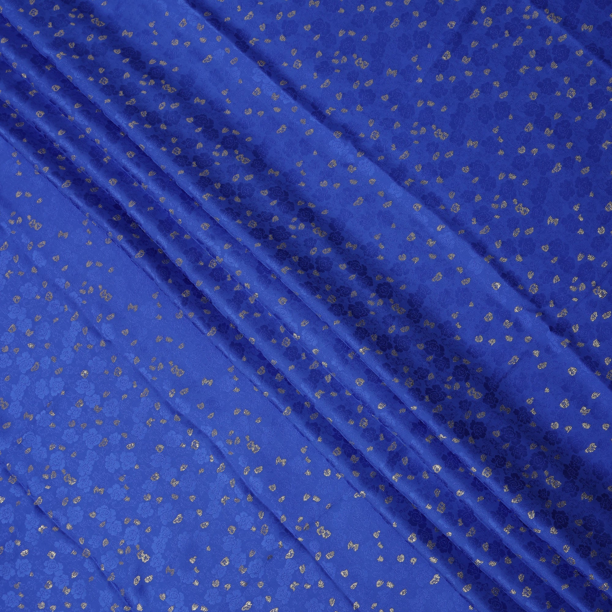 Royal Blue Metallic Motif Pure Silk Satin Fabric 140 Cms Width Made in India-D24930