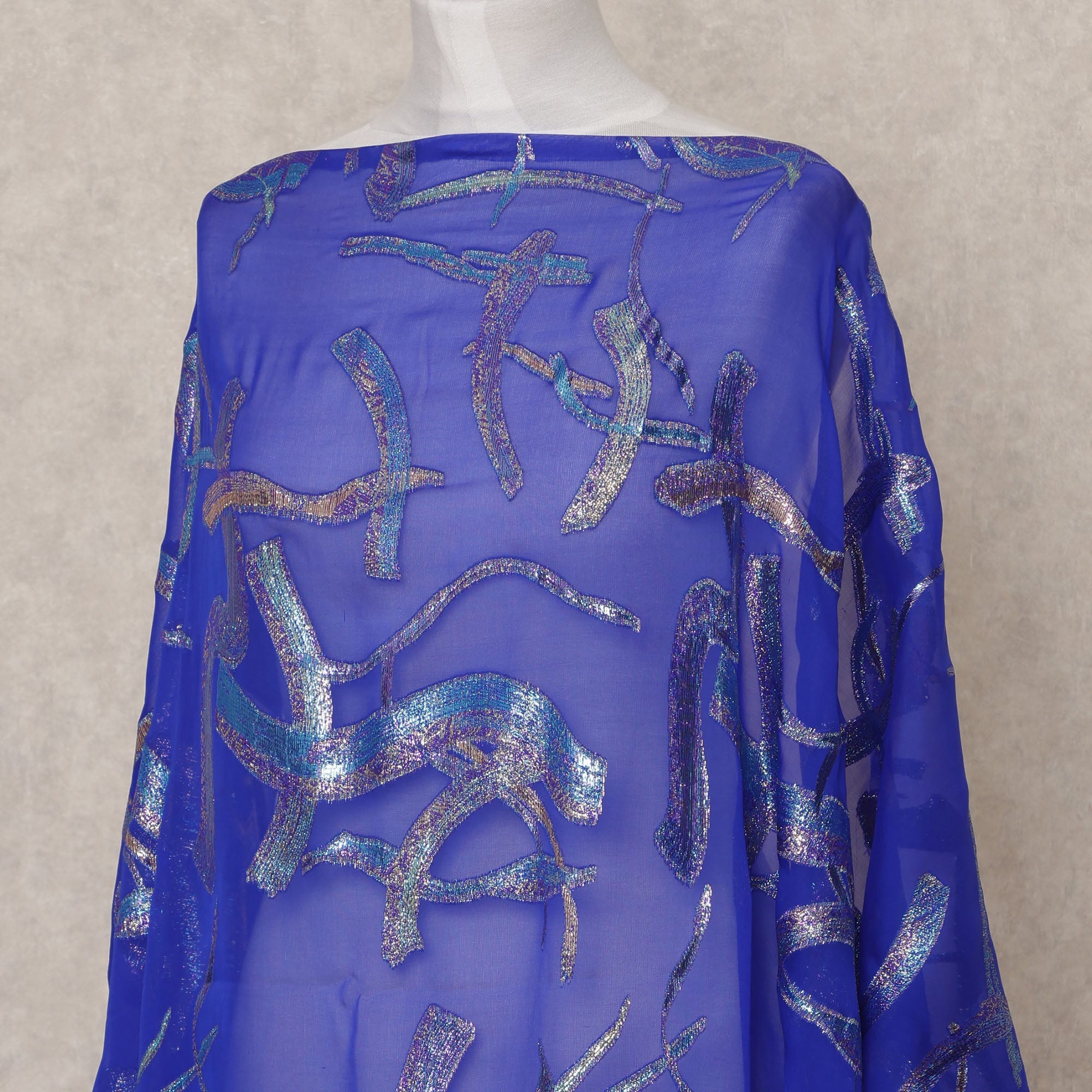 Rich royal blue silk chiffon with metallic lurex accents