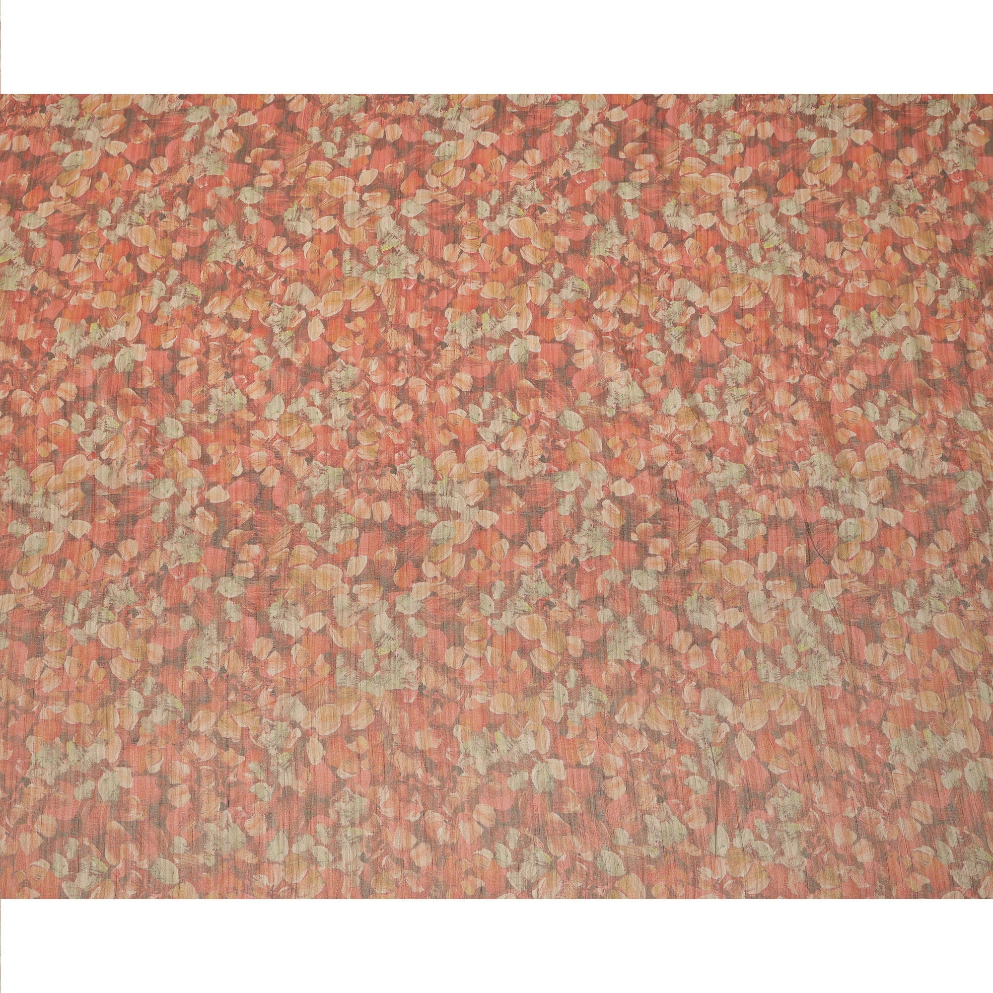 Infused with earthy elegance, this rust orange viscose tussar fabric showcases a captivating abstract leaf print in warm hues of beige, ochre, and muted coral. The soft sheen of tussar adds a luxurious dimension to the texture, while the nature-inspired design offers both artistic charm and versatility. Ideal for crafting elegant ethnic wear like sarees, tunics, and dupattas or blending into contemporary silhouettes, this fabric drapes fluidly and feels lightweight on the skin. Measuring 110 cms in width, it offers ample scope for creative tailoring. Printed in India, it reflects a harmonious blend of heritage craft and modern appeal. Buy online to elevate your wardrobe with understated sophistication.