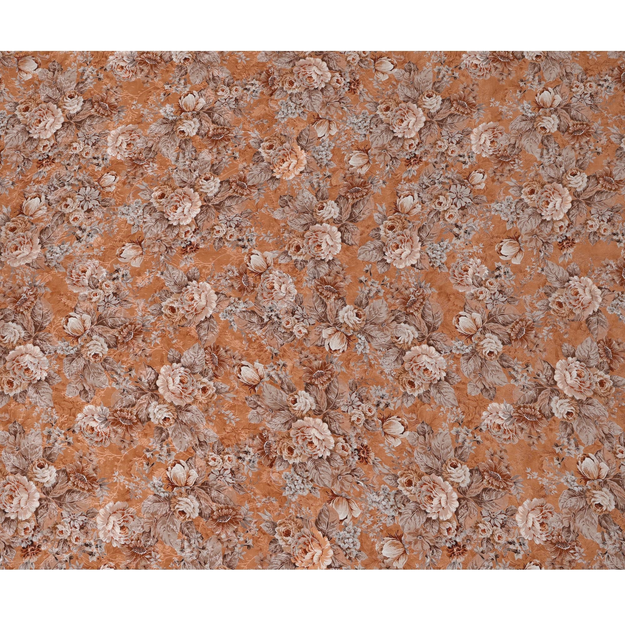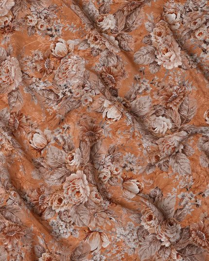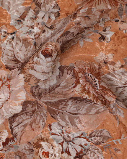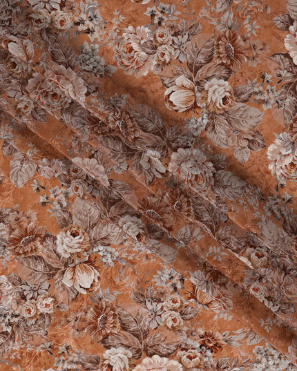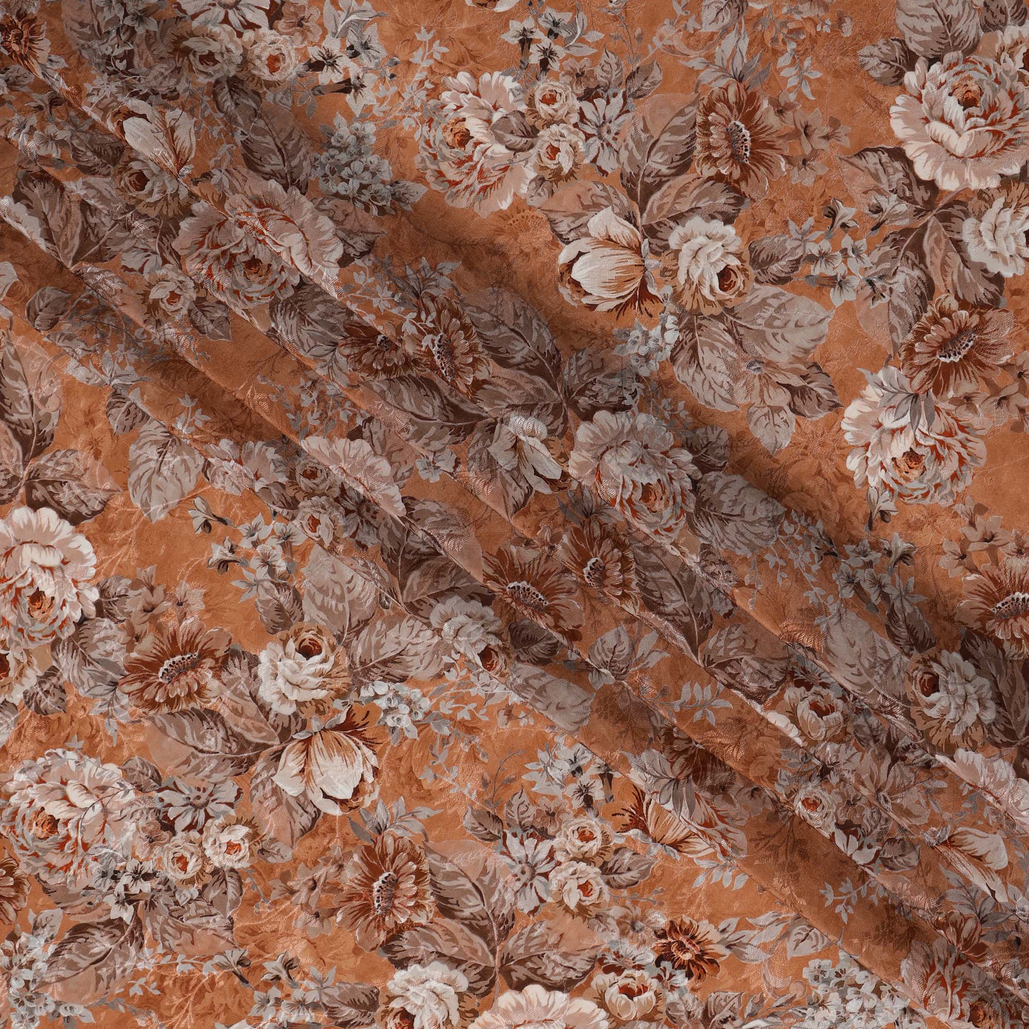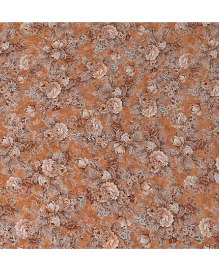 Rust Orange Vintage Floral Digital Print Viscose Fabric, 110 cm Width, Made in India-D22918
