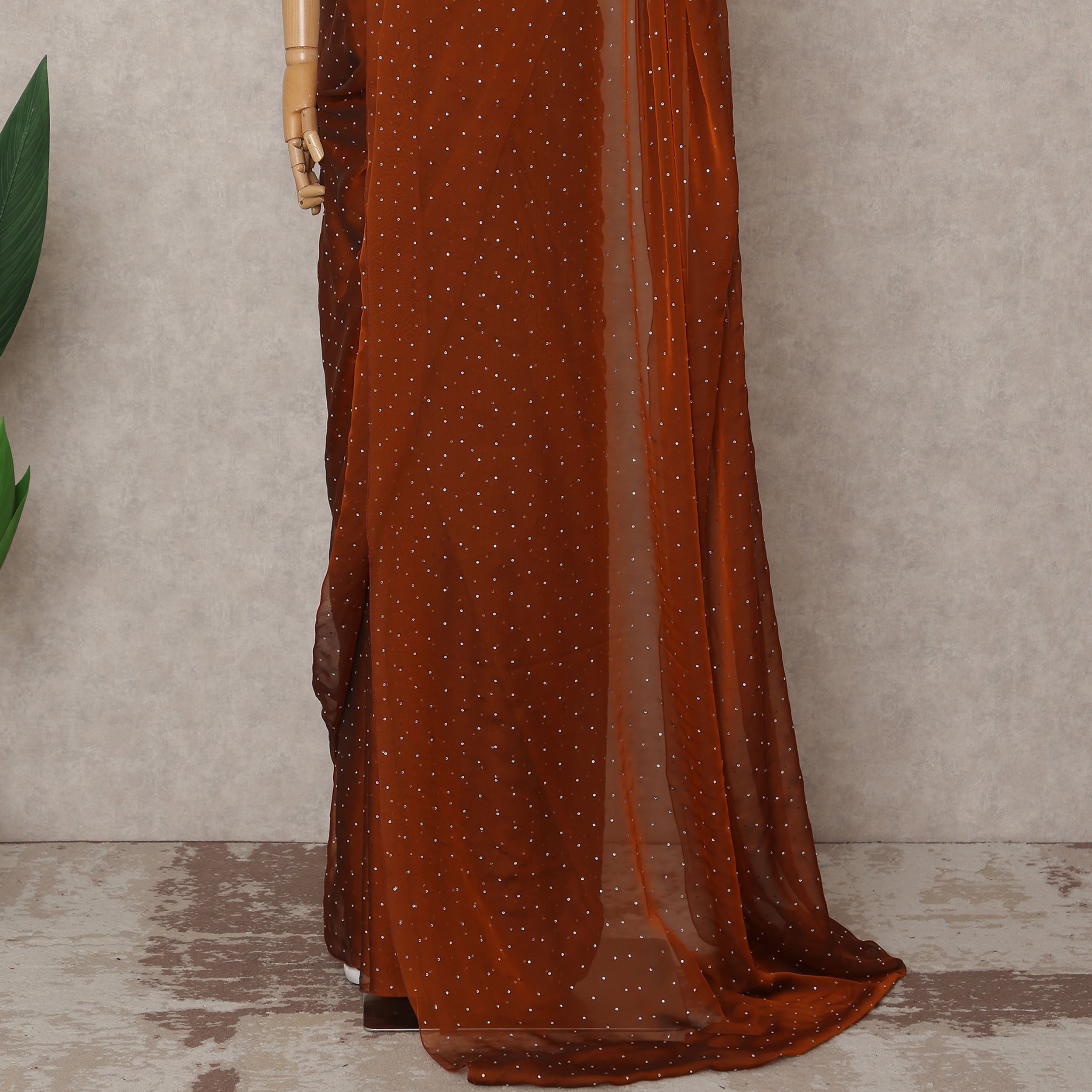 Rust Premium Pure Silk Chiffon Saree with Stone Work, 5.5 Mtrs with 110 Cms Width, Imported from South Korea-D25442