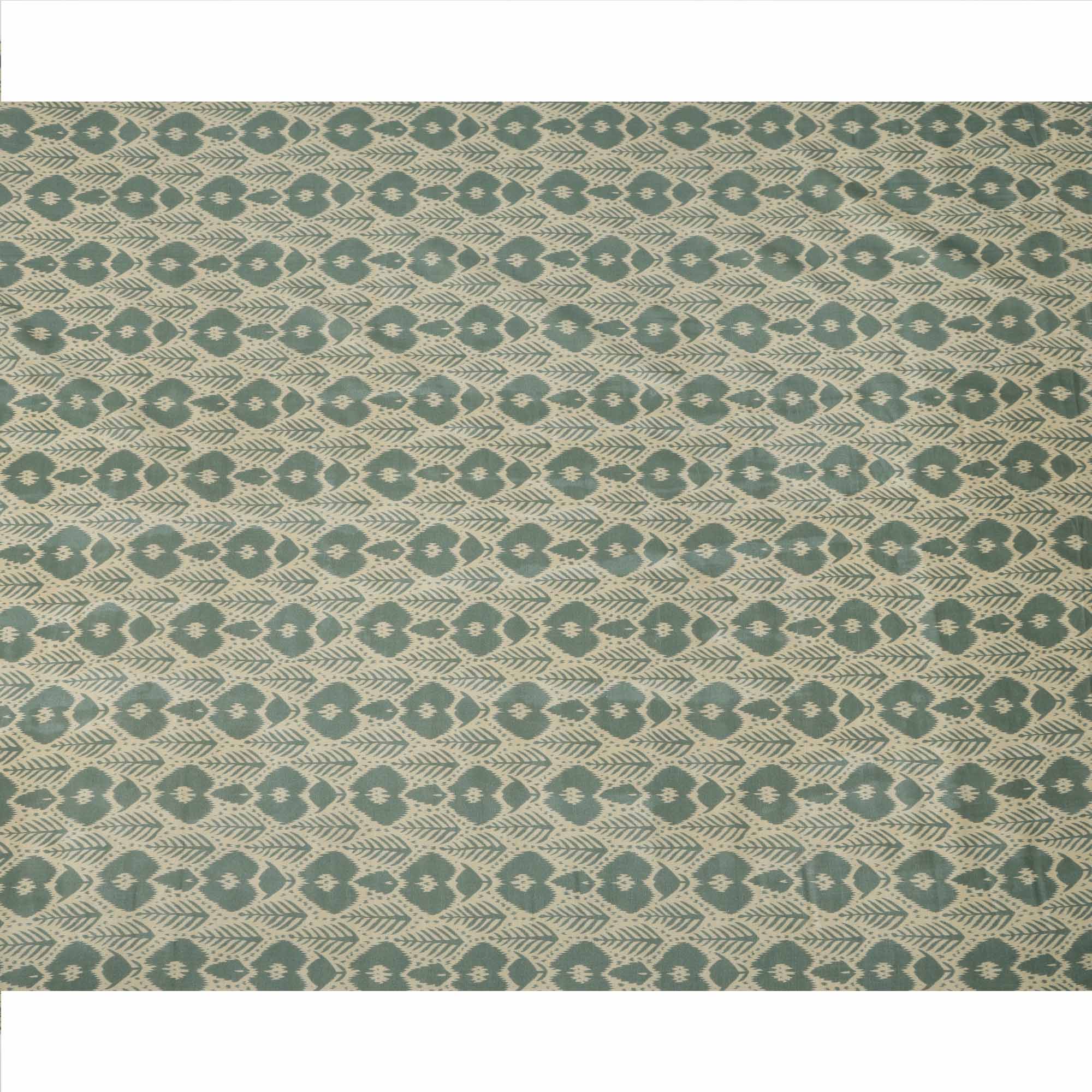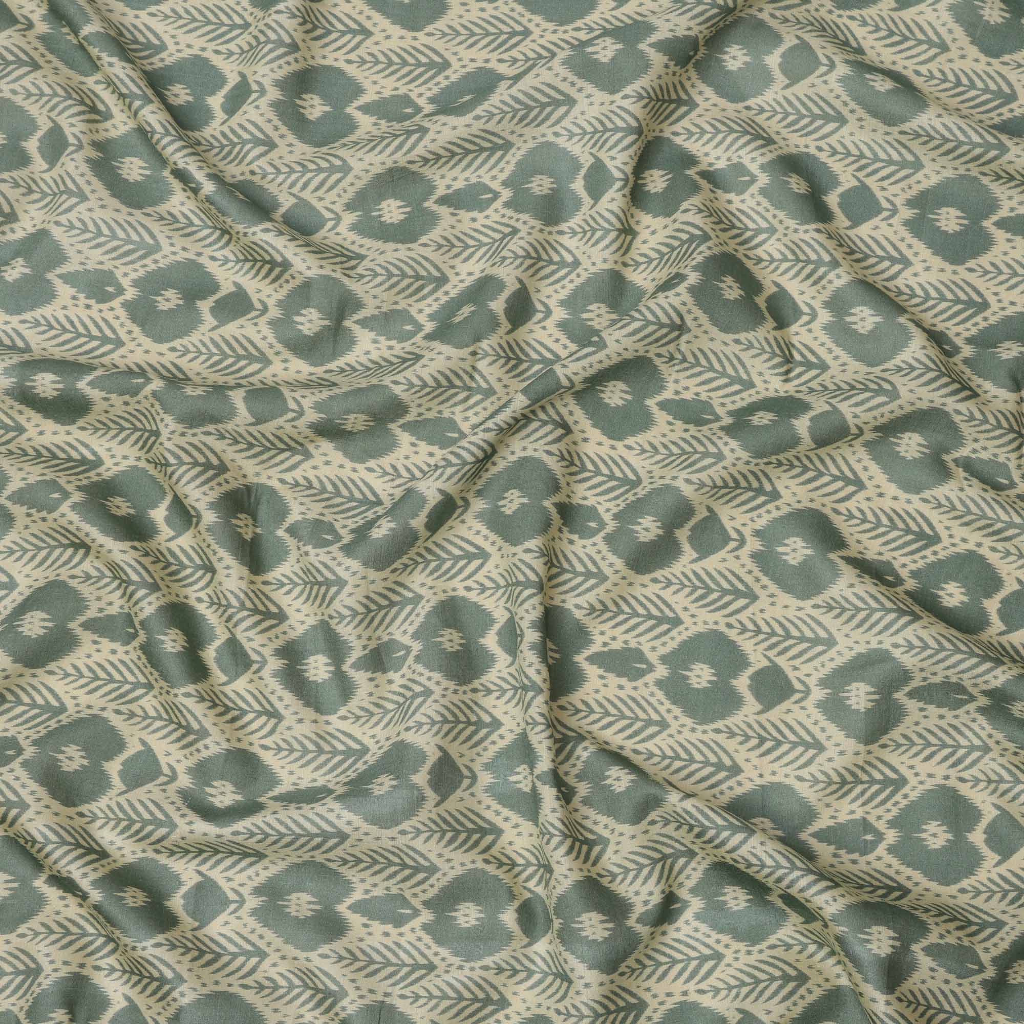 Sage Green and Beige Ikat Inspired Floral Geometric Print Cotton Lawn Fabric, 110 Cms Width, Made in India-D23573