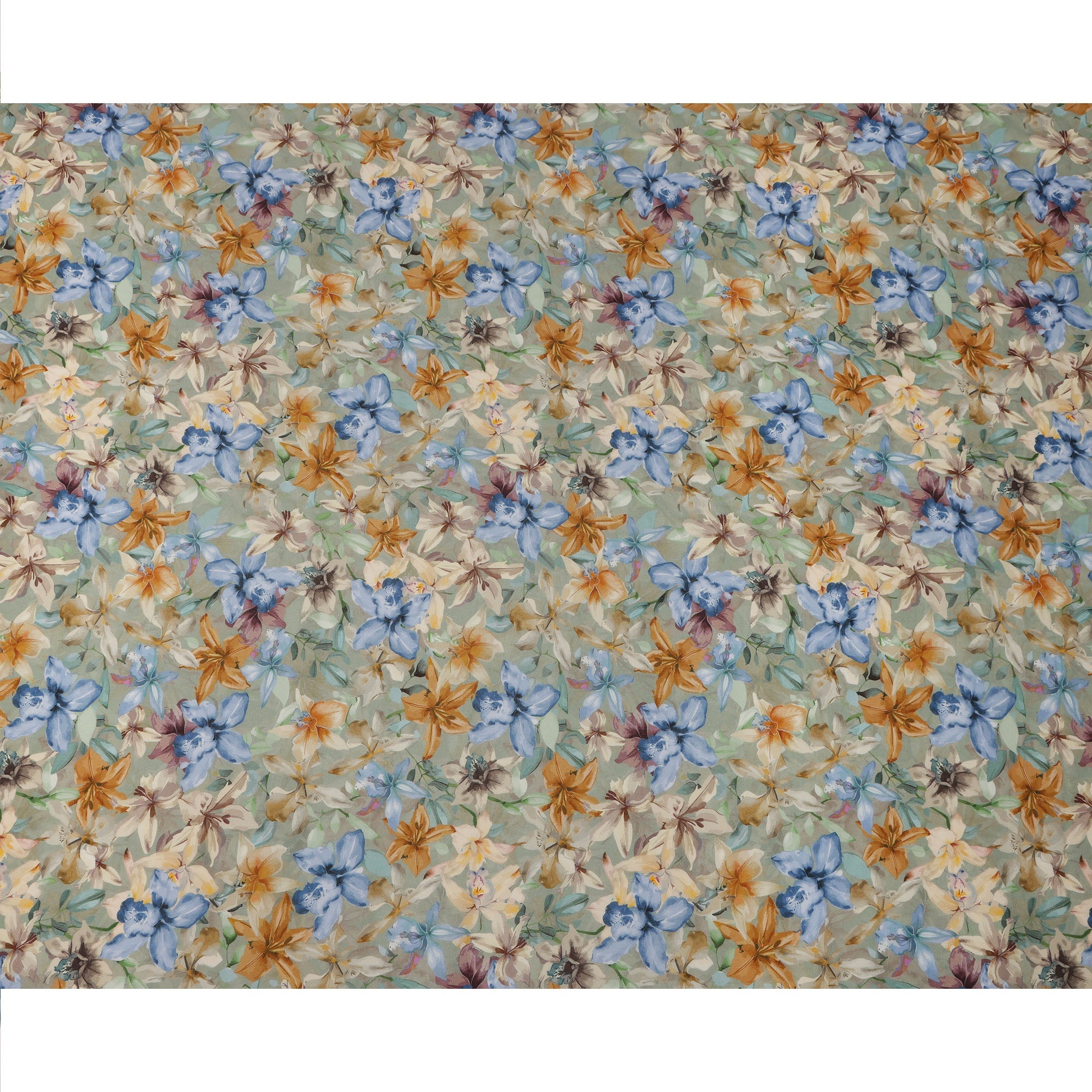 Sage green base enhanced with digitally printed tropical multicolor florals