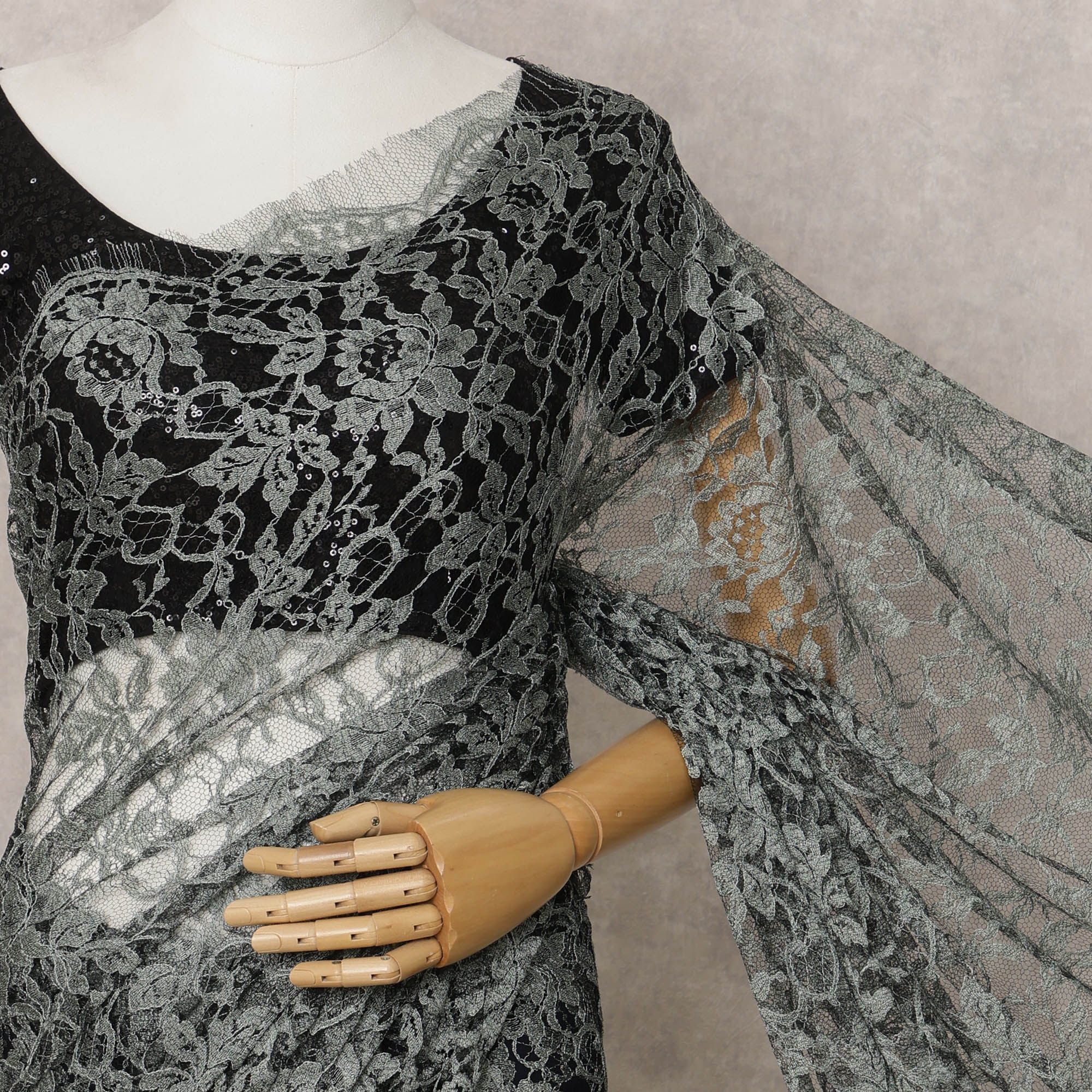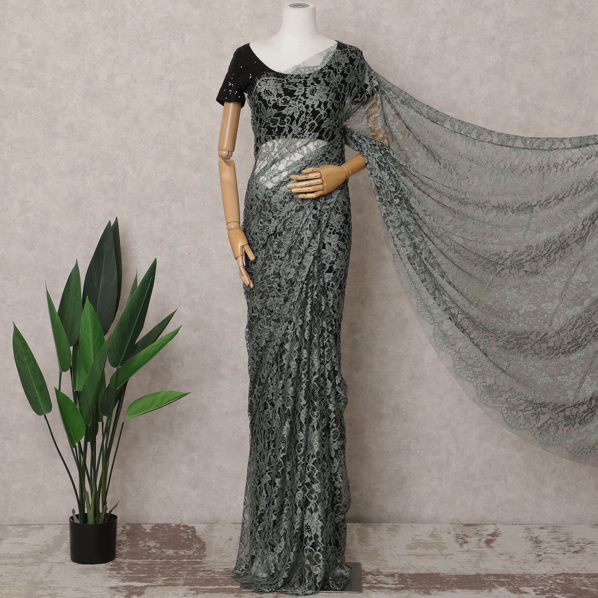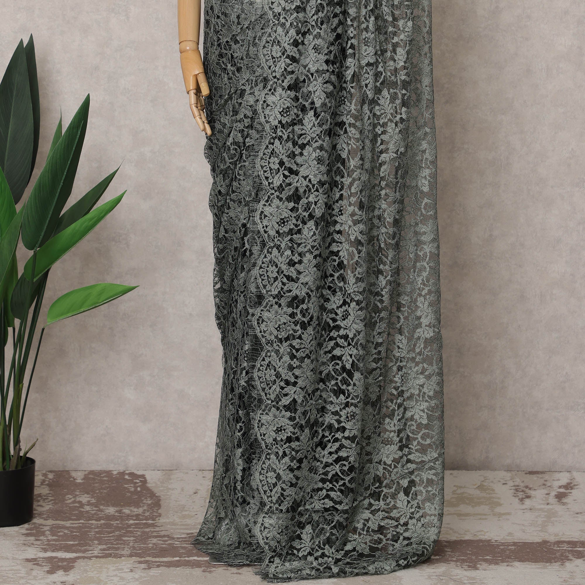 This elegant sage green French Chantilly lace fabric features intricate floral patterns that create a timeless and sophisticated appeal. Perfect for crafting sarees, gowns, and high-end designer wear, this premium Chantilly lace is lightweight yet durable, ensuring a luxurious drape and refined finish. Measuring 5.5 meters in length and 110 cm in width, it provides ample material for versatile designs. Please note, the blouse piece is not included in this listing.