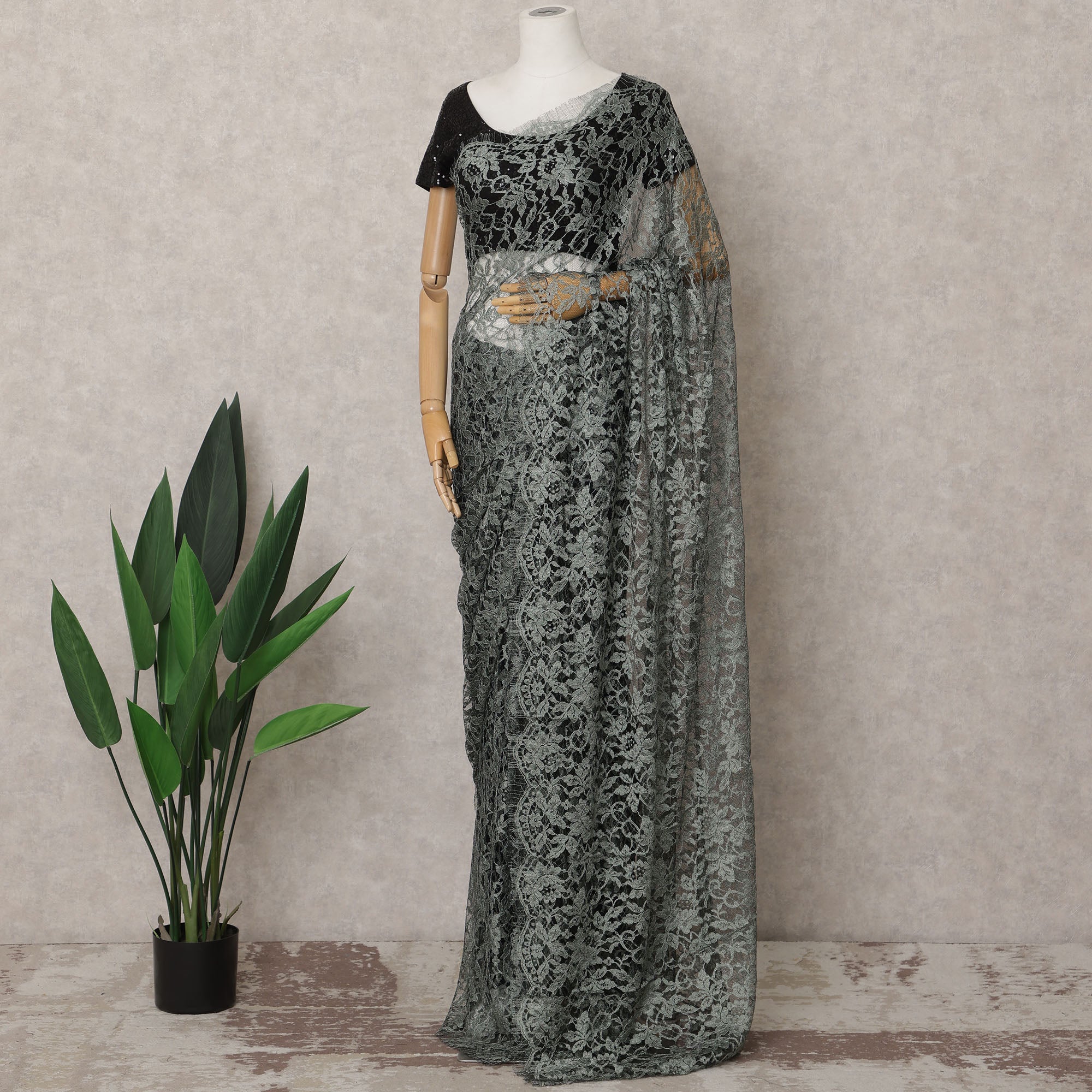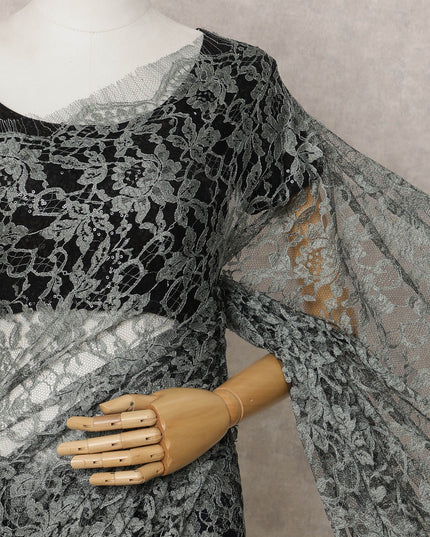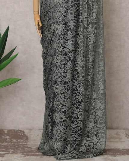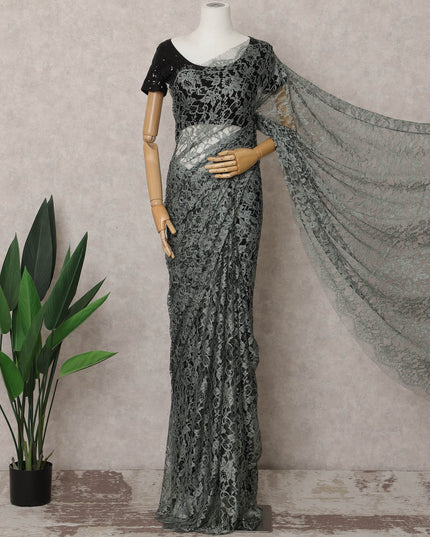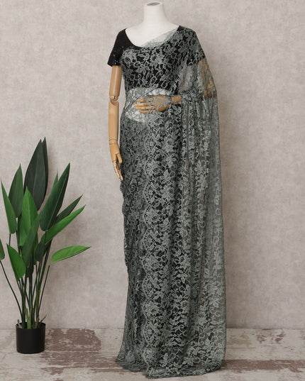 Sage Green French Chantilly Lace Saree, 5.5 Meters, 110 cm Wide-D21837