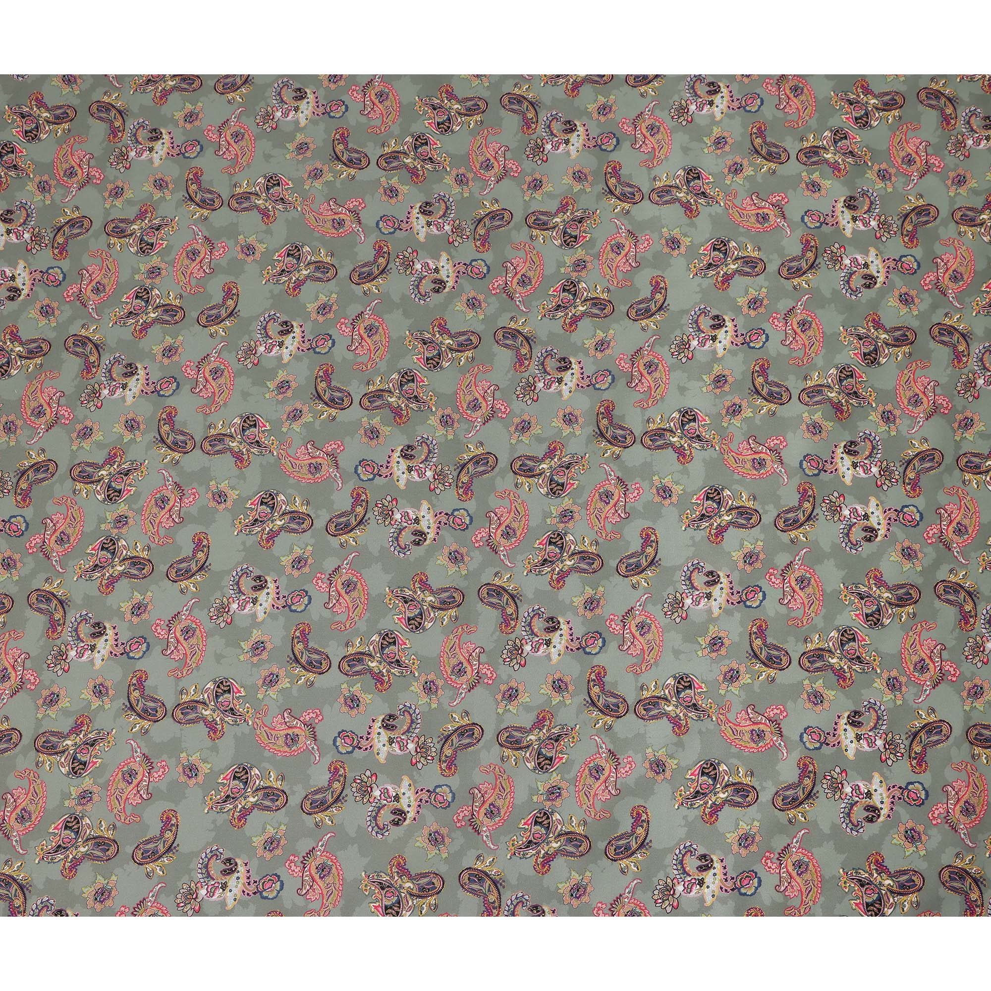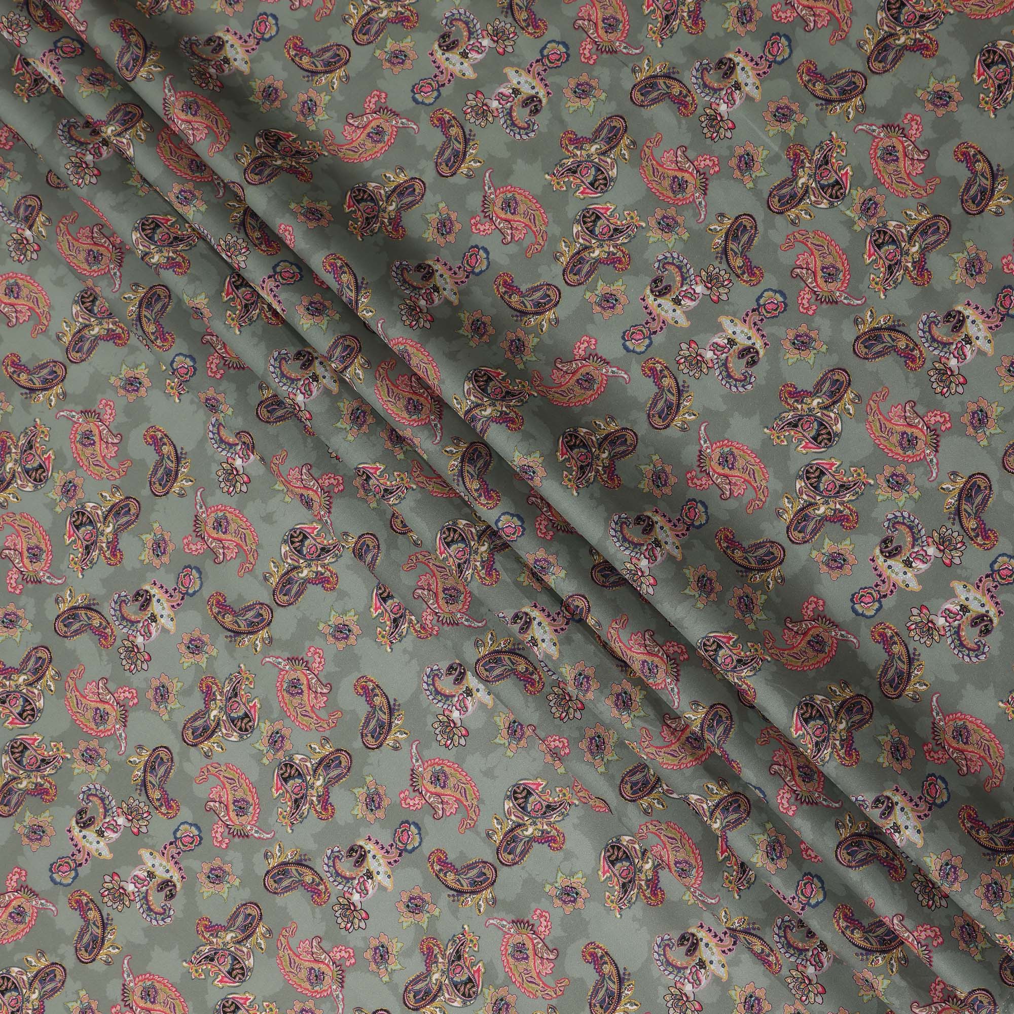 Sage Green Multicolor Paisley Floral Printed Cotton Satin Fabric 110 Cms Width Smooth Lustrous Dress Material India-D28060