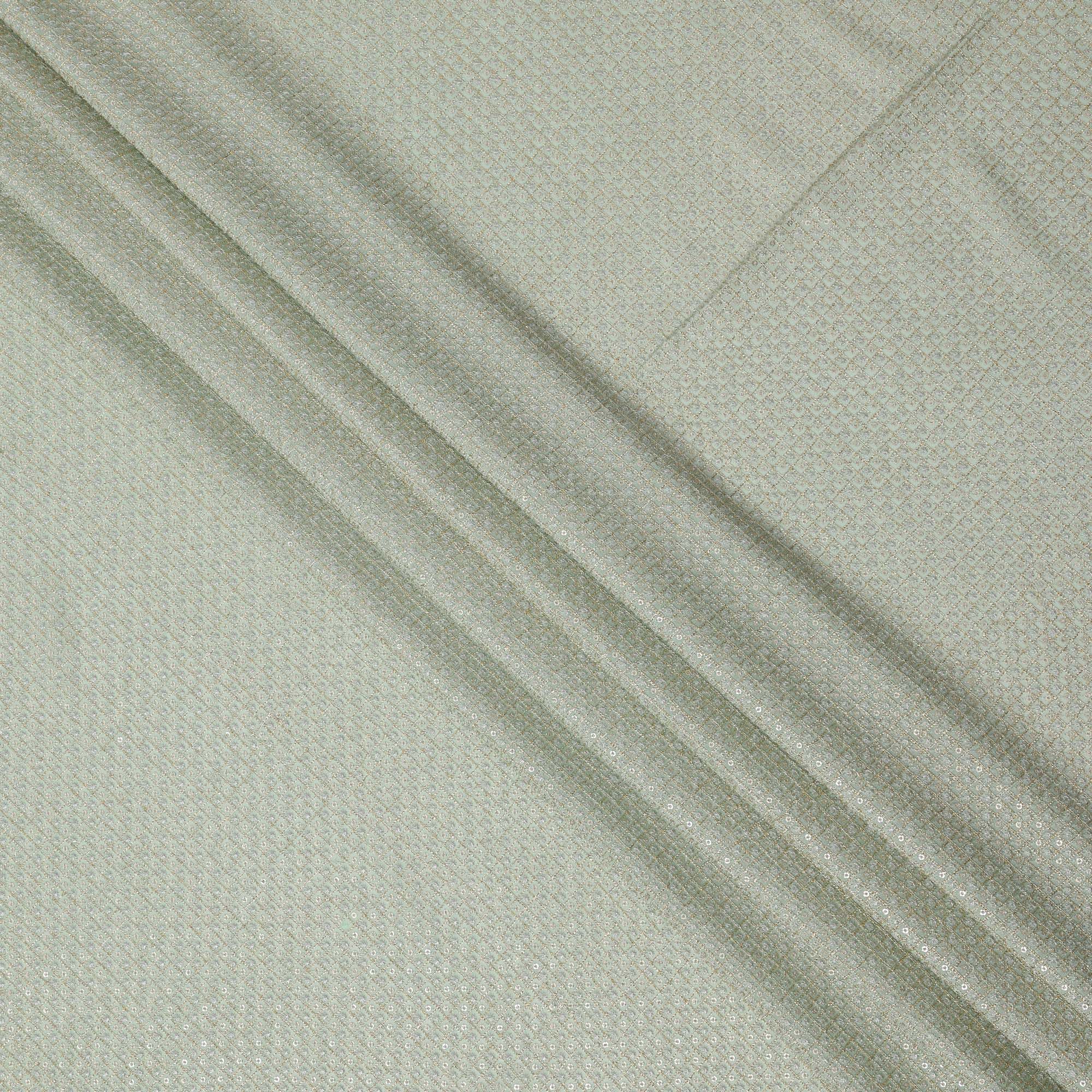 This sage green synthetic blended viscose fabric brings together a calm, earthy tone with delicate craftsmanship in its grid-based floral embroidery and gleaming mirror work. Designed to create graceful ethnic outfits, the subtle sheen and airy texture of the fabric lend themselves beautifully to lehengas, anarkalis, or kurta sets with a refined festive flair. With a width of 110 cms, this fabric allows ample flexibility for creative tailoring while ensuring comfort and durability. Made in India, it blends traditional embroidery artistry with a contemporary pastel palette. Shop online now for elevated ethnic fashion.