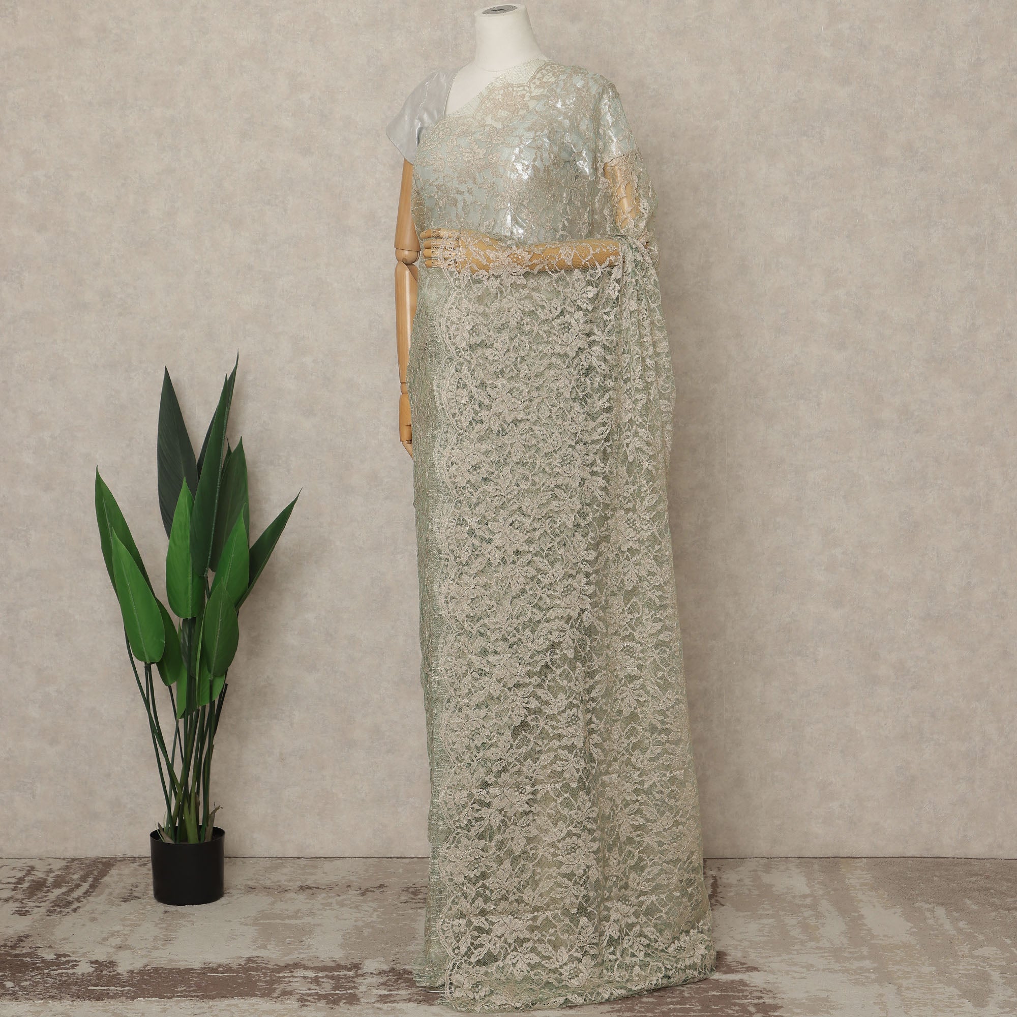Sage Premium French Chantilly Saree Lace, 5.5 Mtrs Length, 110 Cms Width, Crafted in France -Blouse Not Included-D26714