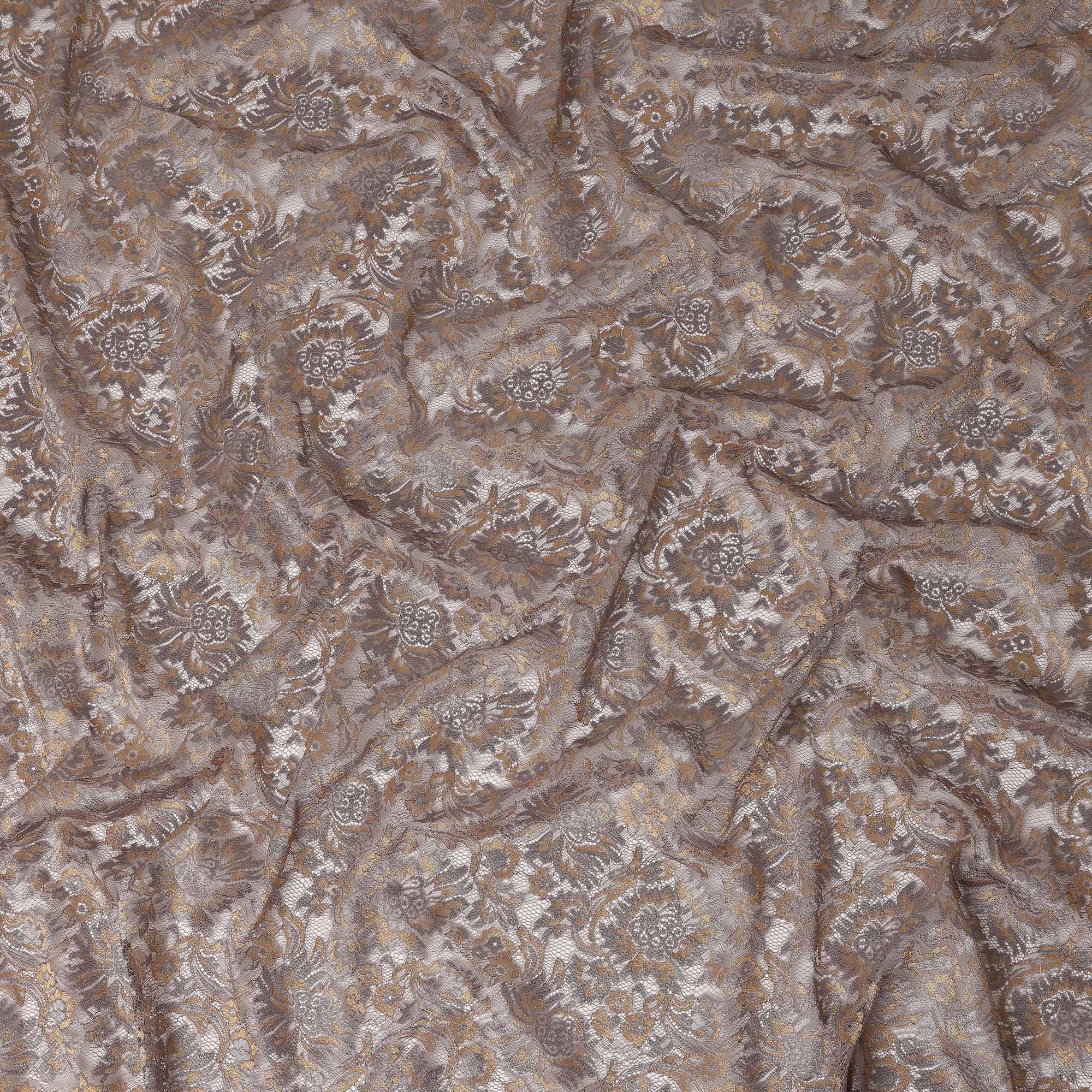 This silver grey synthetic metallic lace fabric features an intricate floral embroidery pattern highlighted with subtle metallic accents that create... Read more Read more