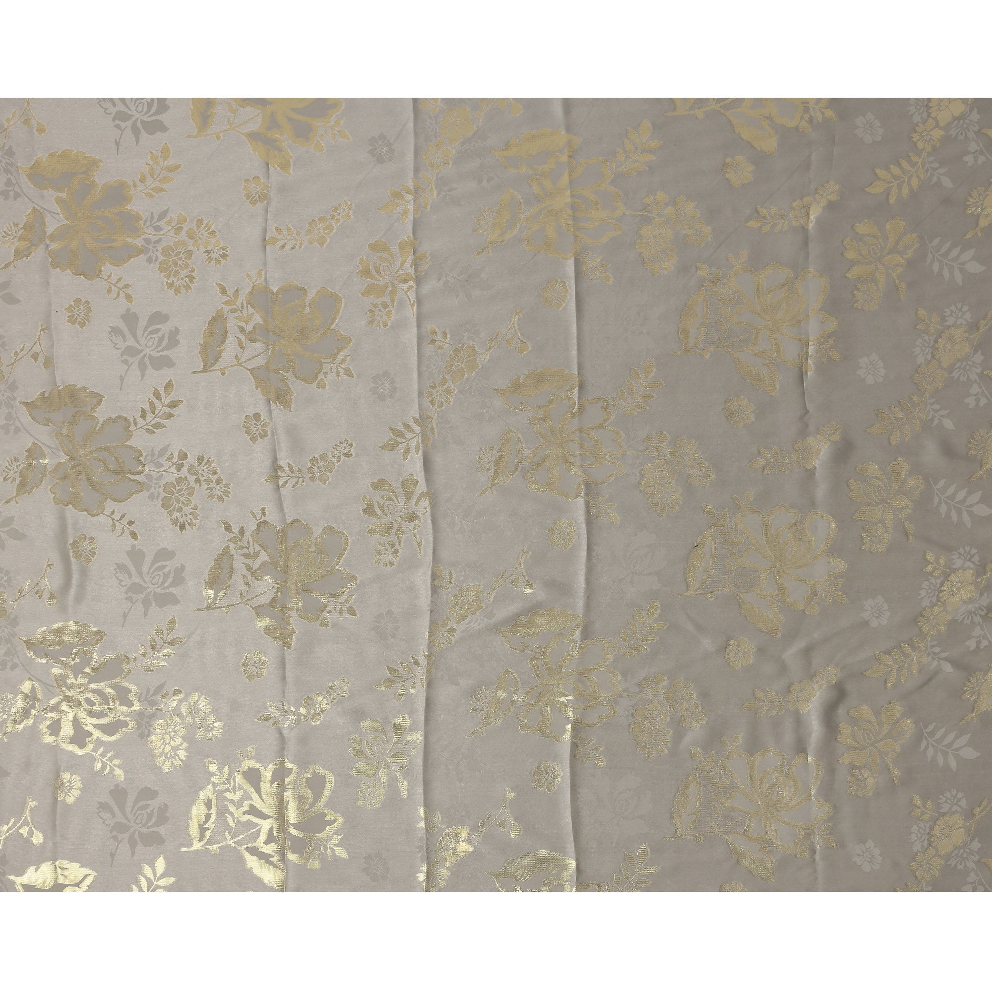 This refined silver grey silk satin fabric captures understated luxury through its cool neutral tone and delicately woven metallic floral jacquard design that softly reflects light. The satin base is smooth, fluid, and lustrous, offering a rich silky hand feel and an elegant natural sheen, while the intricate metallic motifs are seamlessly blended into the weave to create subtle texture and graceful shimmer. The silver grey color palette feels modern, sophisticated, and versatile, making this fabric an excellent choice for bridal wear, evening outfits, designer blouses, gowns, lehengas, saree blouses, and premium ethnic or fusion ensembles. Crafted with skilled Indian textile craftsmanship, this fabric showcases precision weaving, fine finishing, and dependable durability. Its balanced weight and flowing drape allow effortless movement while supporting structured tailoring and detailed silhouettes. Ideal for designers and creators looking to buy online or shop online for premium silk satin fabrics, this metallic jacquard textile stands out for its elegance, adaptability, and timeless appeal. Dry clean care is recommended to preserve the metallic detailing, satin luster, and refined silver grey tone.