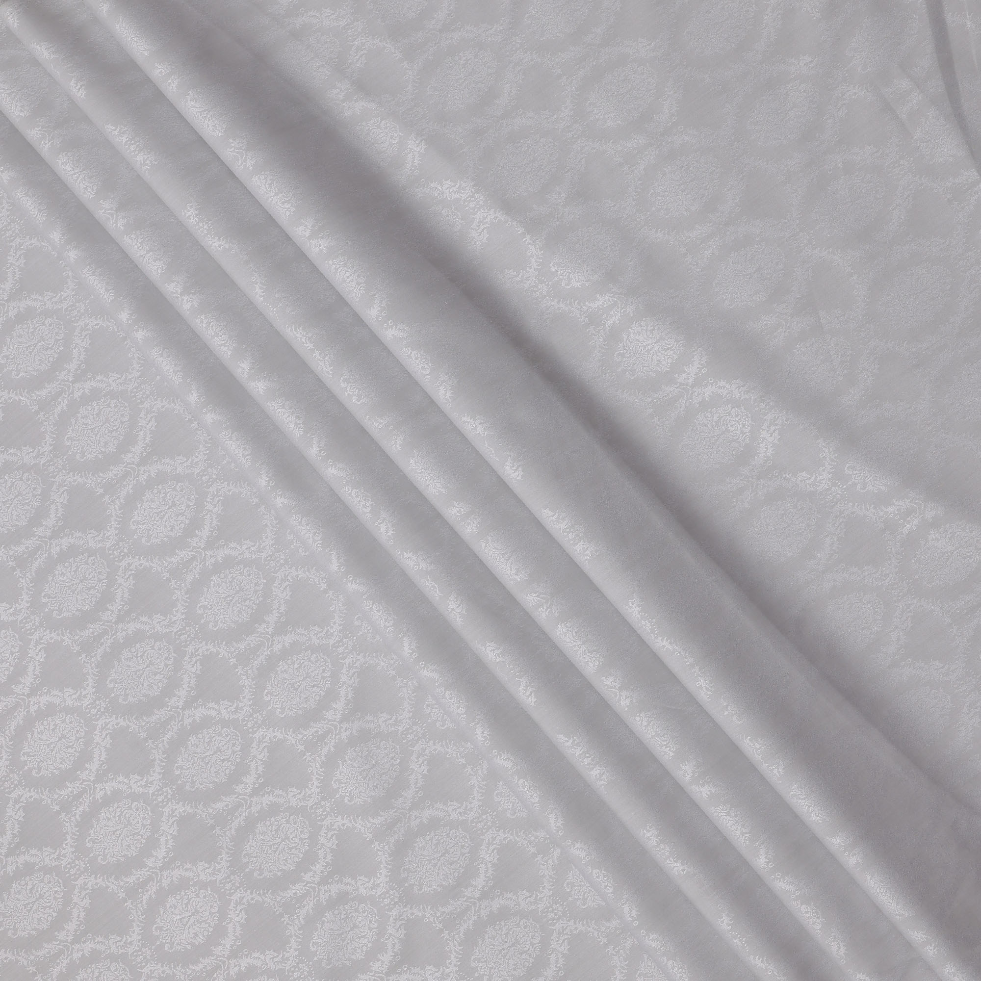 Silver White Jacquard Design Swiss Cotton Shirting Fabric, 150 Cms, Switzerland-D24935
