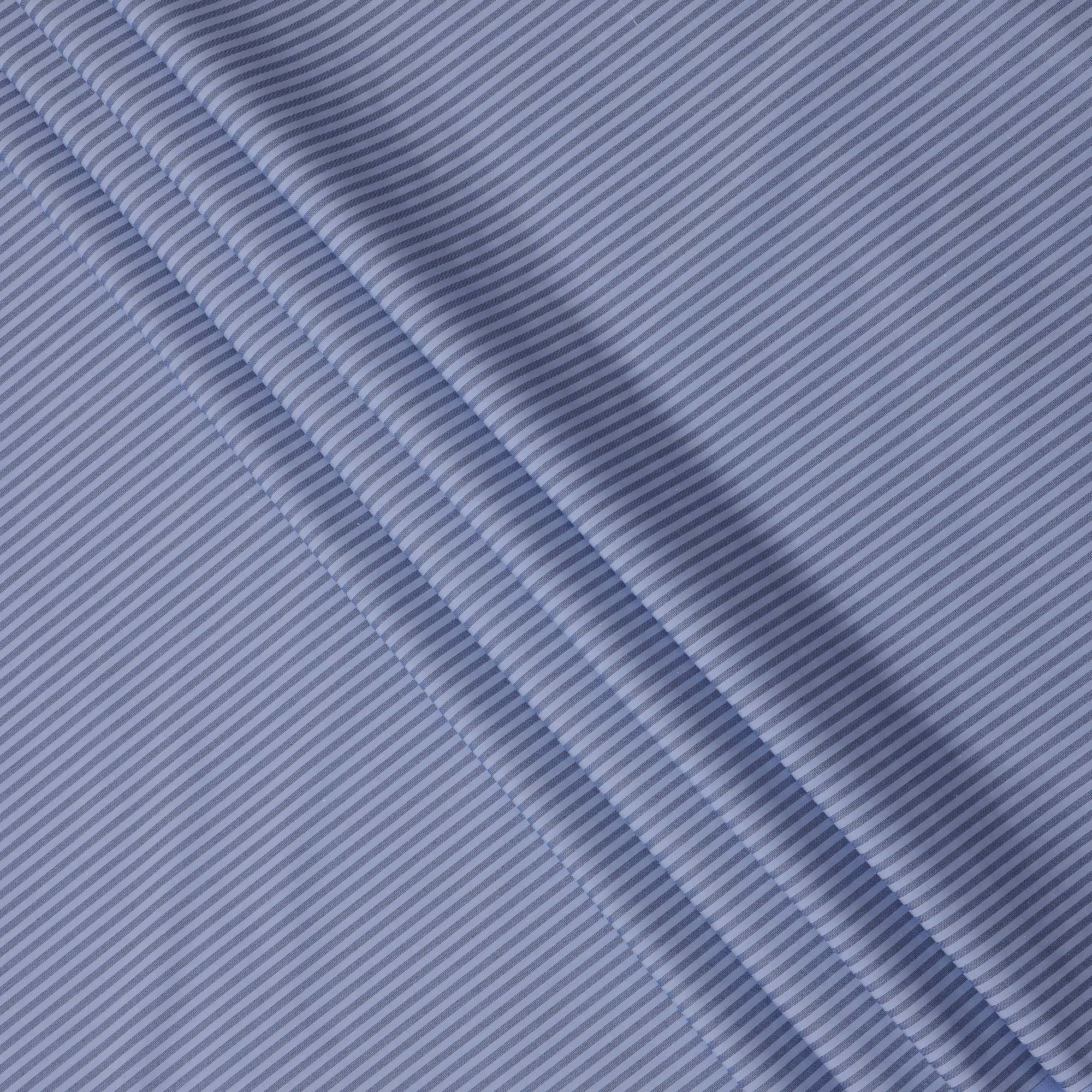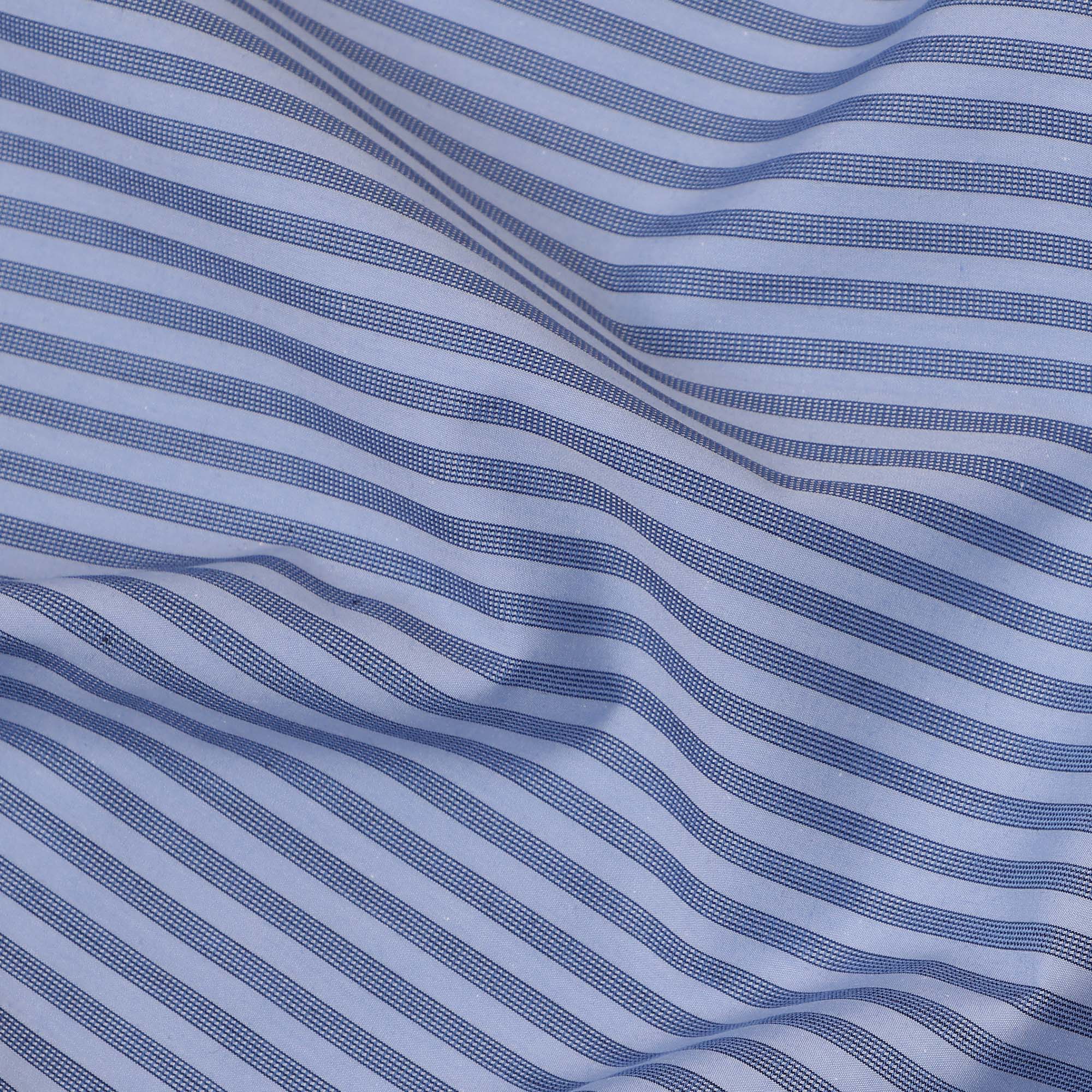 Sky Blue and Navy Striped Italian 100% Cotton Shirting Fabric, 150 Cms, Italy-D24938