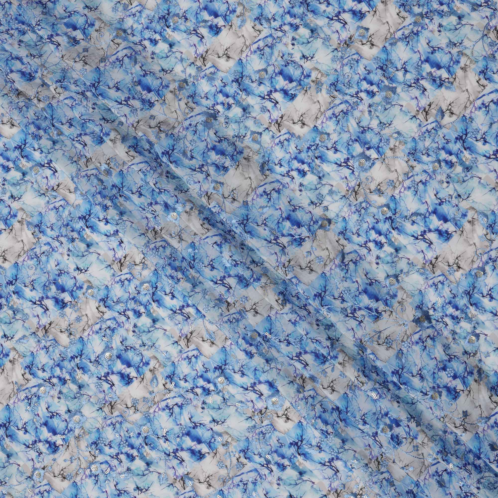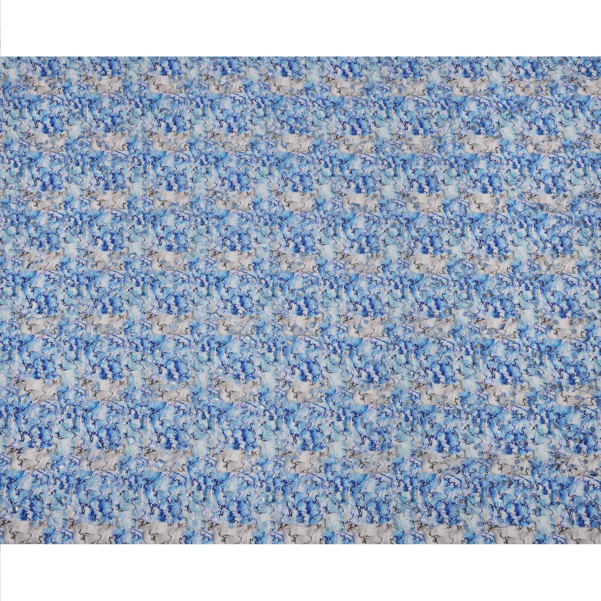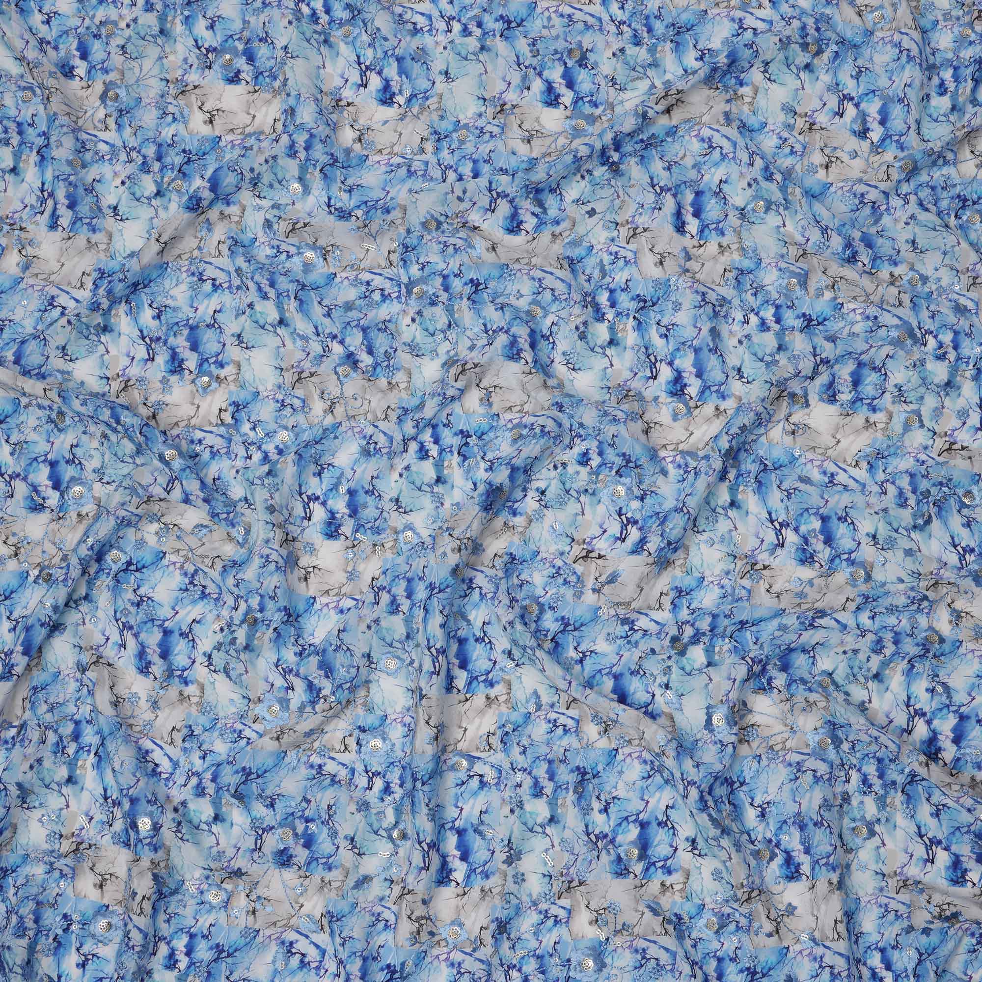 Sky Blue and White Floral Digital Print Viscose Crepe Fabric, 110 Cms Width, Made in India-D23620