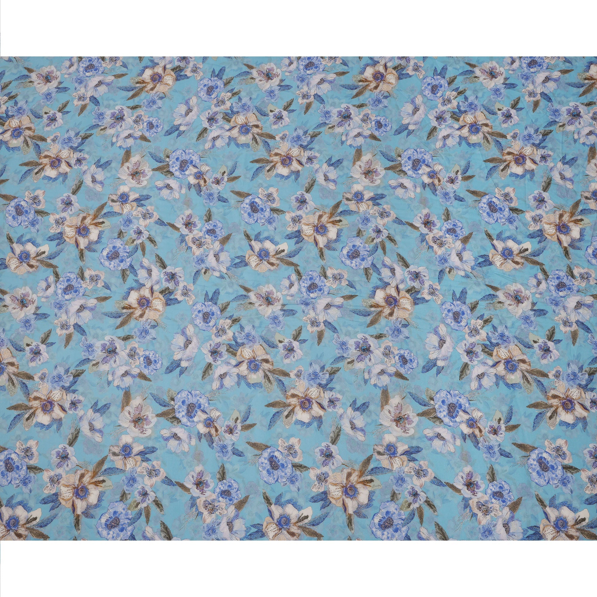 Sky Blue Base Indigo and Beige Floral Printed Viscose Crepe Fabric, 110 Cms Width, Made in India-D23980
