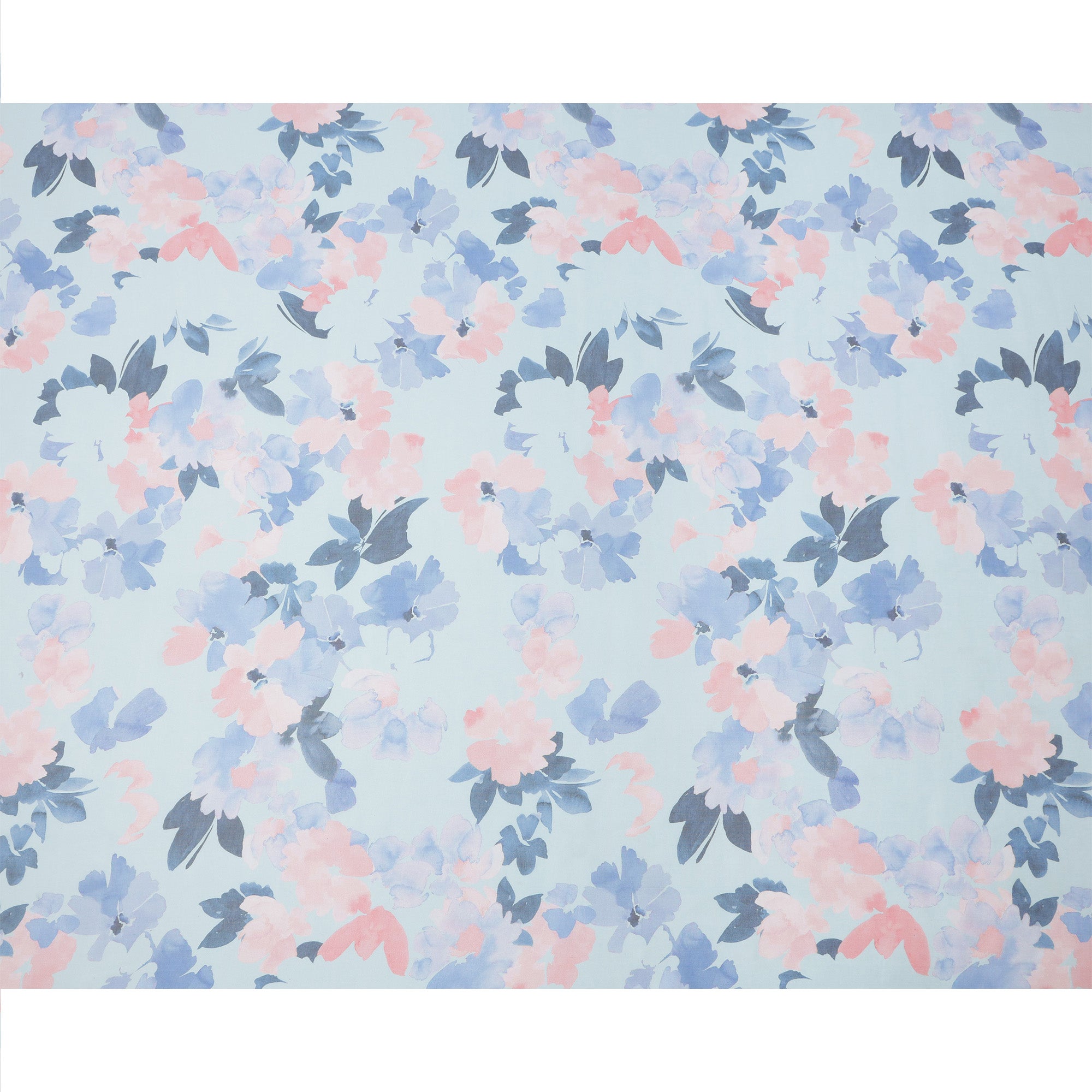 Sky Blue Base Soft Pink and Lilac Watercolor Floral Printed Pure Silk Chiffon Fabric, 110 Cms Width, Made in South Korea-D23993