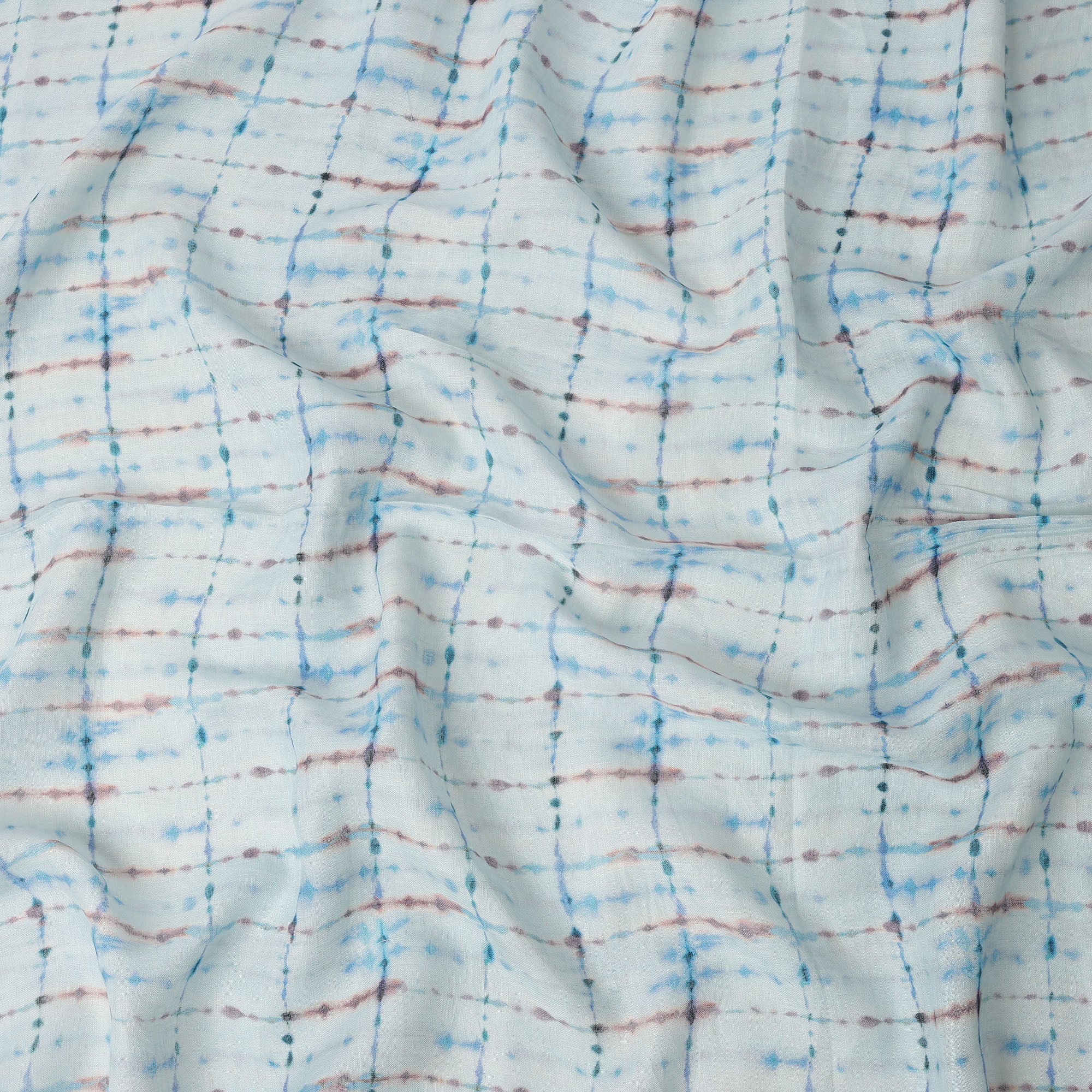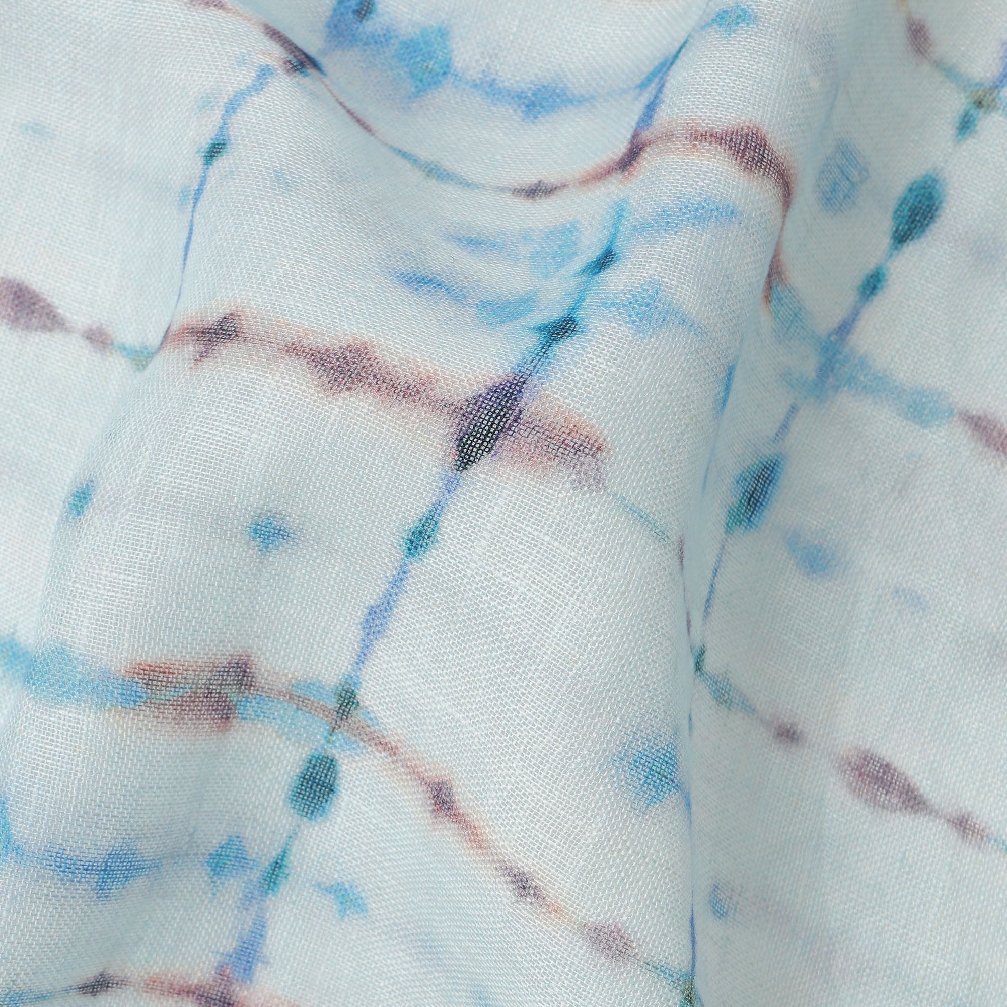 Sky Blue Brown Shibori Tie-Dye Print Blended Linen Fabric, 110 Cms Width, Made in India-D26184
