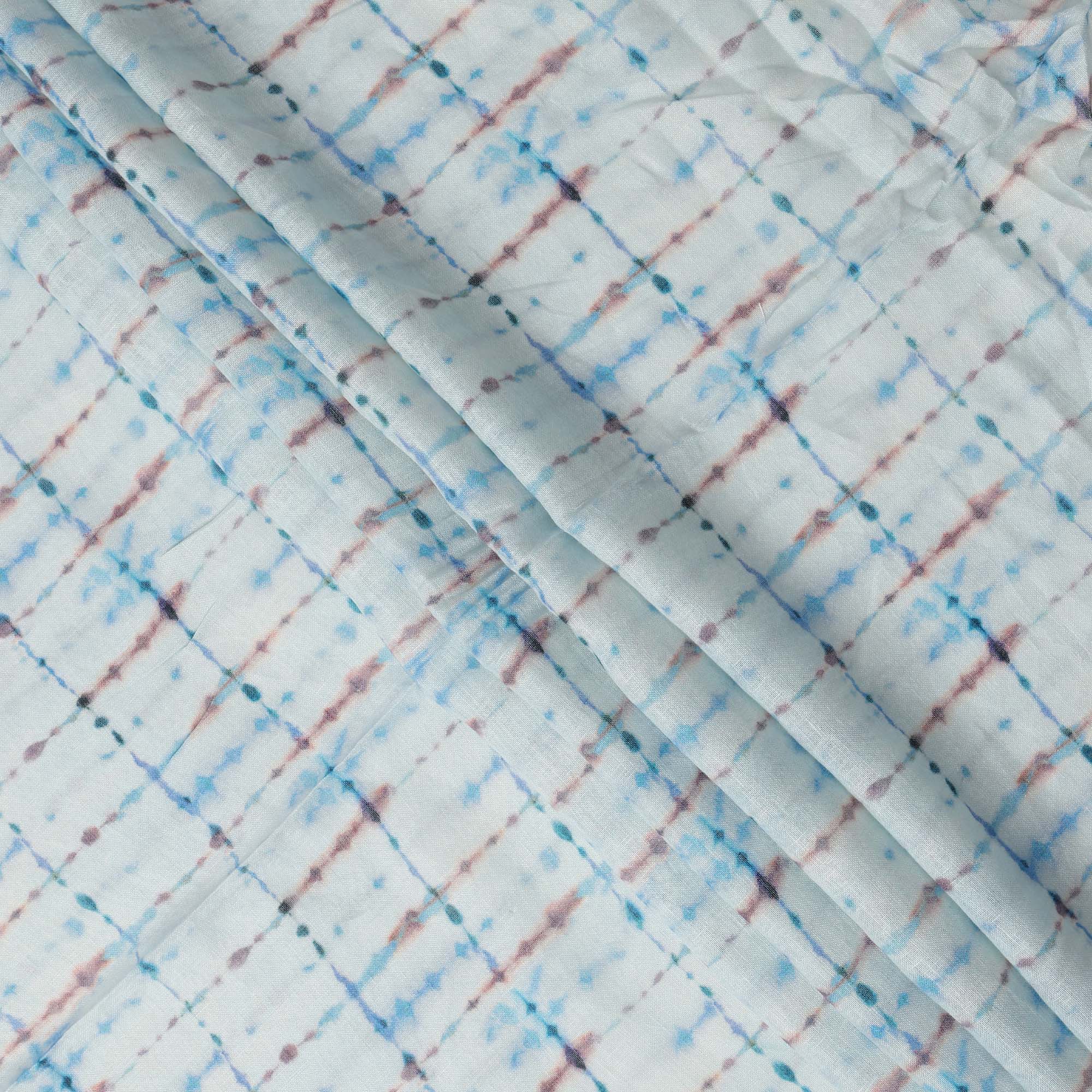 Infuse your wardrobe and décor with artisanal elegance through this Sky Blue Brown Shibori Tie-Dye Print Blended Linen Fabric, beautifully crafted in India. The tranquil sky blue backdrop is adorned with traditional Shibori-style tie-dye patterns in brown, blue, and soft grey tones, creating a subtle yet captivating grid-like effect. Made from a premium blend of linen fibers, this fabric offers exceptional breathability, a smooth texture, and a graceful drape, making it ideal for creating sarees, kurtas, dresses, or elegant home décor accents. With a width of 110 cm, it provides excellent versatility for creative tailoring and design projects. The Shibori tie-dye technique lends a handcrafted charm, celebrating the artistry of Indian textile heritage in a modern, wearable form. Lightweight and durable, it ensures year-round comfort while retaining its structural elegance. Easy to maintain with gentle hand wash or dry clean care, this blended linen fabric perfectly balances tradition, texture, and sophistication. Shop online now to experience a perfect harmony of culture and contemporary fashion.
