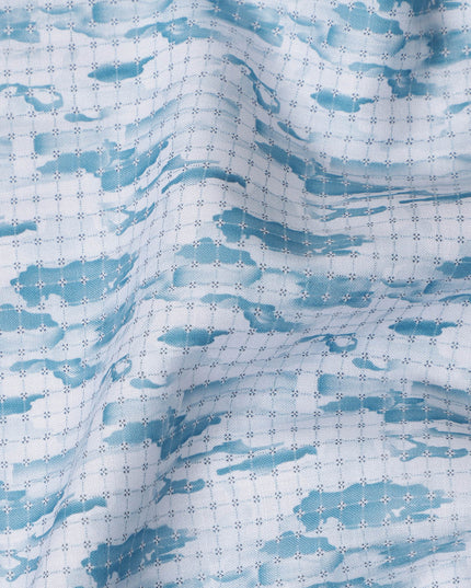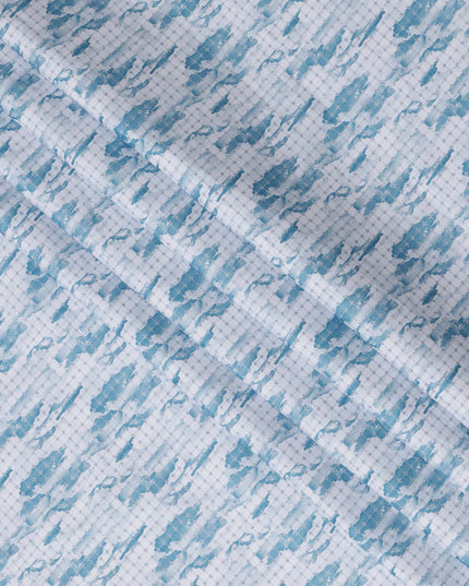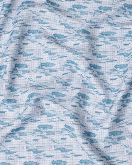 The Sky Blue Cloud Print Blended Linen Fabric brings a breezy, artistic charm to your wardrobe and décor with its serene tones and soft texture, ideal for creating casual wear or light home accents. Made in India, this fabric features a refreshing white base overlaid with abstract sky blue cloud-like patterns and a subtle grid design, evoking a dreamy, open-sky effect that’s both whimsical and calming. The blended linen composition ensures breathable comfort, light structure, and long-lasting quality, making it a perfect choice for summer shirts, flowy tops, tunics, or even curtains and cushion covers. With a width of 140 cms and sold per meter, it provides flexibility for personalized projects large and small. Its soft drape and playful print offer a relaxed yet stylish aesthetic suited for all-day wear or tranquil interiors. Shop online now to bring this cloud-kissed fabric into your creative space. Gentle hand wash or dry clean is recommended to maintain print integrity and texture.