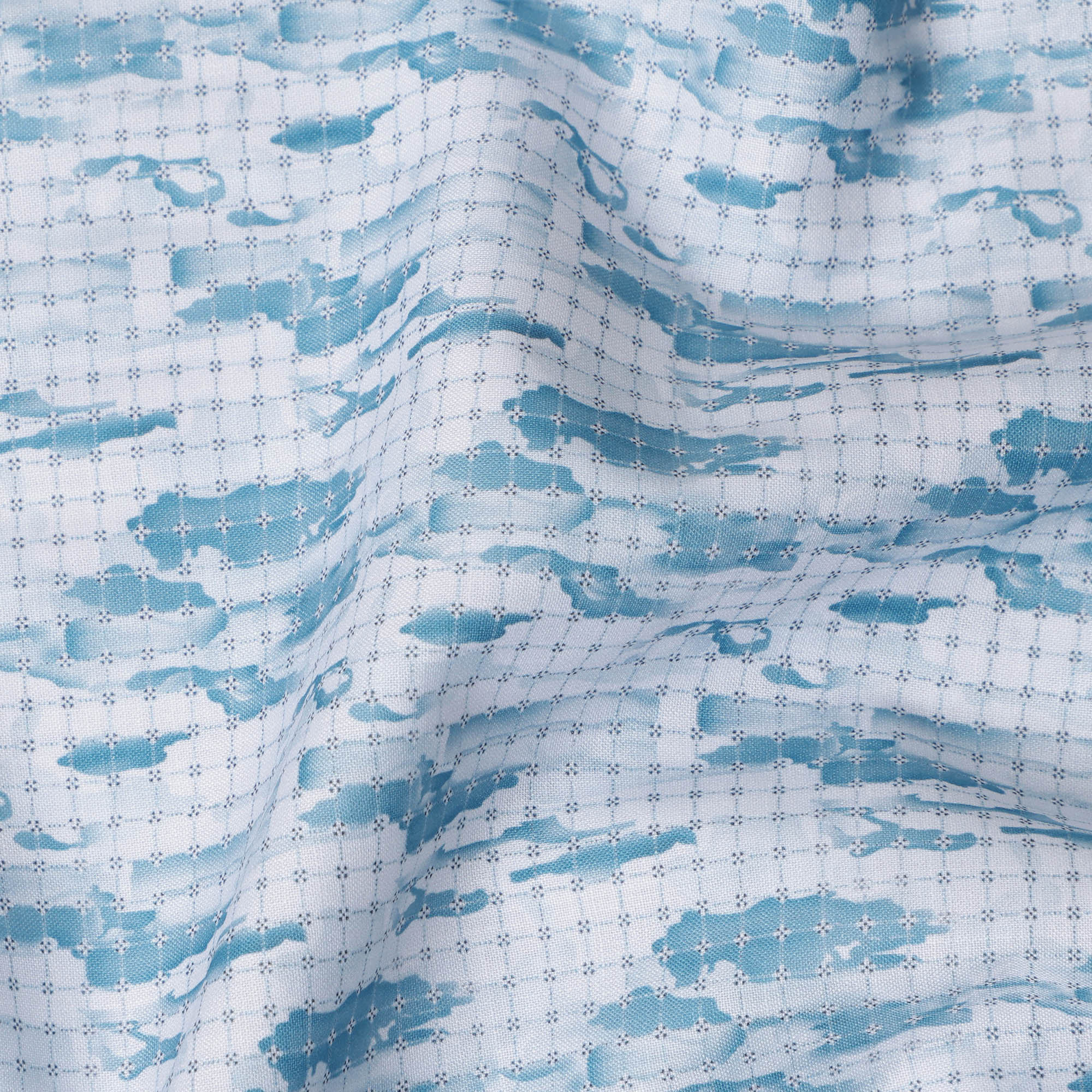 White base with sky blue cloud-inspired print and fine grid lines for a modern airy look.