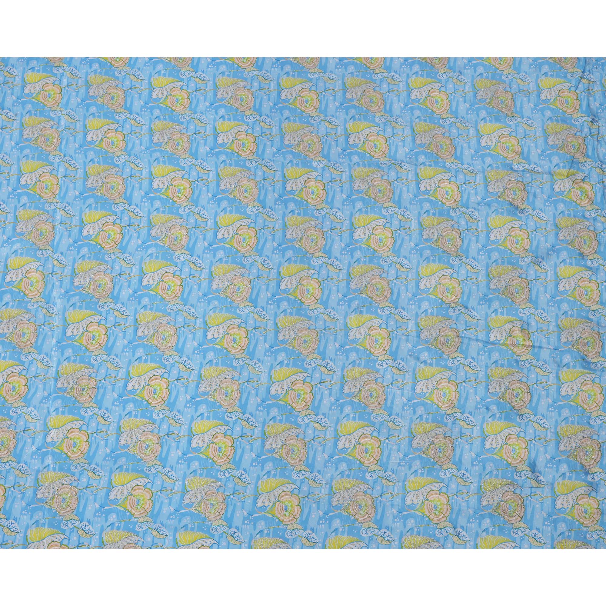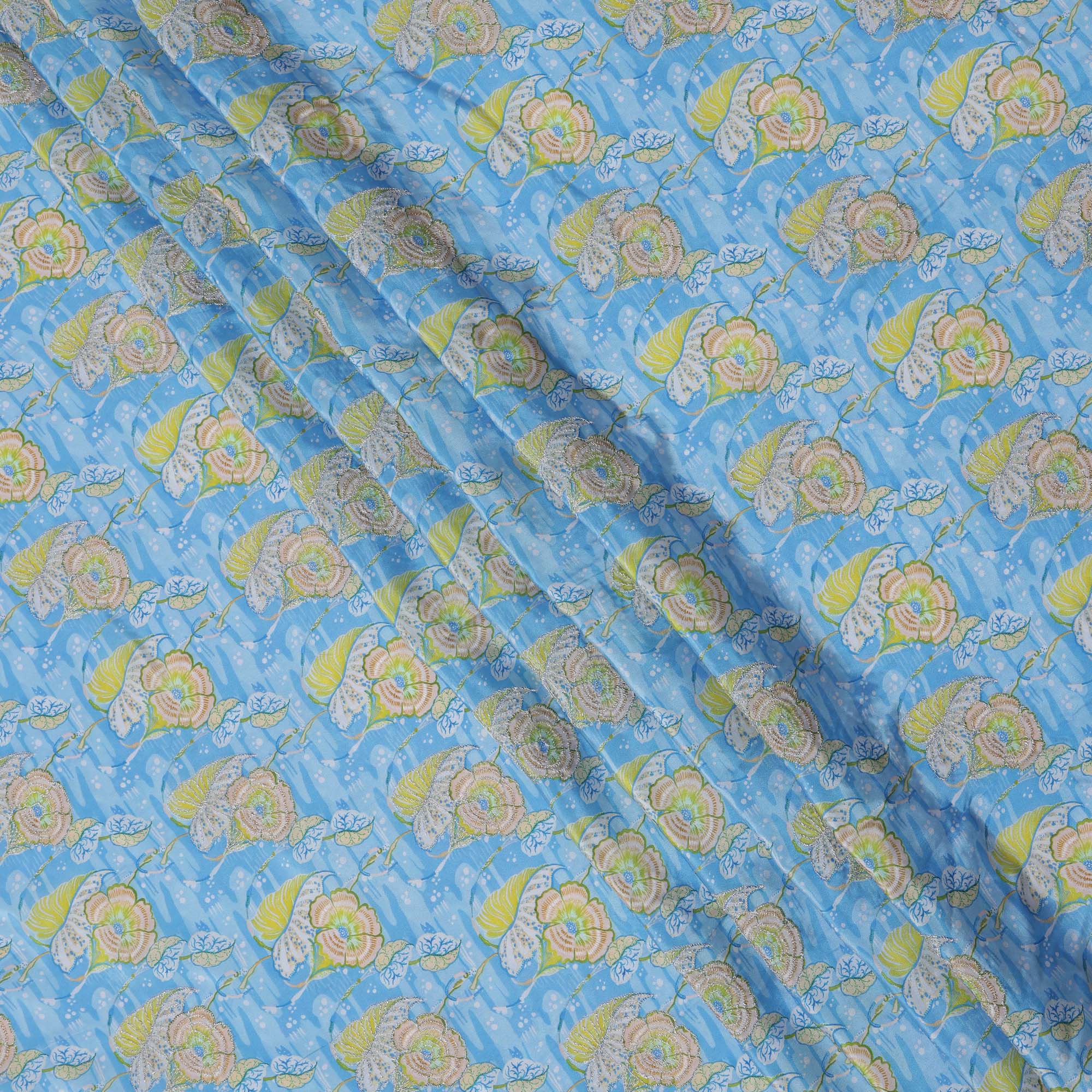 Sky Blue Floral Printed Viscose Crepe Fabric, 110 Cms Width, India-D24805