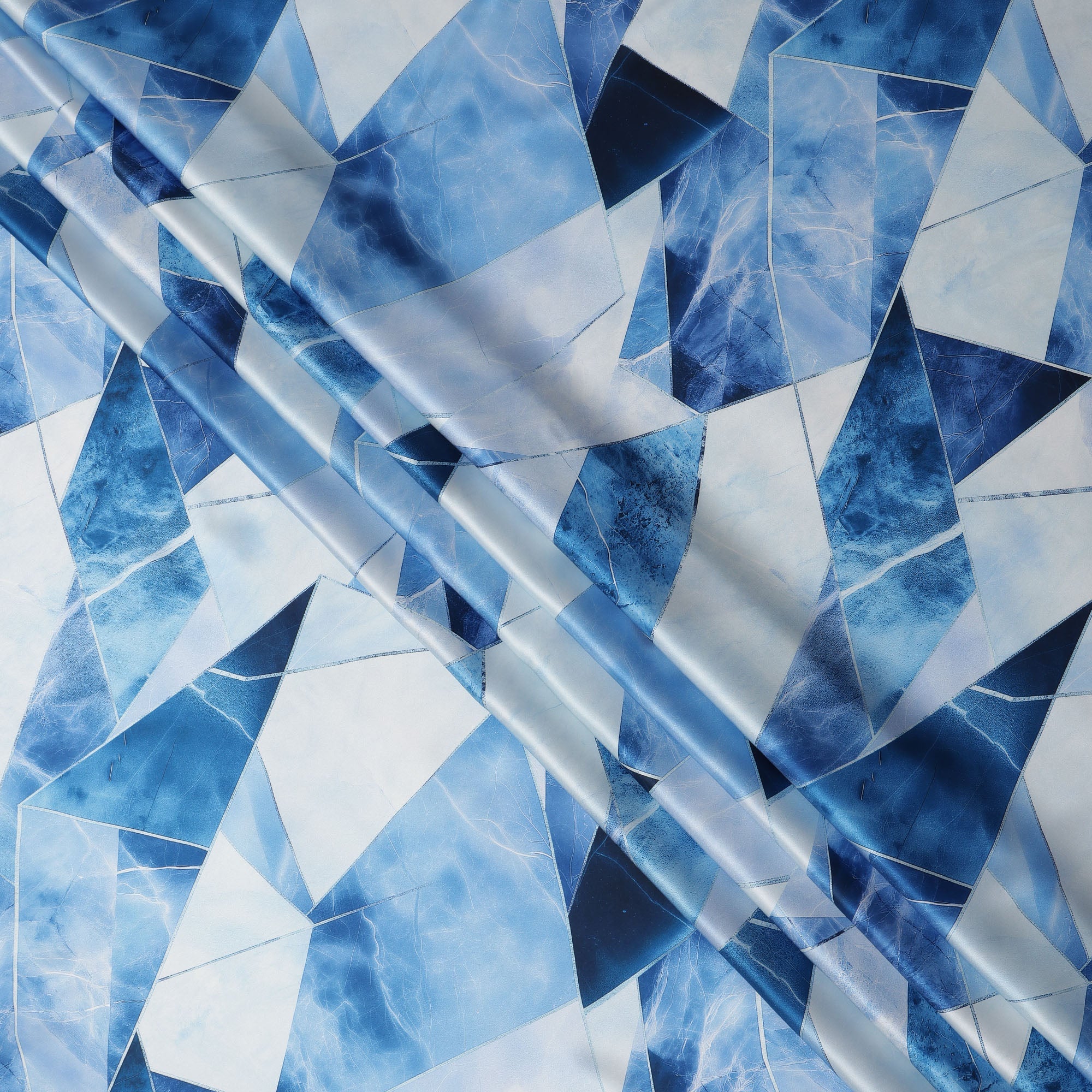 Sky Blue Geometric Marble Abstract Print Premium Pure Silk Satin Fabric Smooth Lustrous Designer Finish 140 Cms Width, 3.5 Mtrs Piece and Made in Italy-D27208