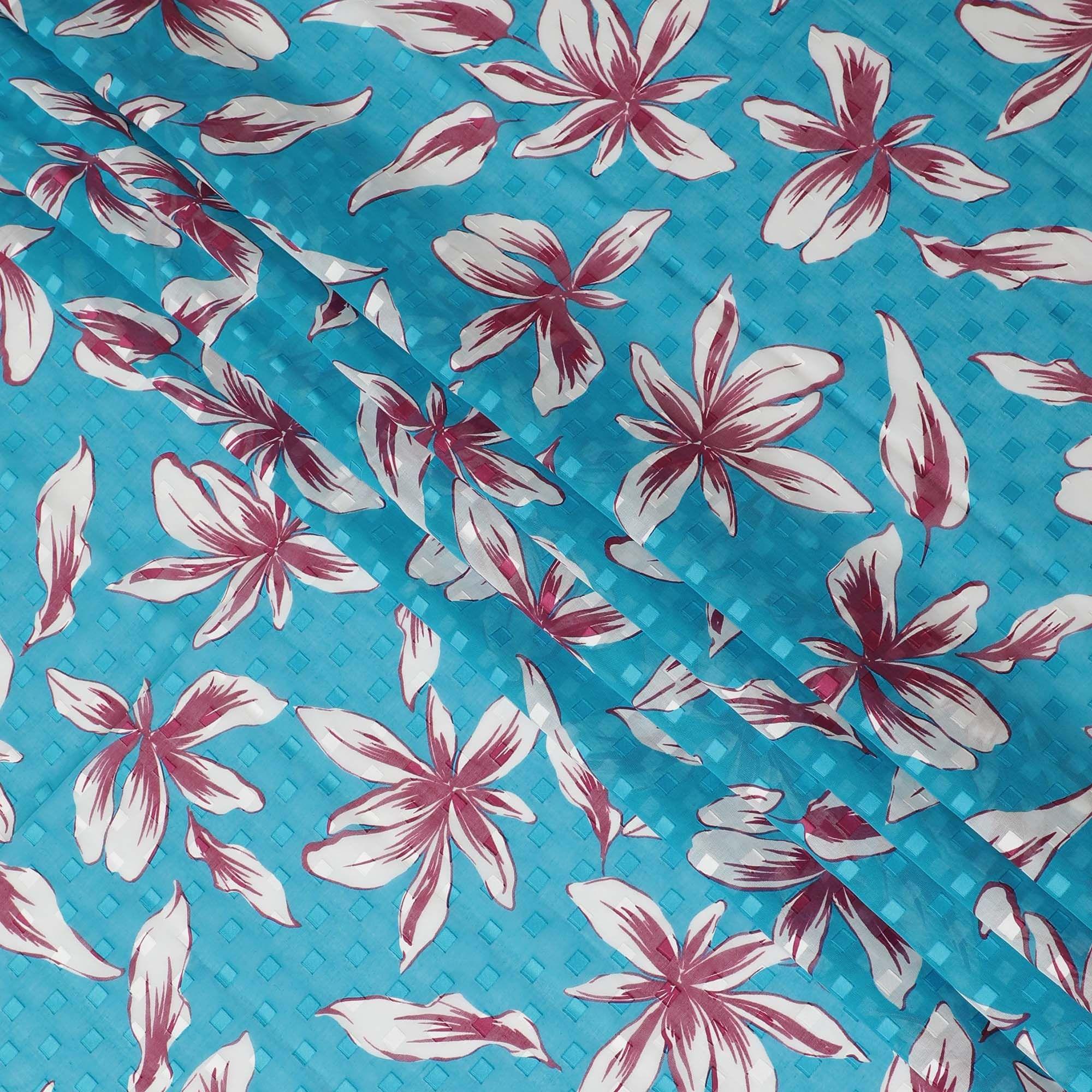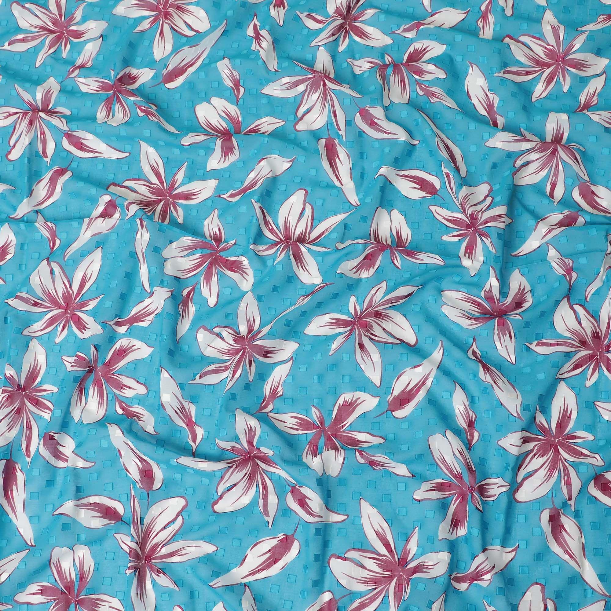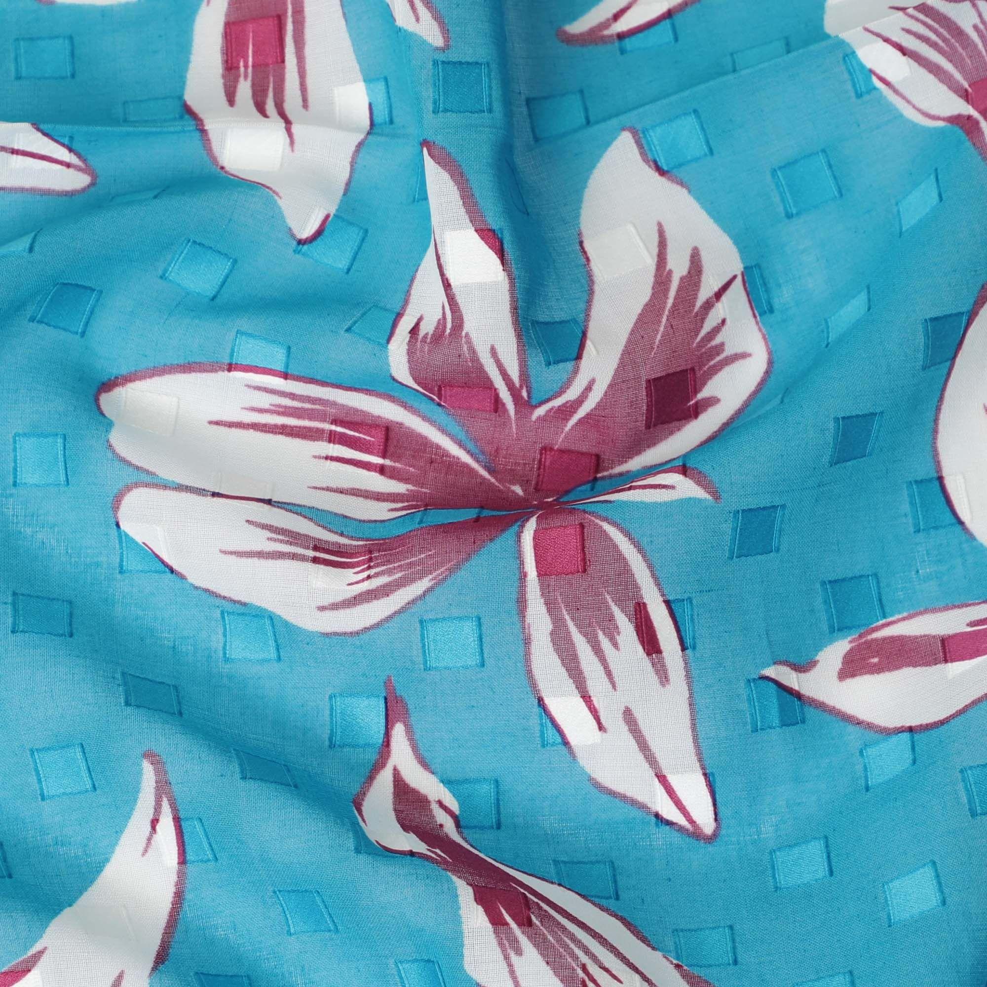 Sky blue Premium 100% swiss cotton voile (Sudanese Thobe) fabric with same tone clip cord having off white and cerise pink print in floral design-D13539