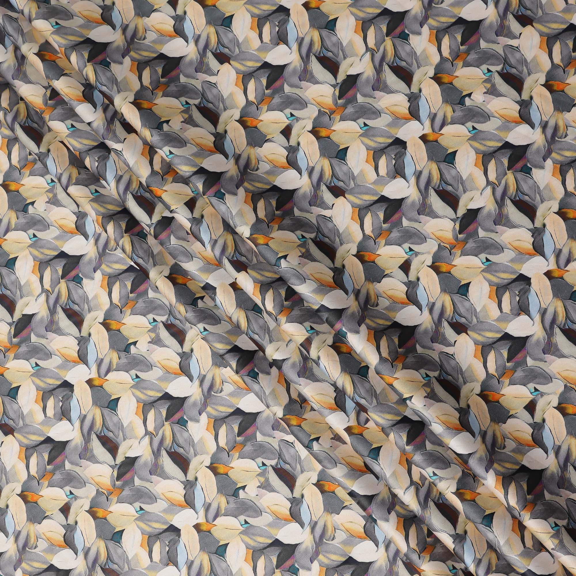 Slate Grey Abstract Leaf Printed Cotton Satin Fabric 110 Cms Made In India-D27390