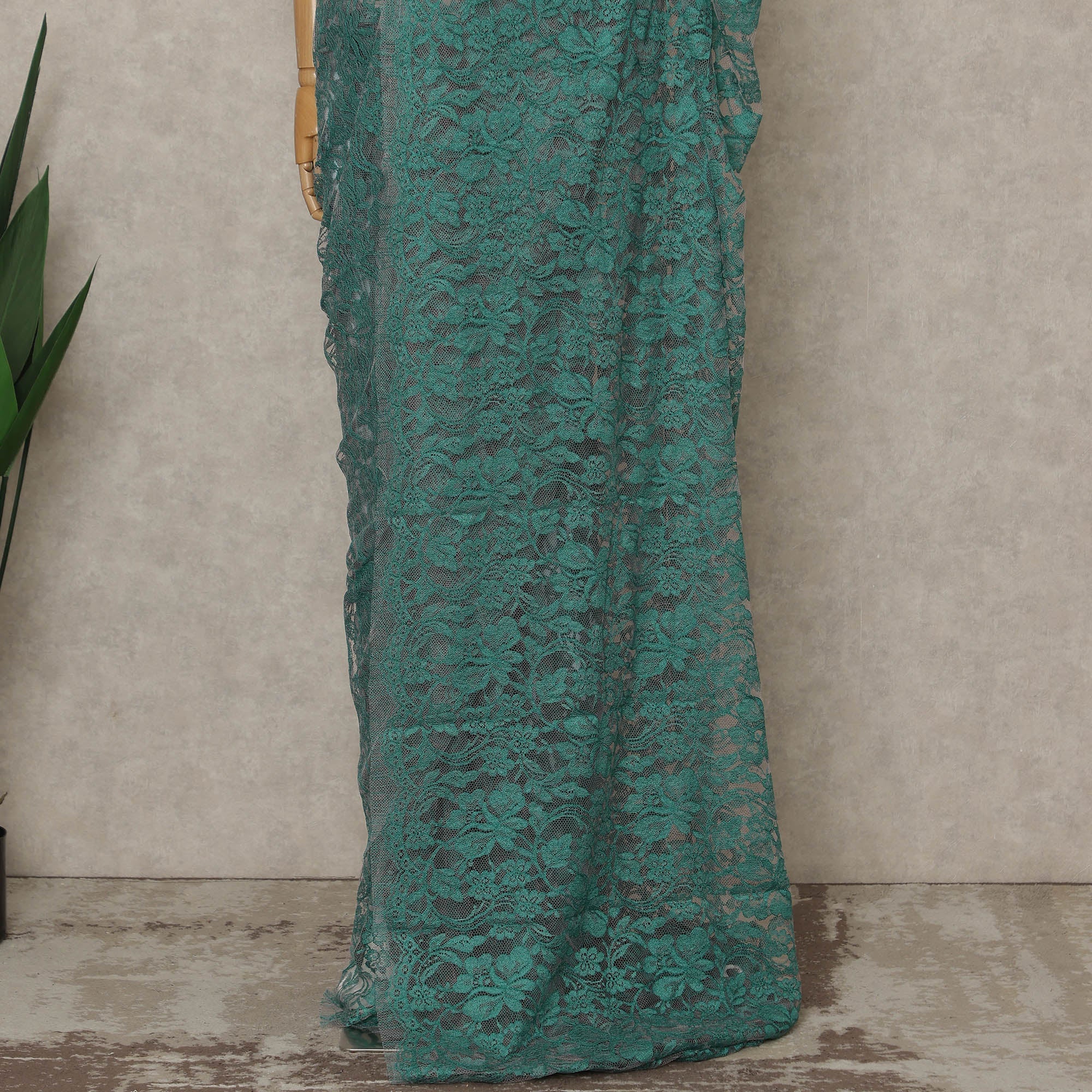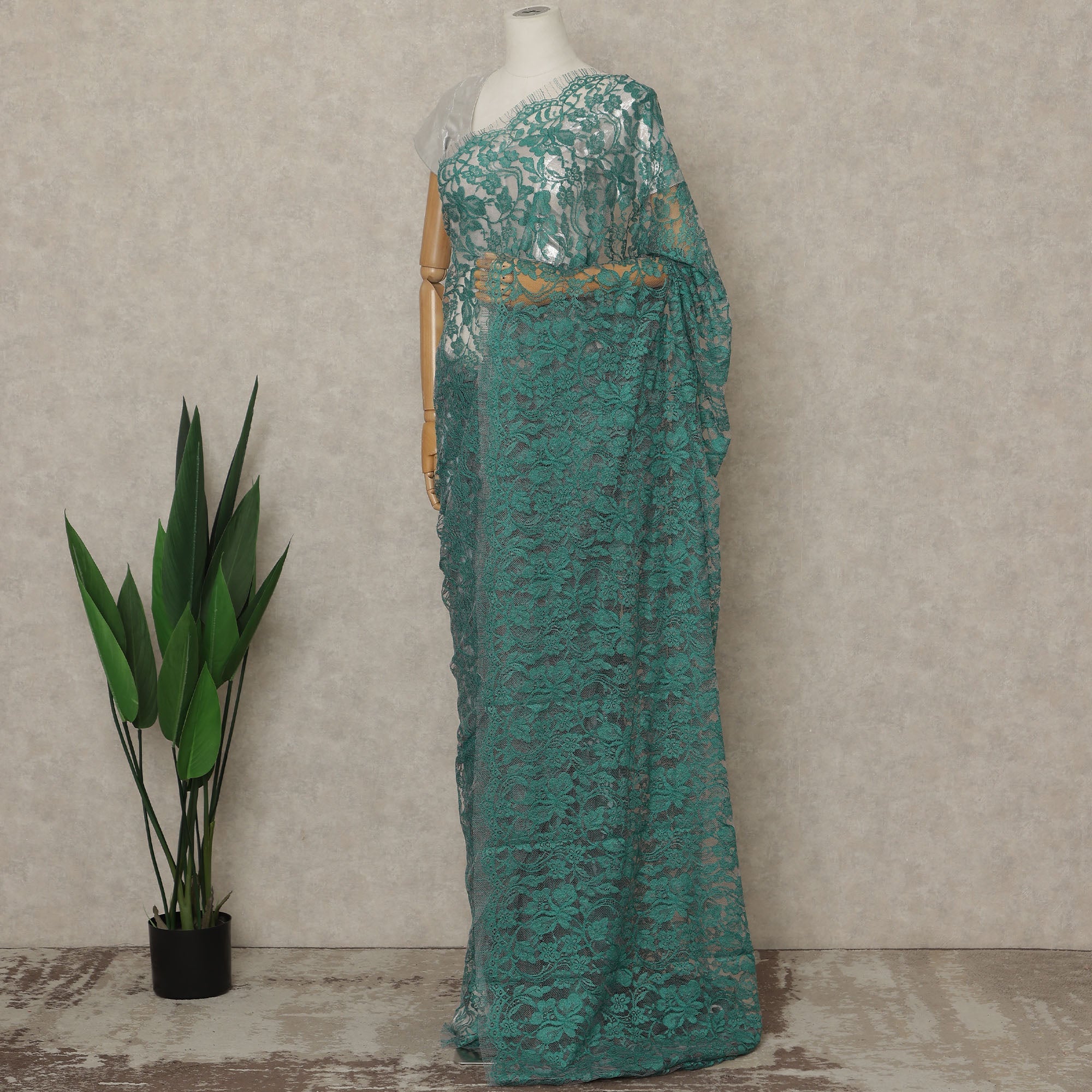 Steel Green Premium French Chantilly Saree Lace, 5.5 Mtrs Length, 110 Cms Width, Crafted in France -Blouse Not Included-D26715