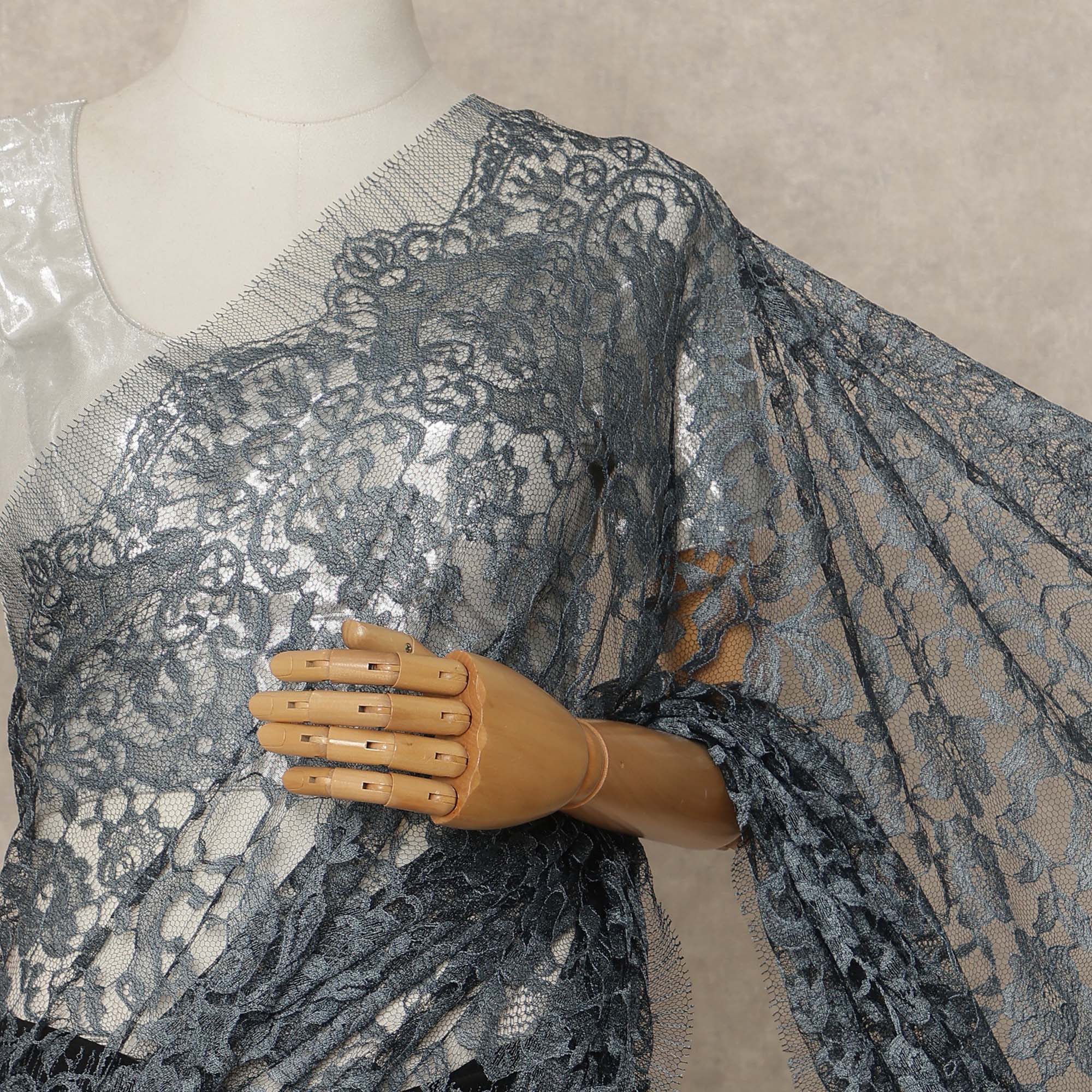 Premium French 2 tone Chantilly lace crafted with elegant steel grey and black contrast detailing