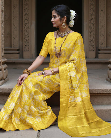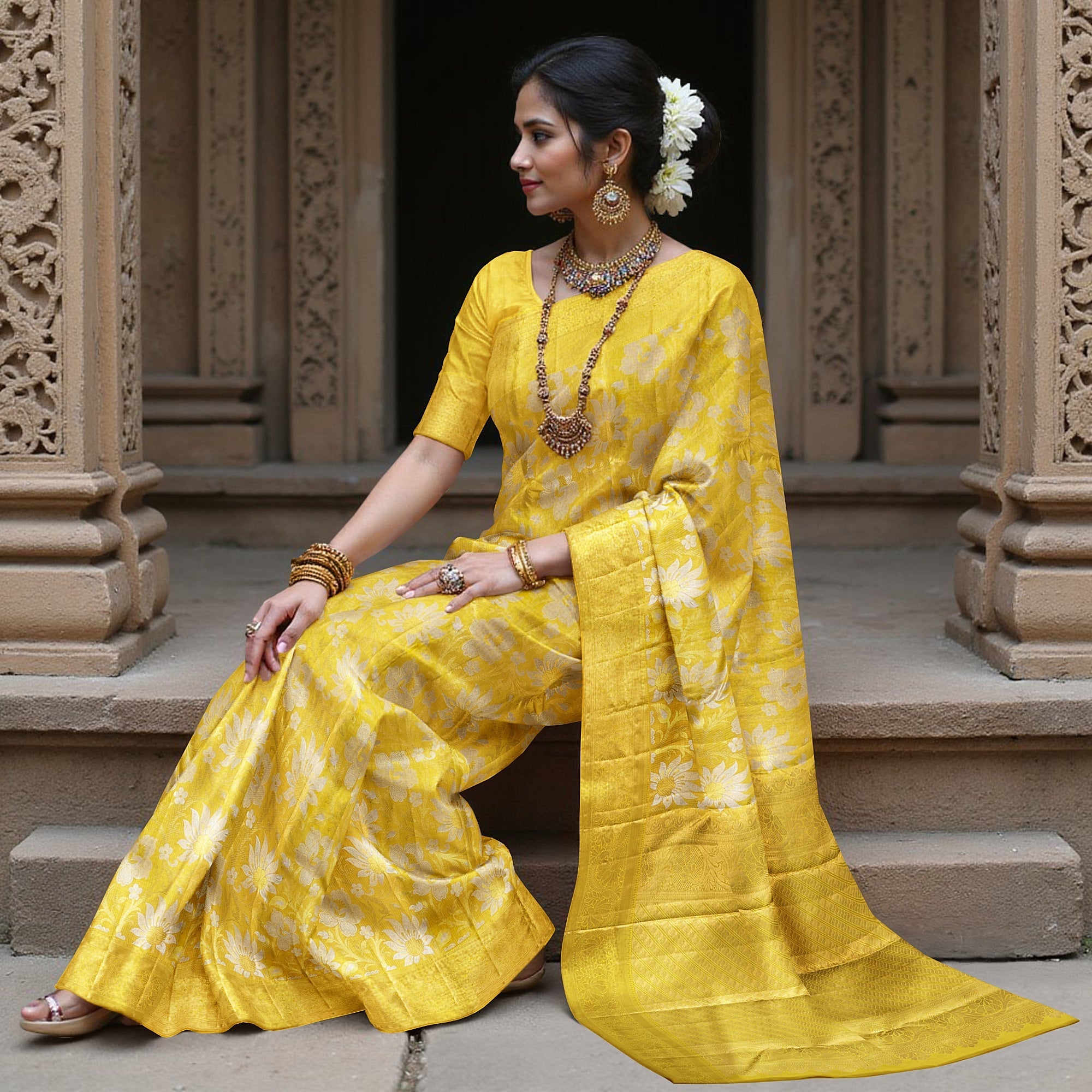 Sunflower Yellow Gold silk body with silver floral brocade weaving
