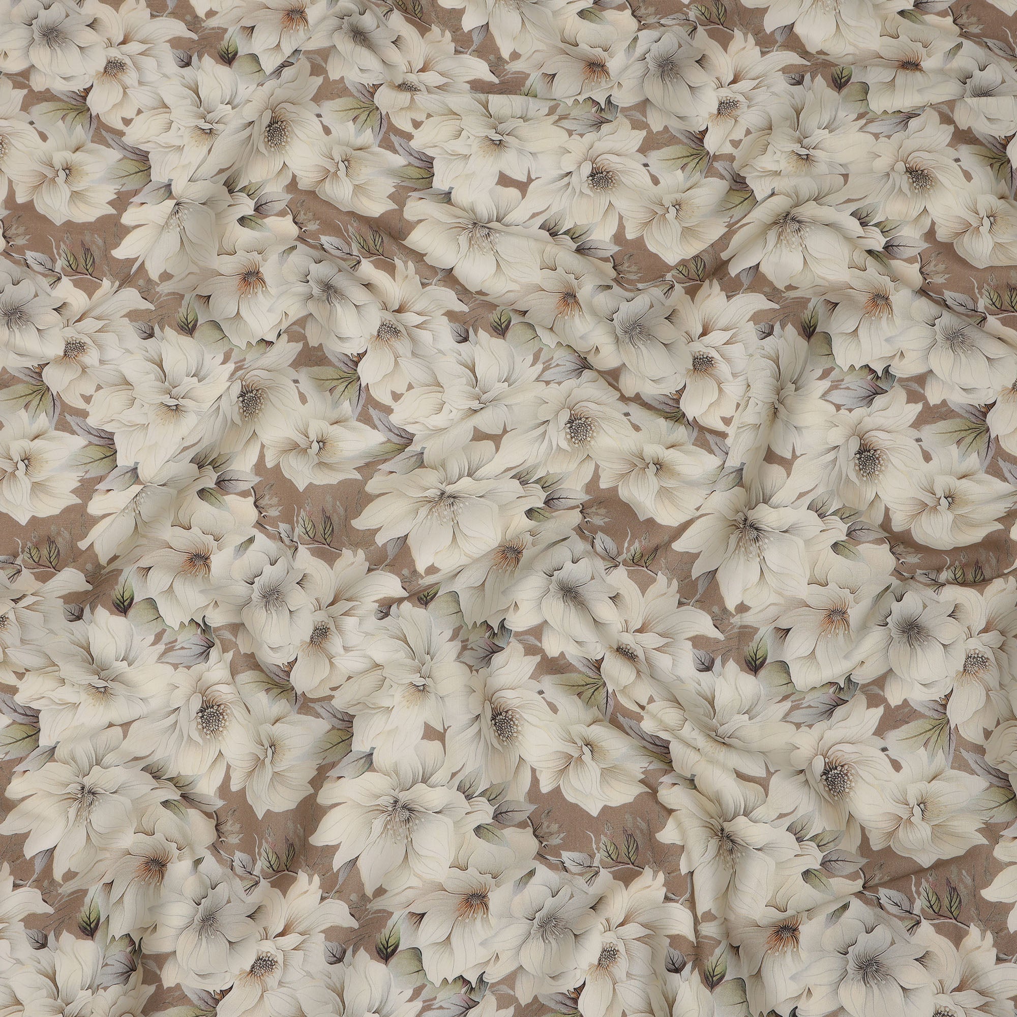 Taupe brown base enriched with digitally printed ivory magnolia flowers