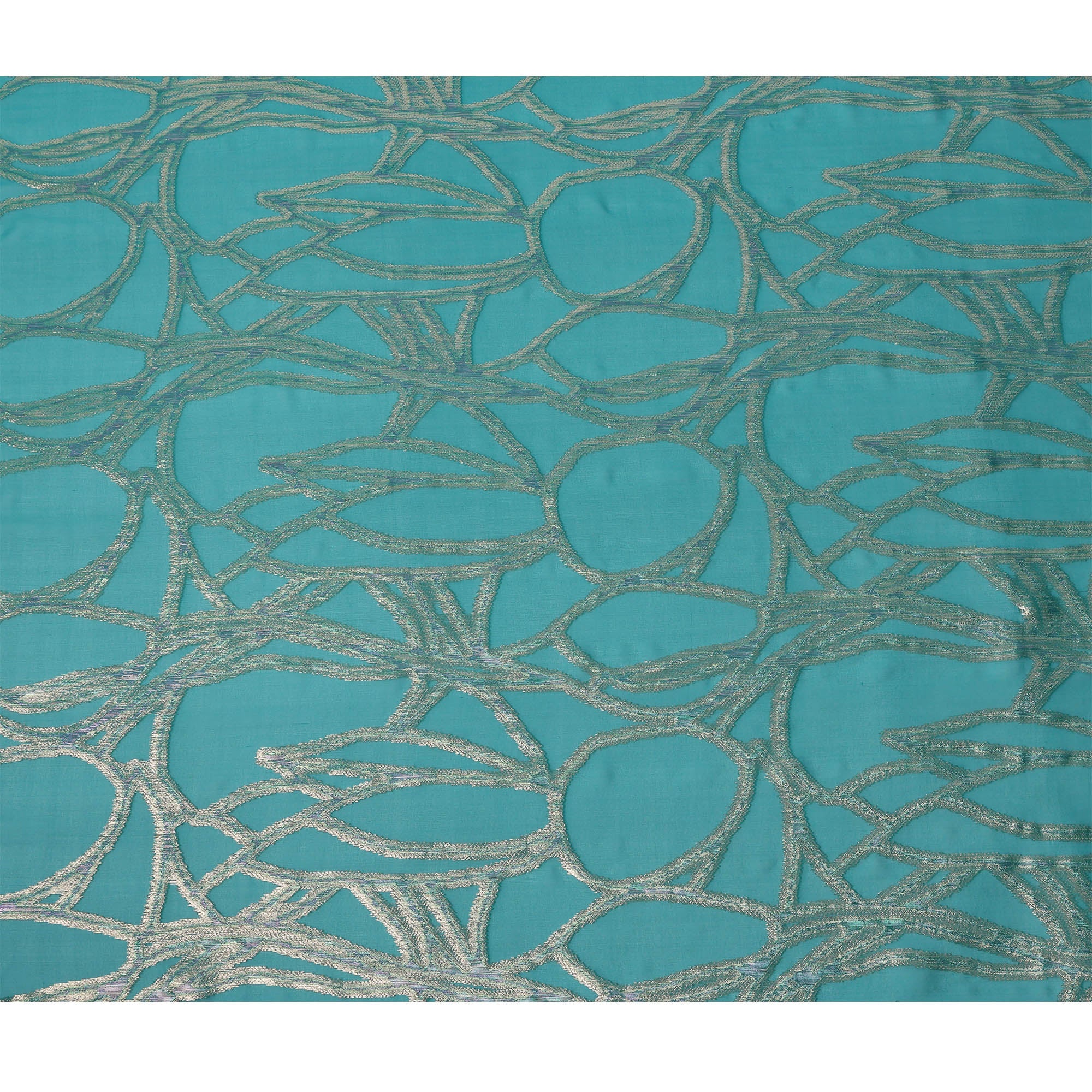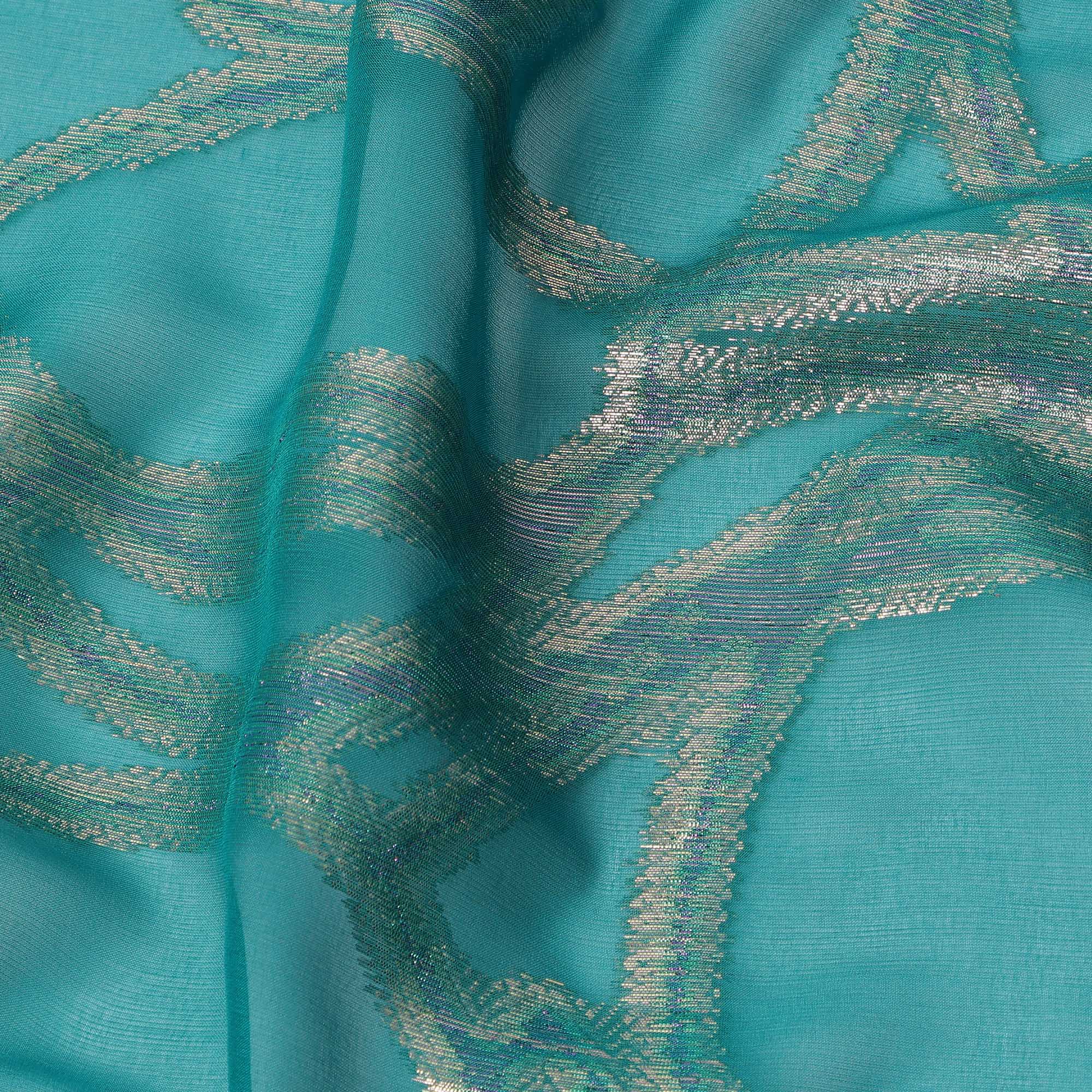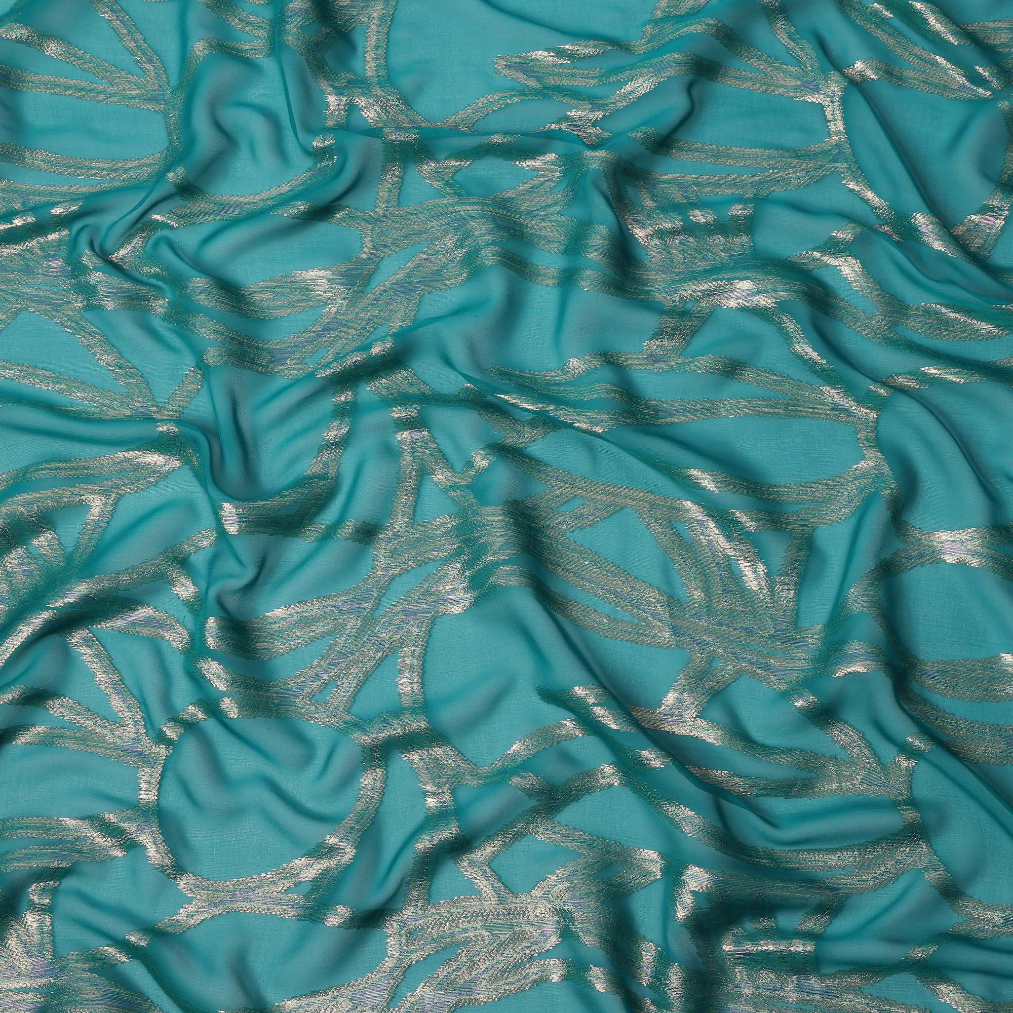 Teal Abstract Silk Chiffon Fabric with Metallic Lurex, 140 Cms, South Korea-D25486