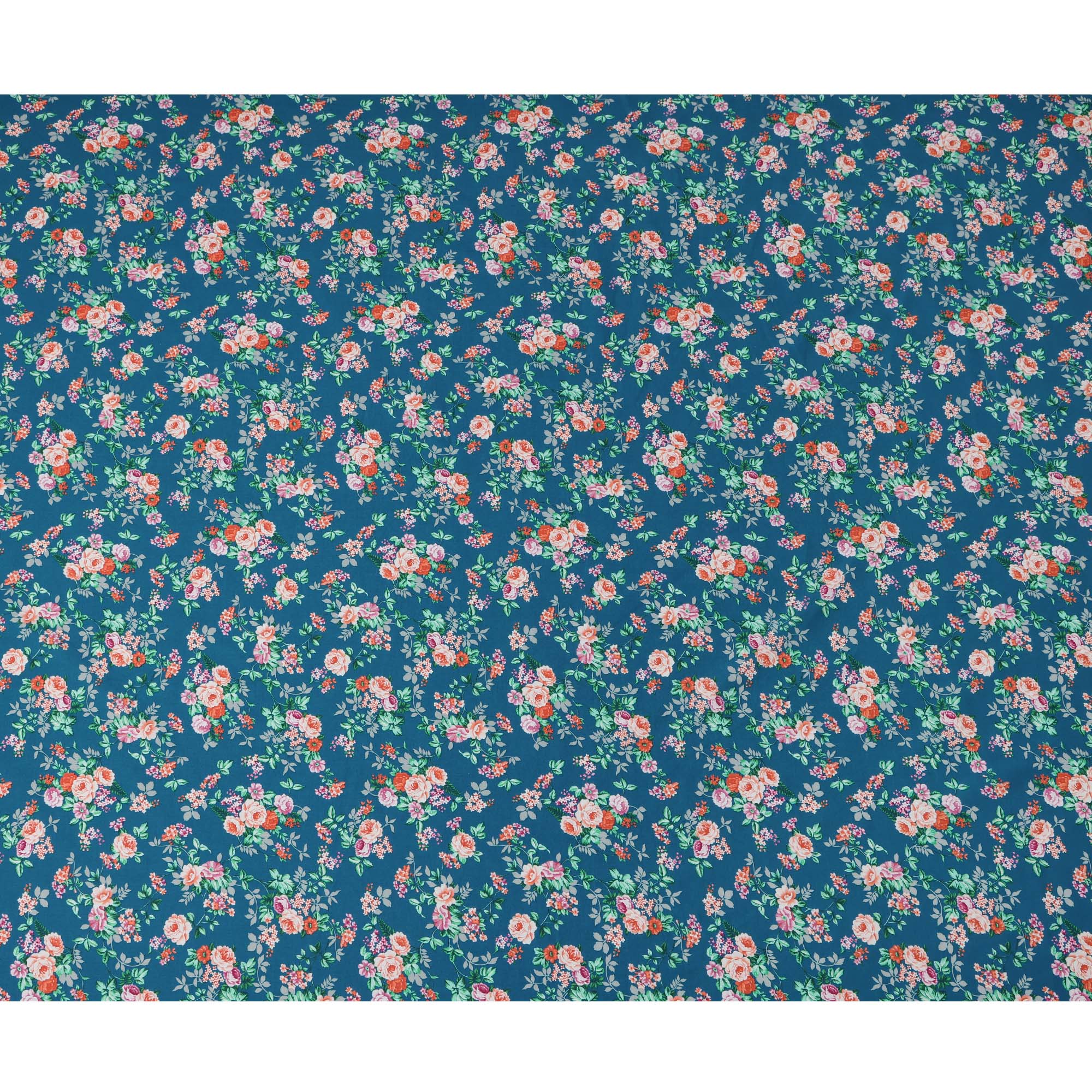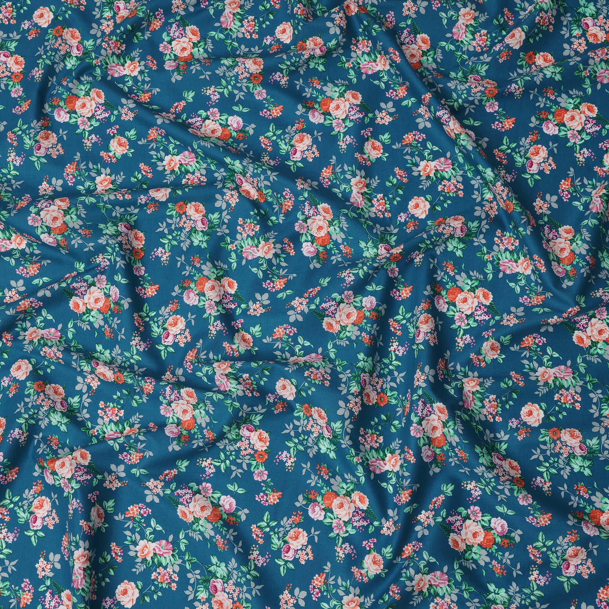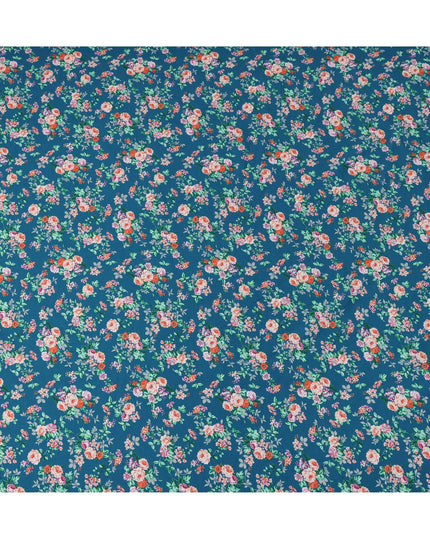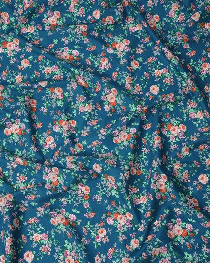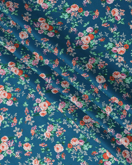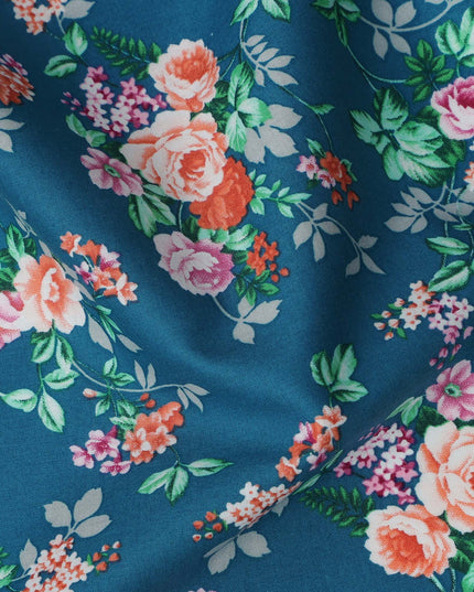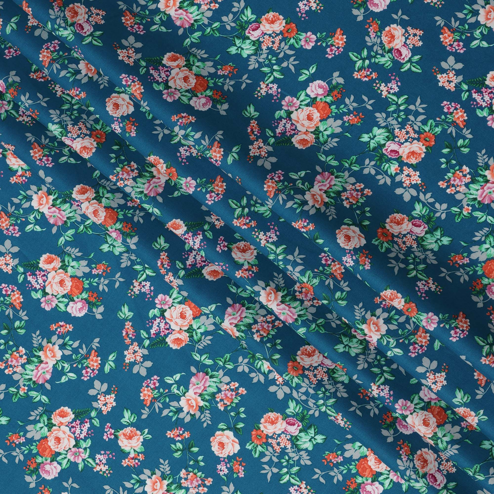 Teal and Multicolor Floral Pure Cotton Printed Fabric – Width 110 cm-D21792
