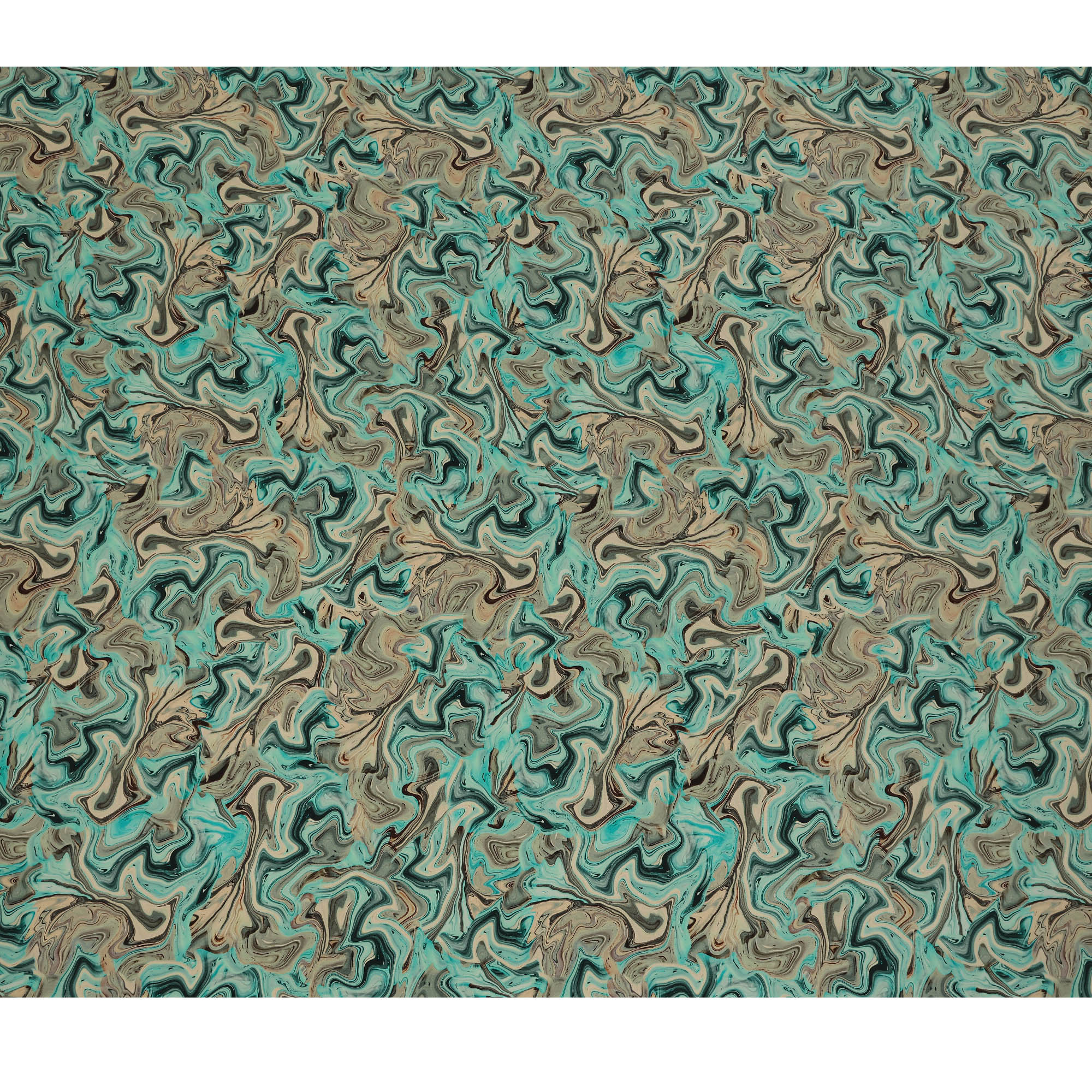 Teal Beige Abstract Marble Swirl Digital Print Viscose Crepe Fabric 110 Cms India-D26855