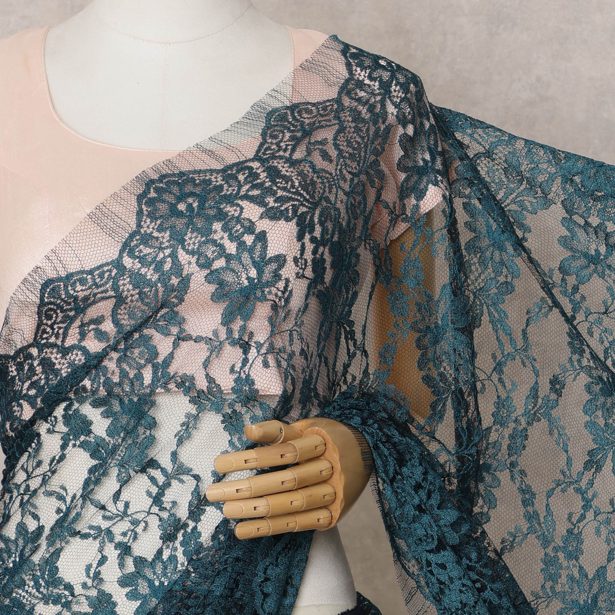 Teal Blue Premium French 2-Tone Chantilly Saree Lace – 5.5 Mtrs Length & 110 Cms Width – Made in France-D22971