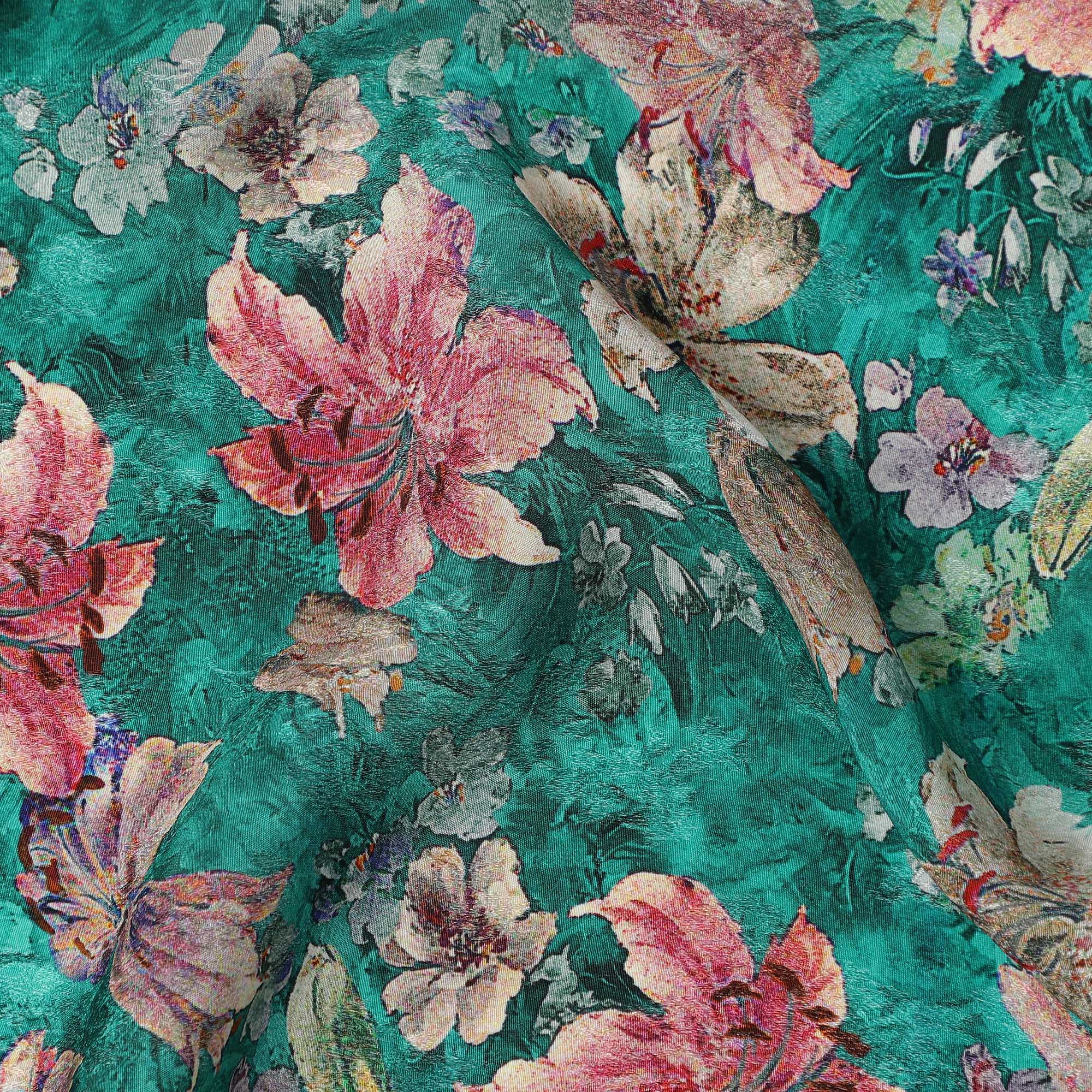 Teal Green Floral Printed Viscose Fabric 110 Cms India Origin-D27552